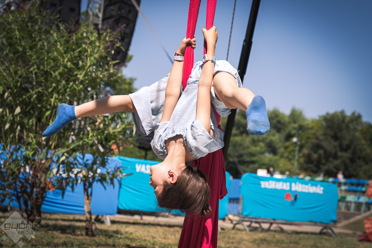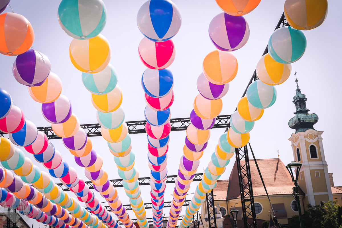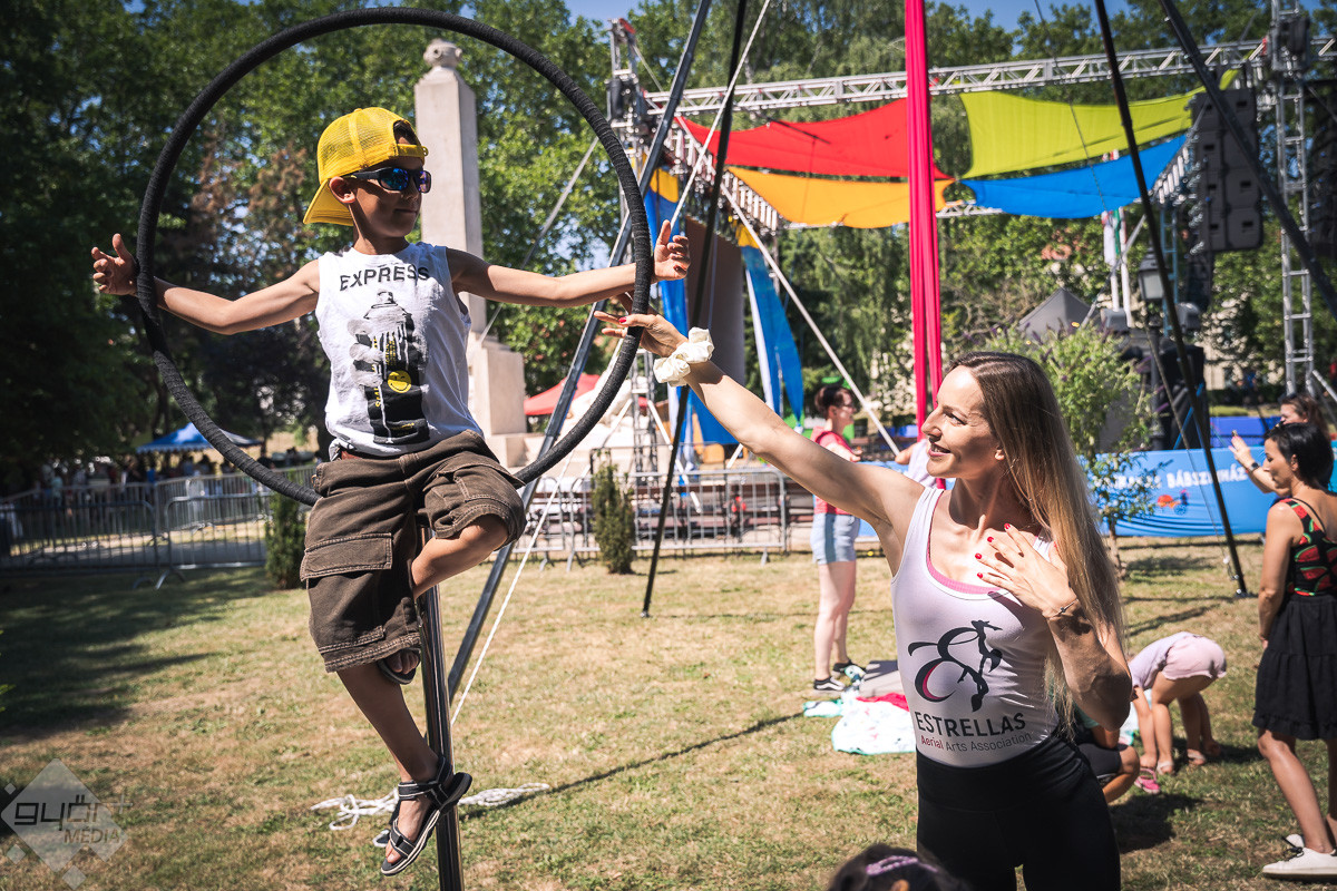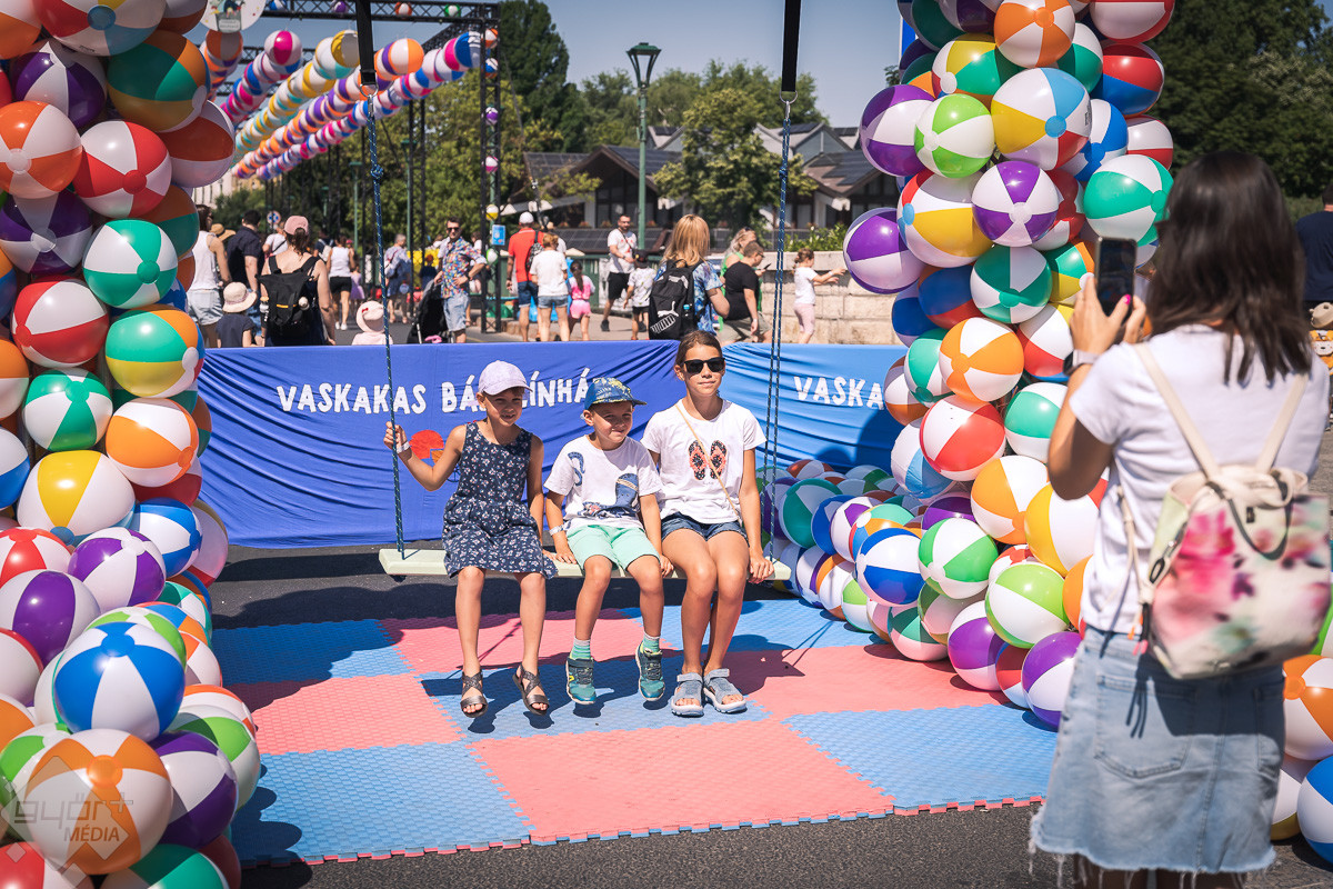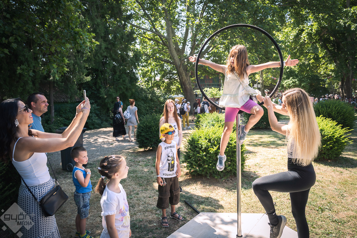 „Idén strandlabdákkal oldottuk meg a híd árnyékolását a gömbölyű és gyönyörű jegyében. Ez a szlogenünk is, erre épülnek a játékok és a témák, erről szól a Győrkőc-induló és a dal, eköré épültek a koncertek, hiszen a kisgyerekek is gömbölyűek és gyönyörűek.” – áradozott Kocsis Rozi, a Vaskakas Bábszínház igazgatója, a fesztivál főszervezője. A Győrkőccel az időjárás is mindig kegyes, sokszor túlságosan, azonban a családokat a nyári meleg sem zavarja, türelmesen állnak sorba a karszalagokért, ami idén is ingyenes, egy mosolyért cserébe jár.