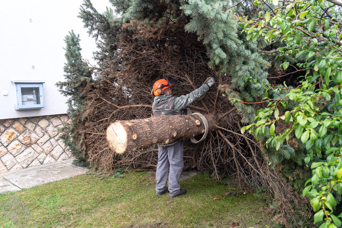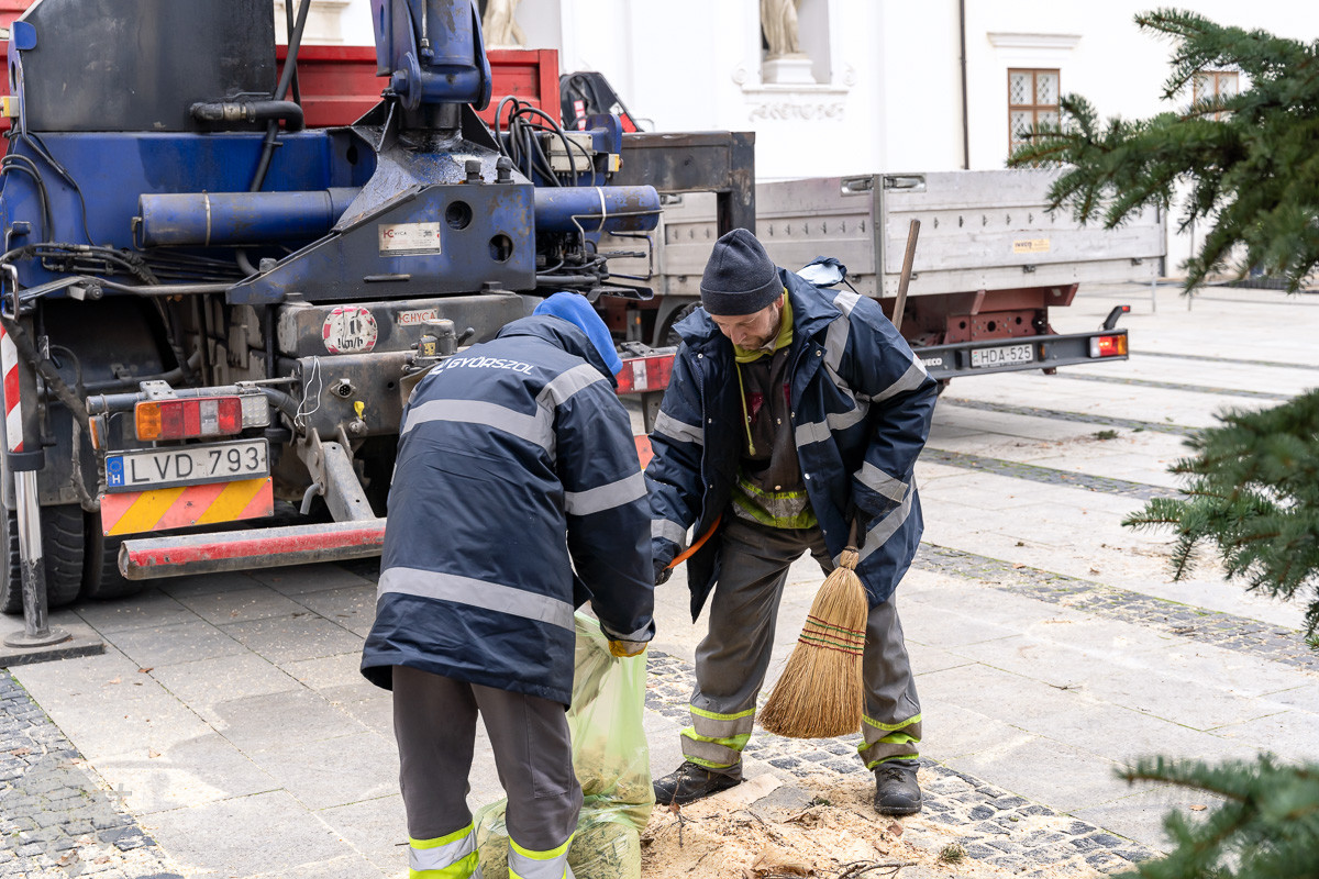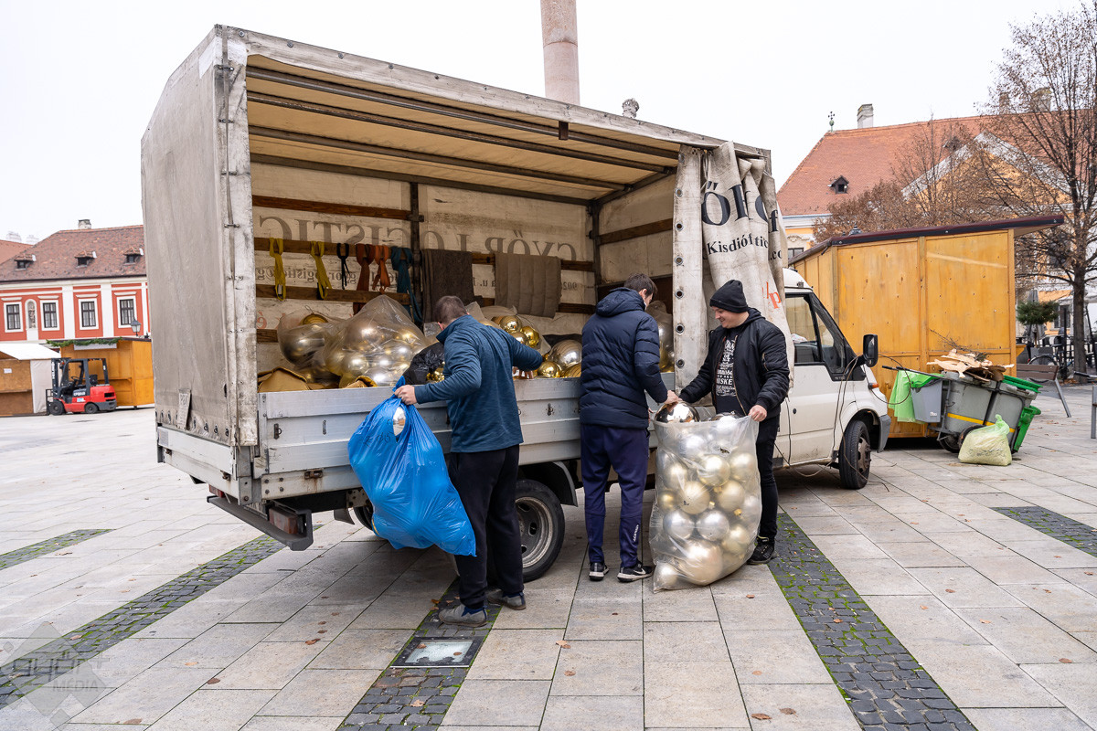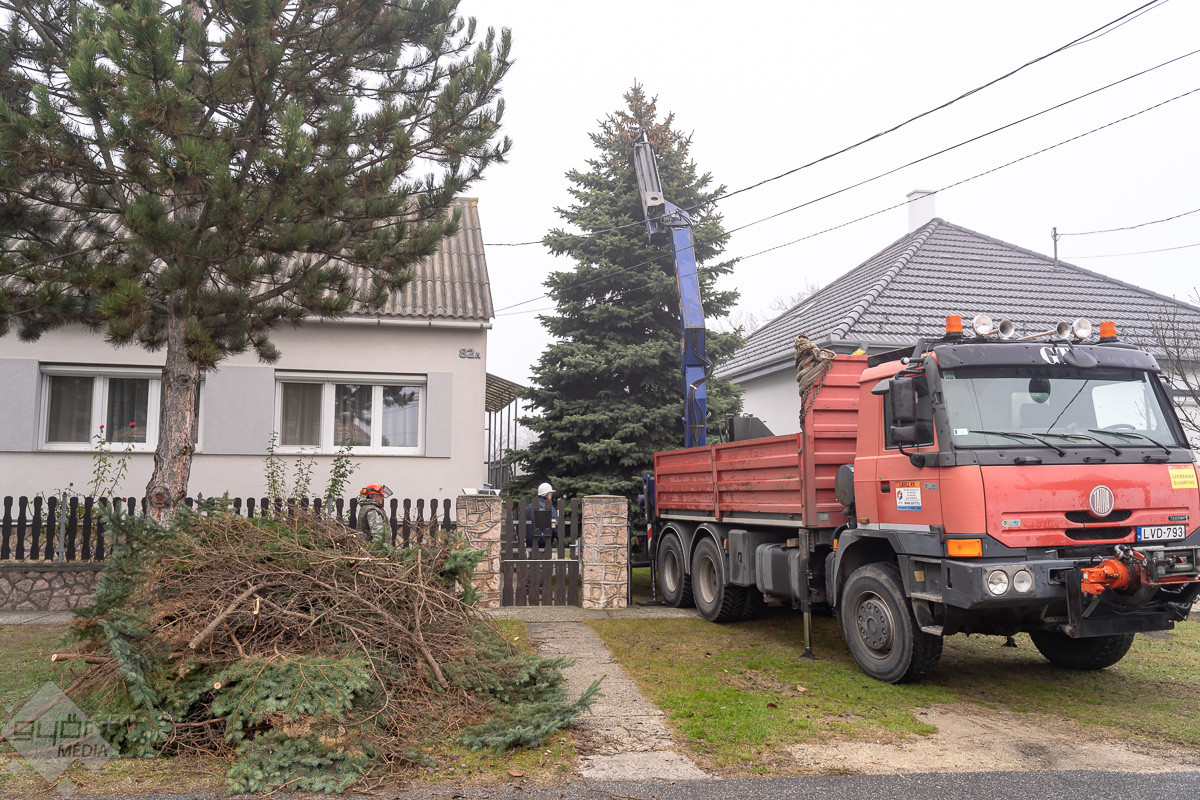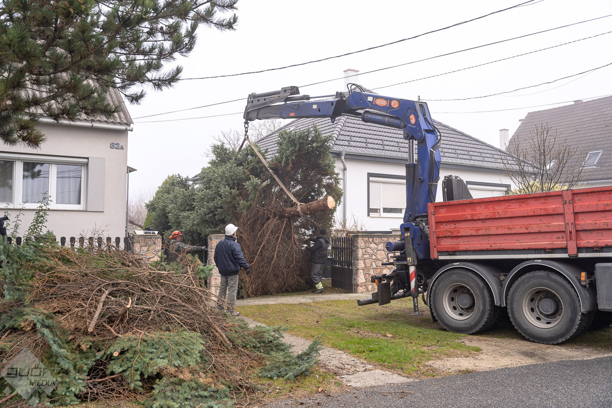 ”Kora reggel darus kocsival érkeztek kollégáim a szentiváni családi házhoz, ahol motoros fűrésszel vágták ki a hatalmas fenyőt, aztán pedig teherautóval szállították a Belvárosba, ahol a Széchenyi téren, a szokásos helyre állították fel, természetesen jó alaposan rögzítették is, hogy ne eshessen baja a következő időszakban” – hangsúlyozta Ozsvárt Tamás, a szolgáltató ügyfélszolgálati és kommunikációs csoportvezetője.