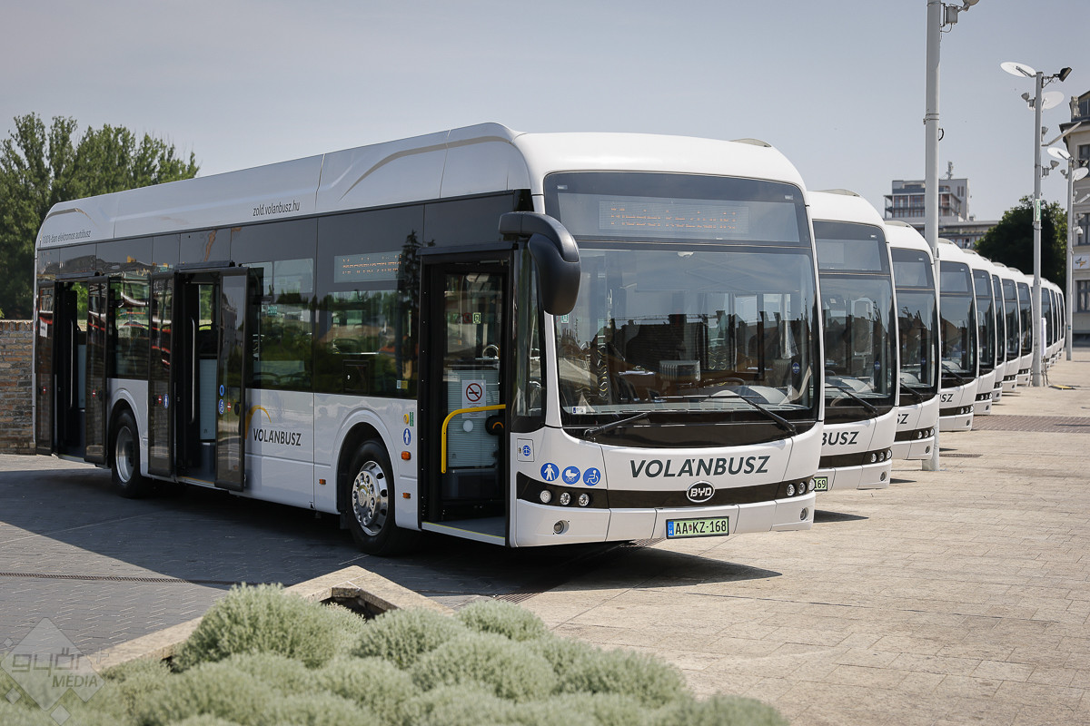 Tizenhárom BYD K9UD típusú, tisztán elektromos meghajtású autóbuszt adtak át kedden a győri tömegközlekedésnek. A Zöld Busz Program keretében a nettó 2,1 milliárd forint értékű fejlesztésnek köszönhetően a helyi járműállomány 14,3 százaléka megújul és jelentősen csökken a város levegőjét terhelő károsanyag-kibocsátás.