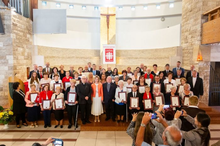 A budapesti Magyar Szentek Temploma szolgált helyszínéül az október 7-én ünnepi szentmisével egybekötött, és immár 12. alkalommal kiosztásra kerülő Caritas Hungarica-díj átadójának. Az esemény főszereplői a Katolikus Karitász legodaadóbb önkéntesei voltak, akiket Herczegh Anita, a Karitász jószolgálati nagykövetének köszöntője után Écsy Gábor karitász igazgató méltatott, és akik Spányi Antaltól, a Katolikus Karitász püspök elnökétől vehettek át díszoklevelet. A Győri Egyházmegyéből idén Csapóné Obendorfer Erika, Kránitz Péter és Tóth János kapta az elismerést.