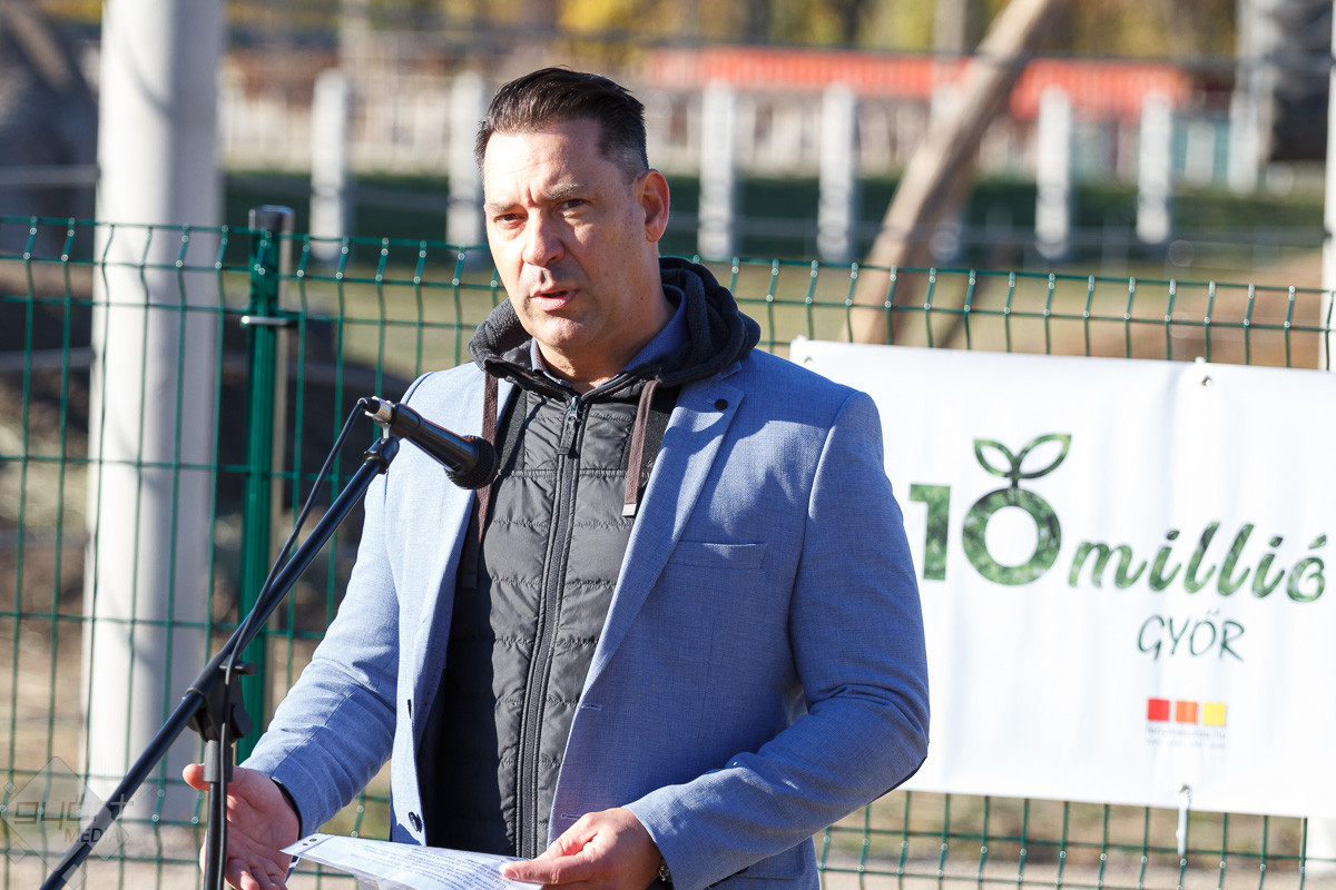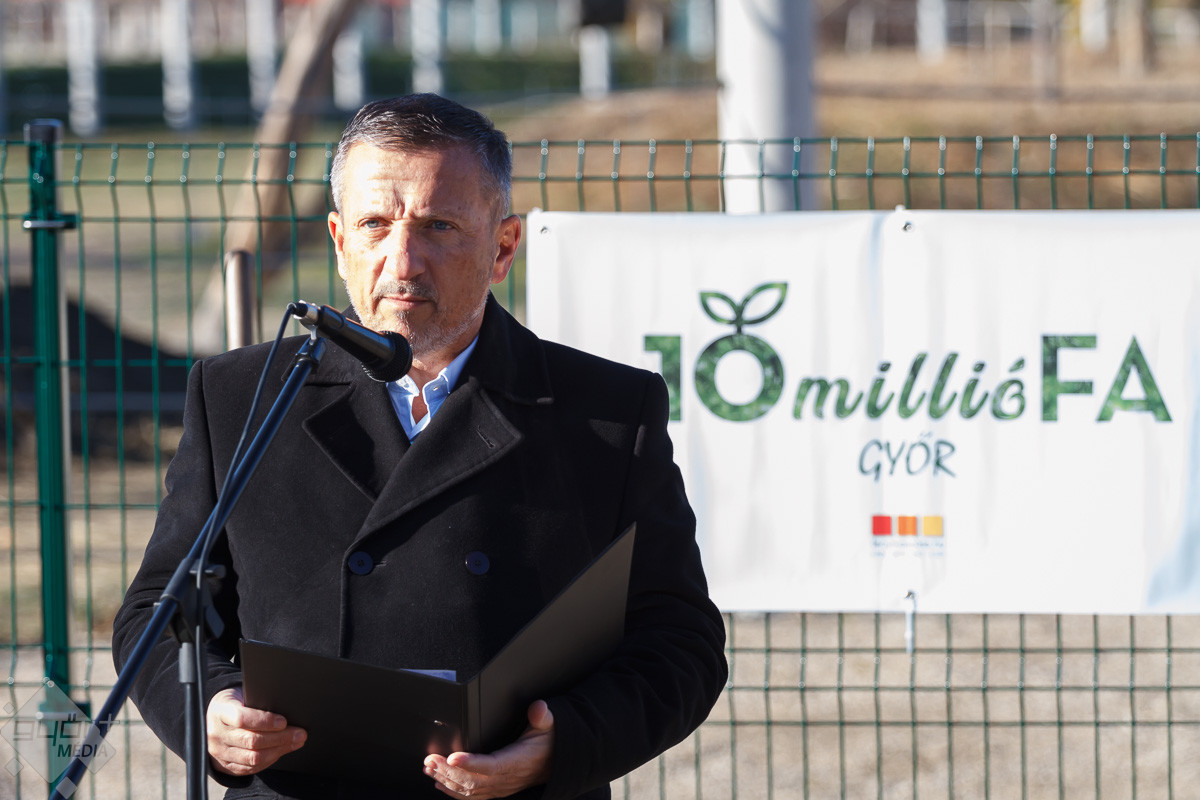 Rosta Csaba, a 10 Millió Fa Alapítvány győri elnöke úgy fogalmazott, ők nem csak azzal védik a Földet, hogy fákat segítenek elültetni, hanem gondolatokat is szeretnének ezzel ültetni, főként a fiatalok fejében, hiszen ezeket a fákat nem csak elülteni, de gondozni is kell. Az elnök kiemelte, 4 éve azért kezdték a munkát, hogy idővel az egész országnak, azaz a 10 millió magyarnak lehessen egy fája.