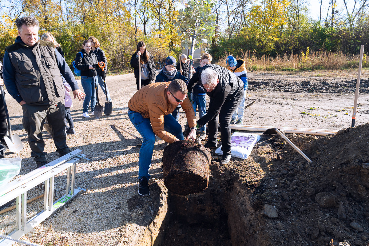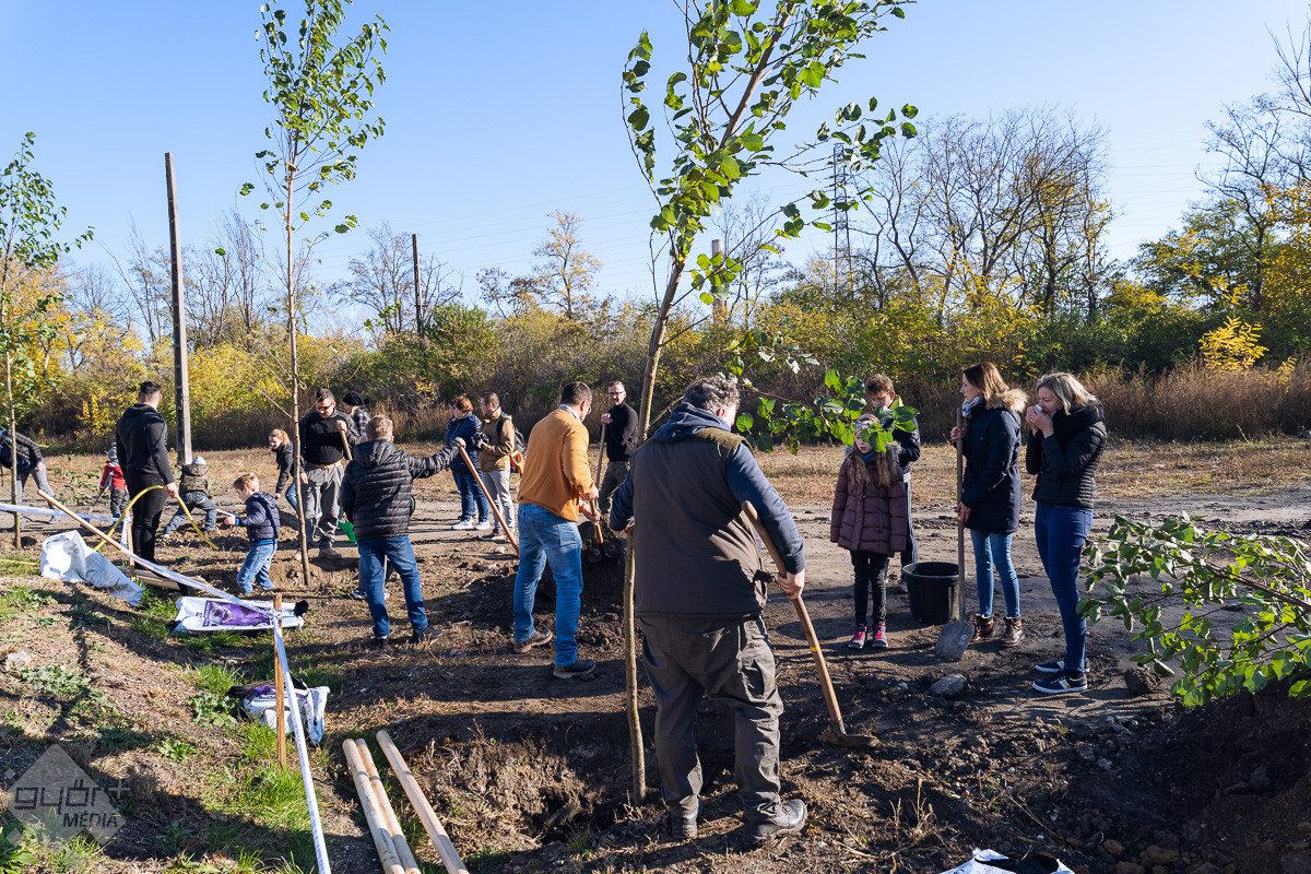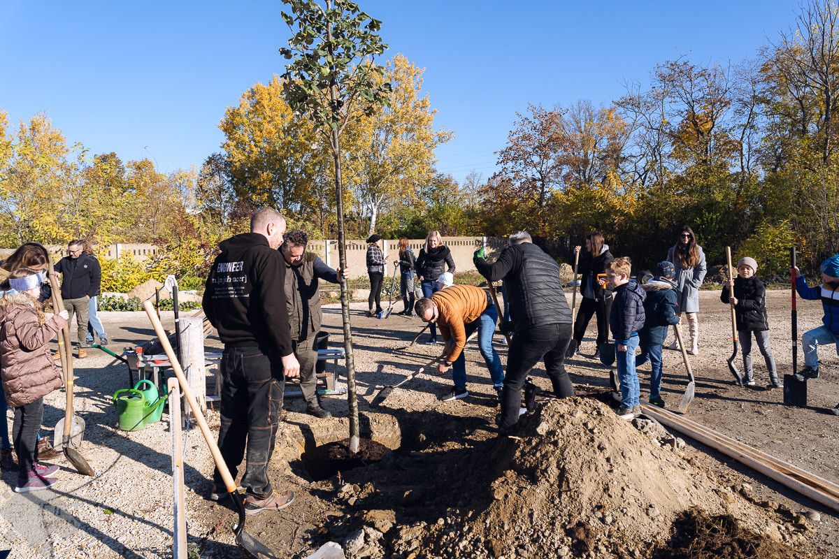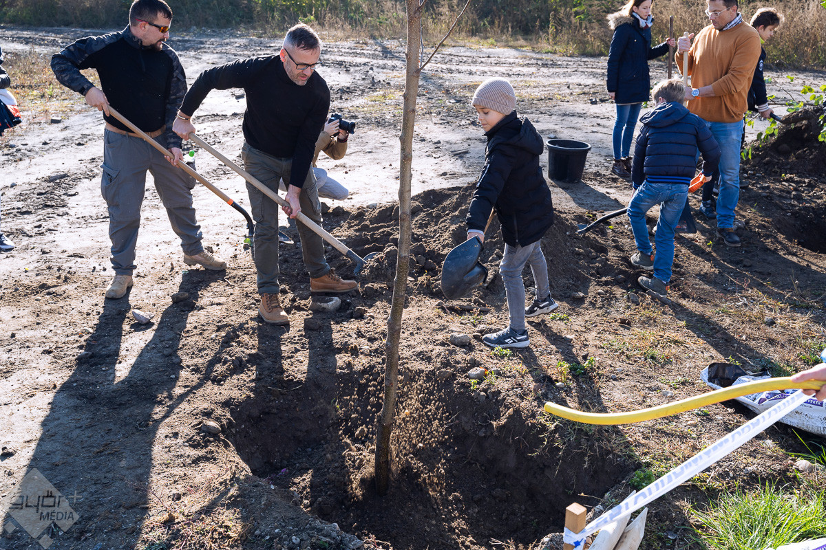 A beszédeket a tettek követték, több lelkes önkéntes is lapátot ragadott és elkezdődhetett a kemény munka. A kis lombú fákat egymás után ültették el.