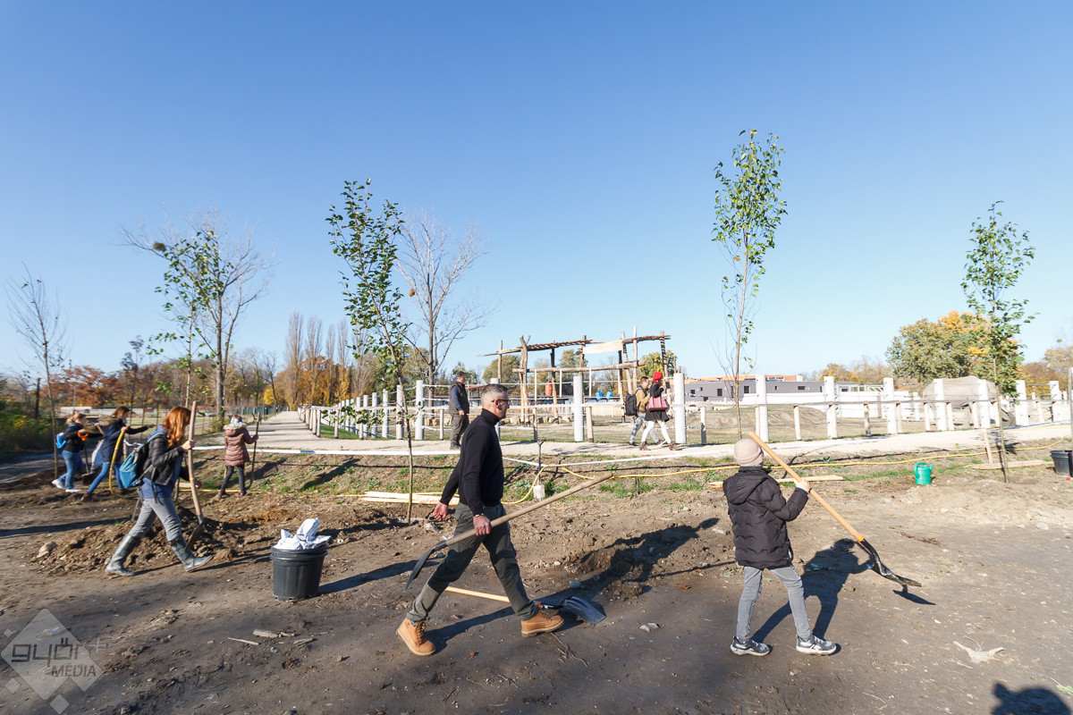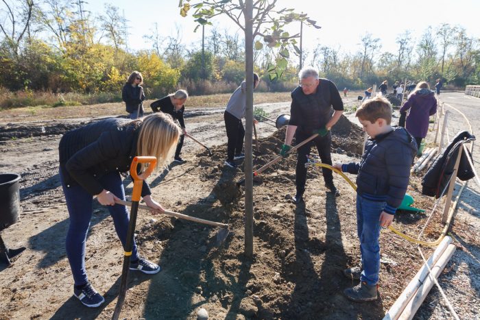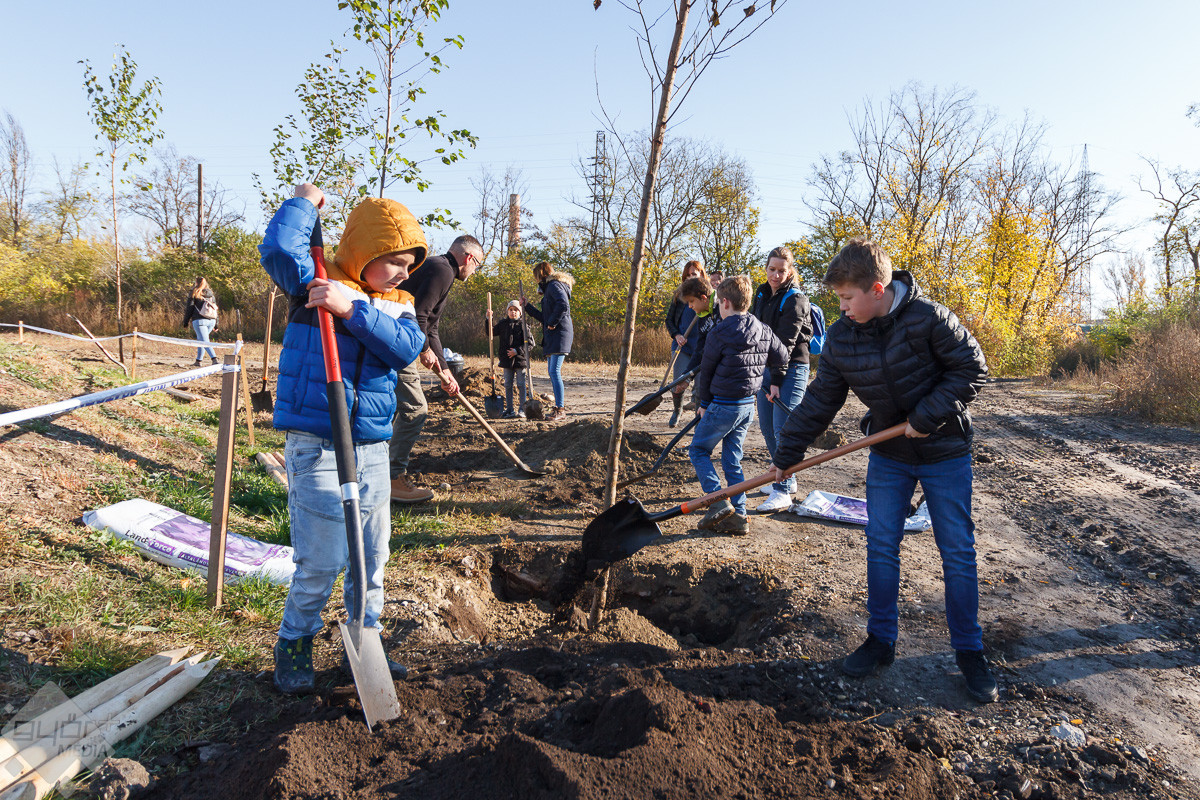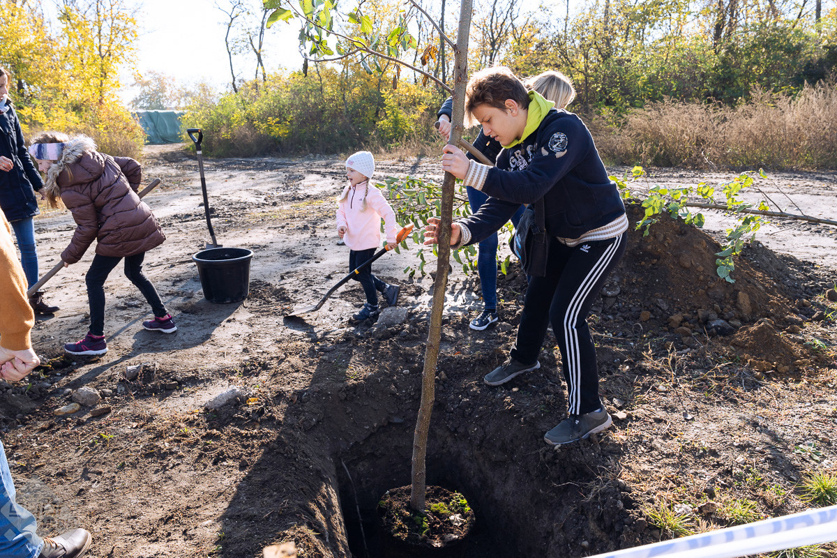 A beszédeket a tettek követték, több lelkes önkéntes is lapátot ragadott és elkezdődhetett a kemény munka. A kis lombú fákat egymás után ültették el.