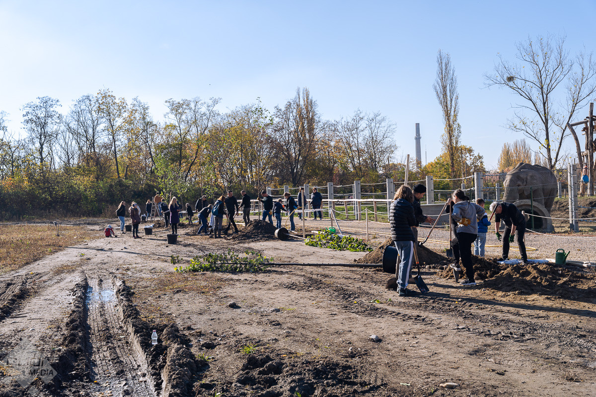 Dolgosan indult a szombat reggel a Győri Xantus János Állatkertben, a 10 Millió Fa Alapítvány és a PrintBrokers Team Kft. közreműködésével ugyanis fákat ültettek a nemrégiben átadott elefántház melletti sétányra.