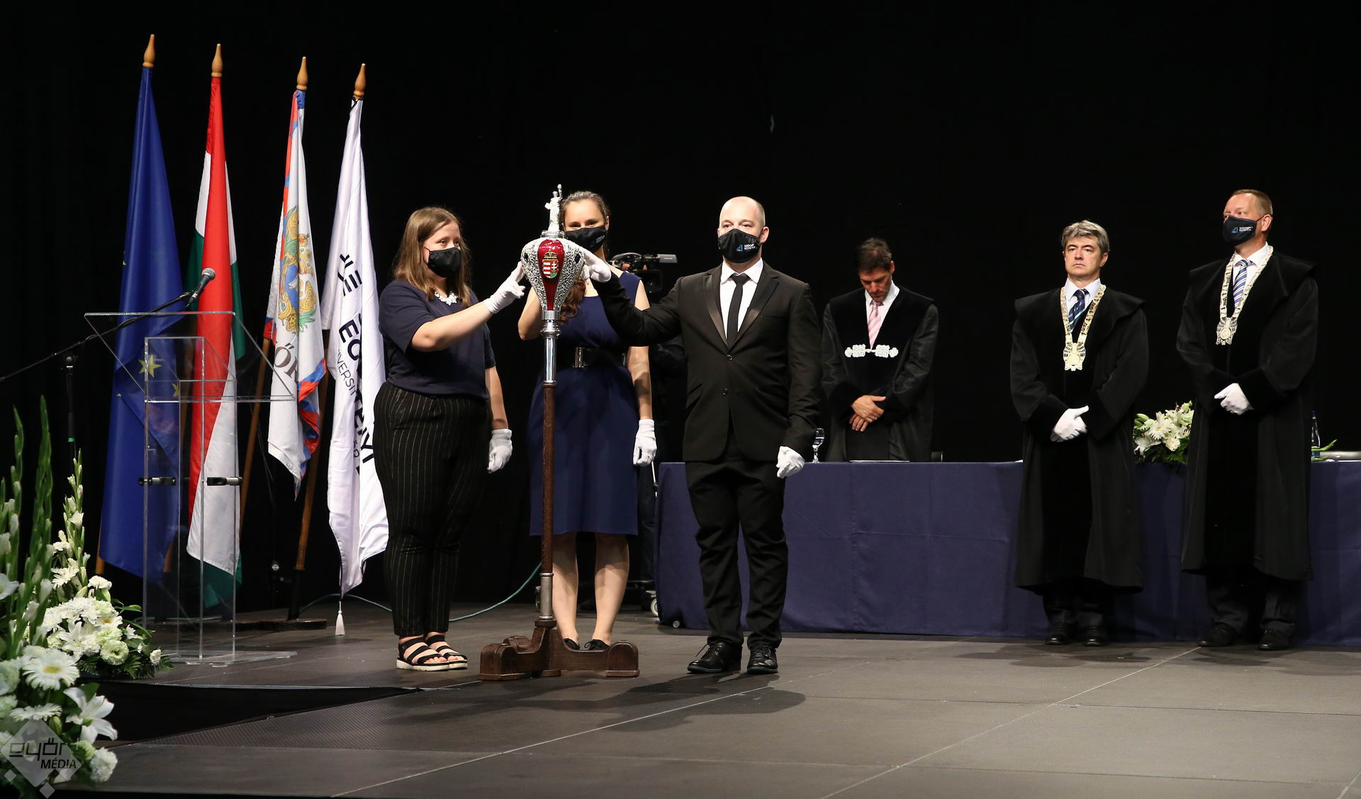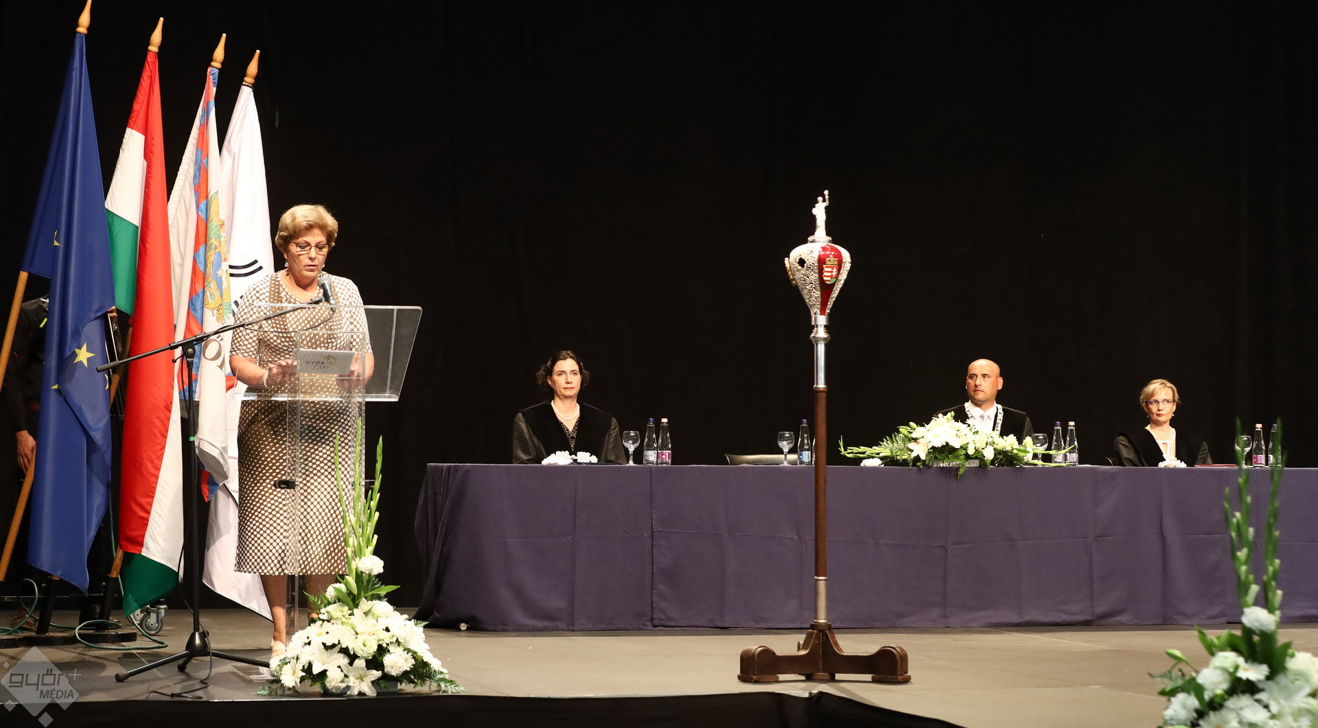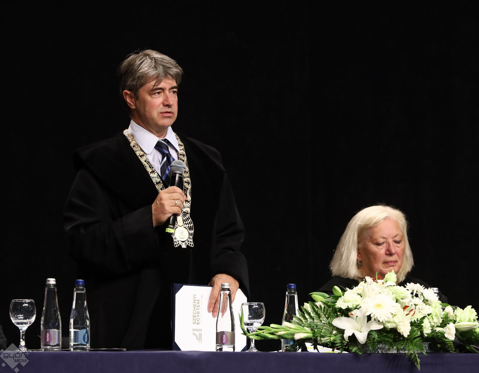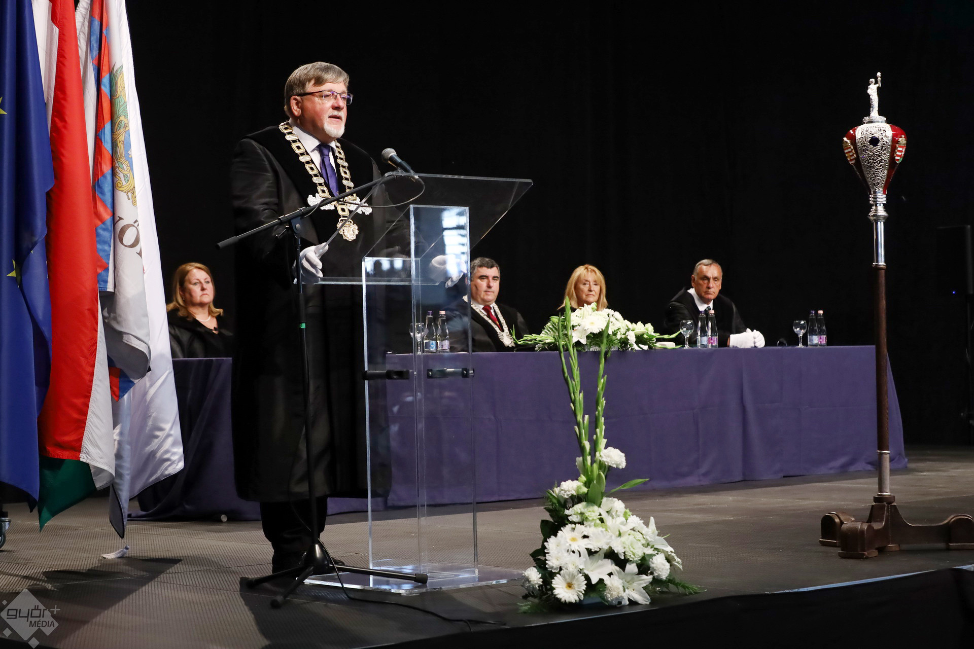 Az Egészség- és Sporttudományi Kar ünnepélyén Győr nevében prof. dr. Dézsi Csaba András polgármester, a kar tudományos dékánhelyettese is szólt a jelenlévőkhöz.