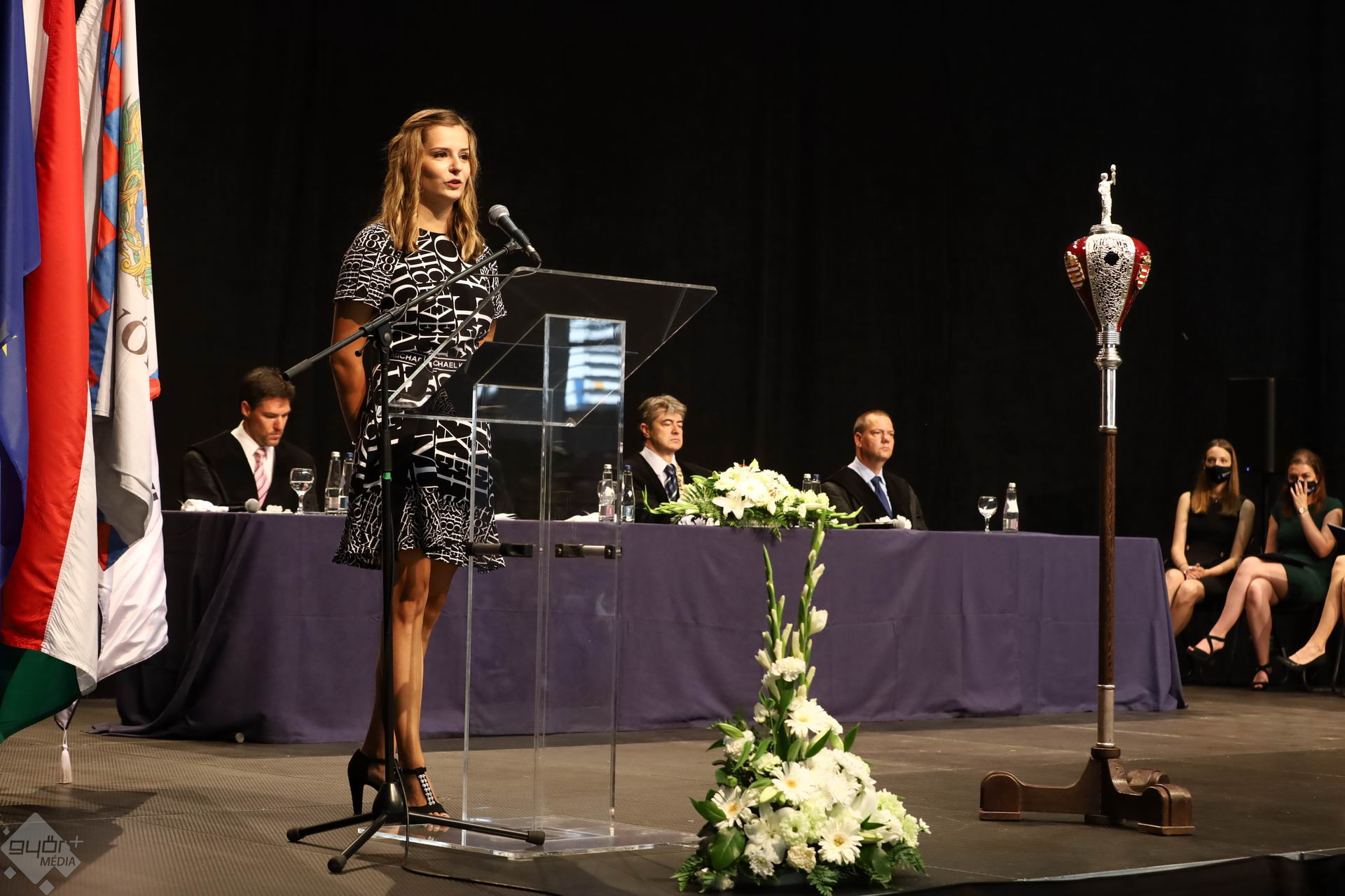 Köszönetet mondott a Széchenyi István Egyetem oktatóinak a tartalmas, színvonalas képzésért, a járvány miatti nehéz időszakban tanúsított kitartásért és az áldozatos munkáért, valamint a hozzátartozóknak a hallgatók segítéséért.