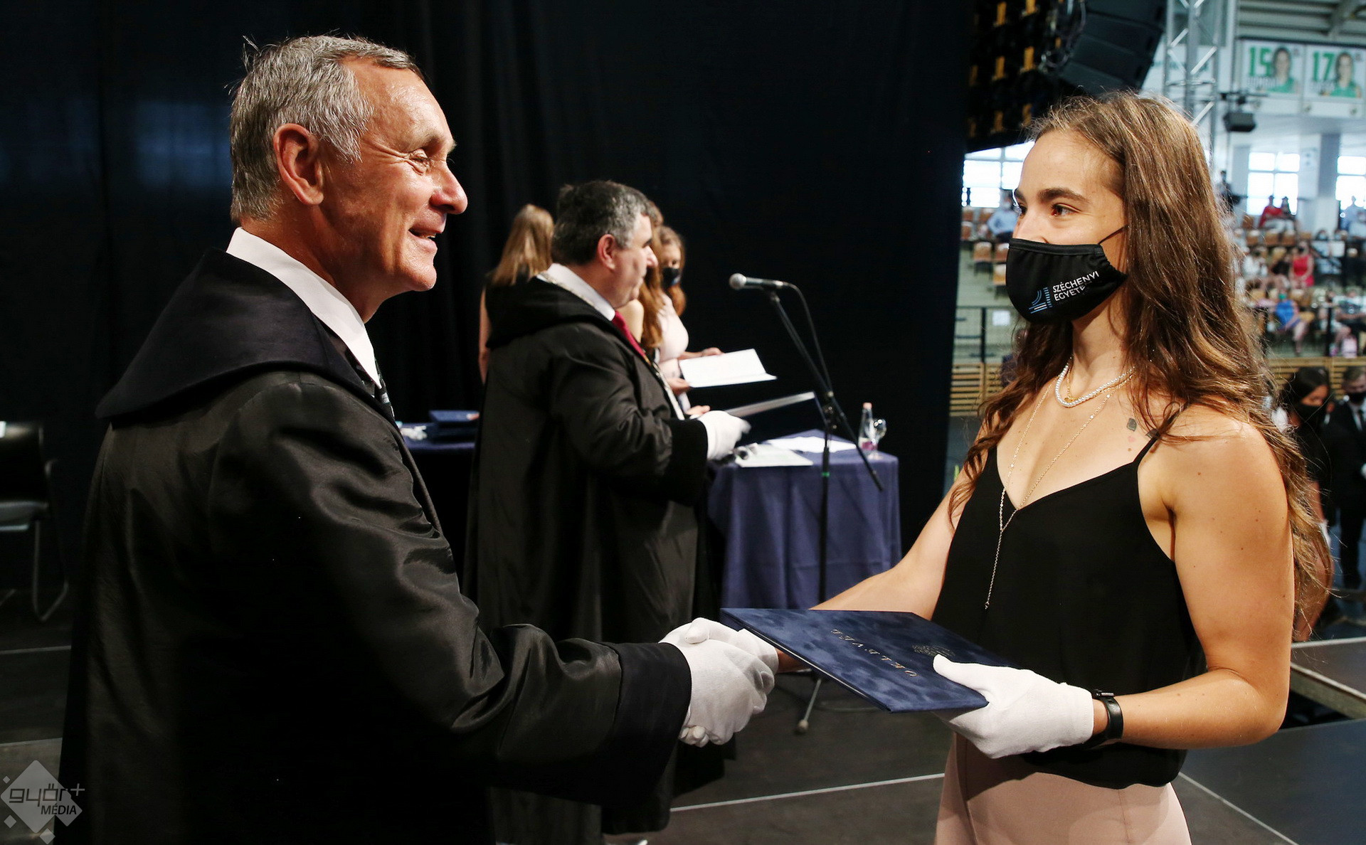 A hallgatók életében talán a legfontosabb pillanat, amikor többéves erőfeszítésük eredményeként ünnepélyes külsőségek között átvehetik oklevelüket. A koronavírus-járvány miatt tavaly nyáron és idén februárban nem kerülhetett sor ilyen eseményekre a Széchenyi István Egyetemen, a mostani tanév végén azonban már lehetőség nyílt az ünnepségek megtartására. A sort a Művészeti Kar nyitotta június végén, amelyet a mostani hétvégén az Egészség- és Sporttudományi Kar, az Apáczai Csere János Kar, az Építész-, Építő- és Közlekedésmérnöki Kar, valamint a Deák Ferenc Állam- és Jogtudományi Kar folytatott a Győr Városi Egyetemi Csarnokban. Ezeken a karokon több mint 700 fiatal szerzett most diplomát.