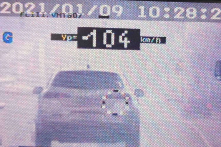 Az ellenőrzés idején, 10 óra 28 perckor, a képen látható jármű sofőrje az adott útszakaszra vonatkozó 50 km/h megengedett legnagyobb sebesség helyett 104 km/h sebességgel közlekedett.