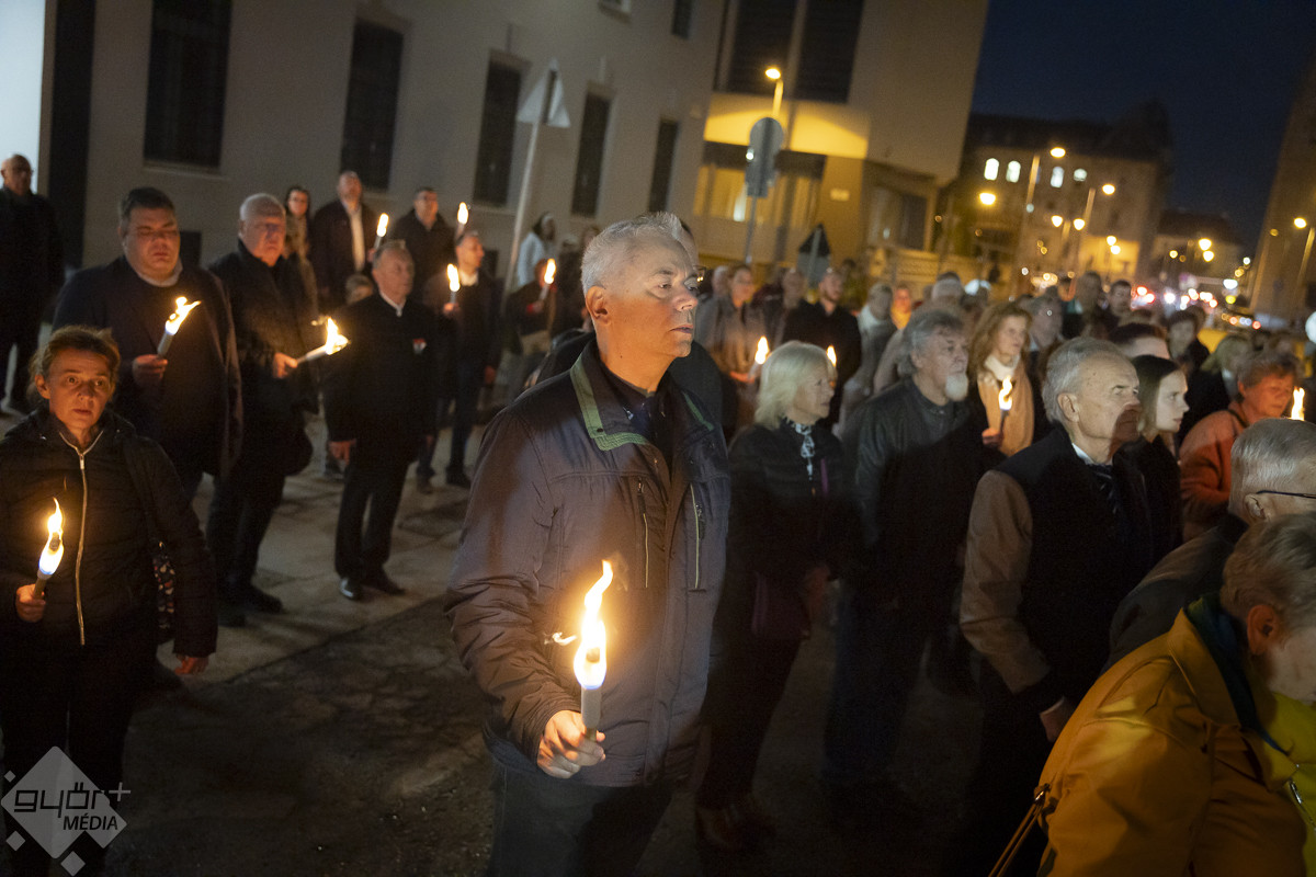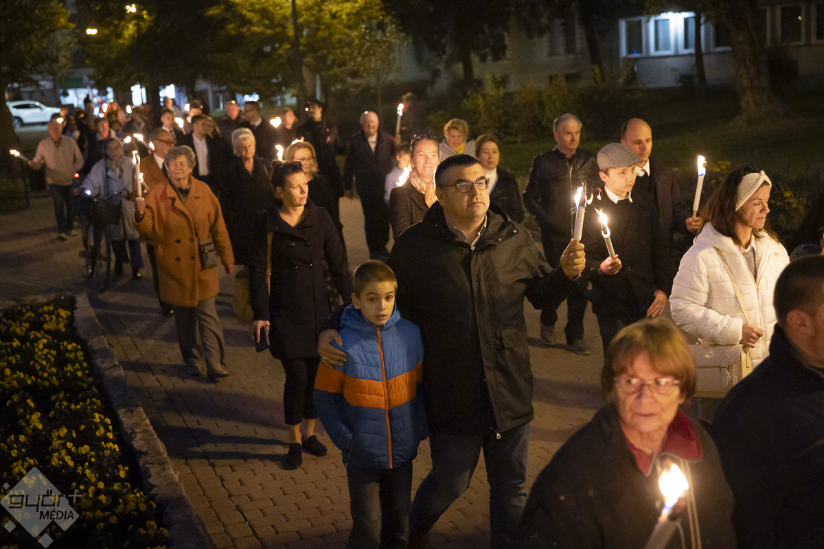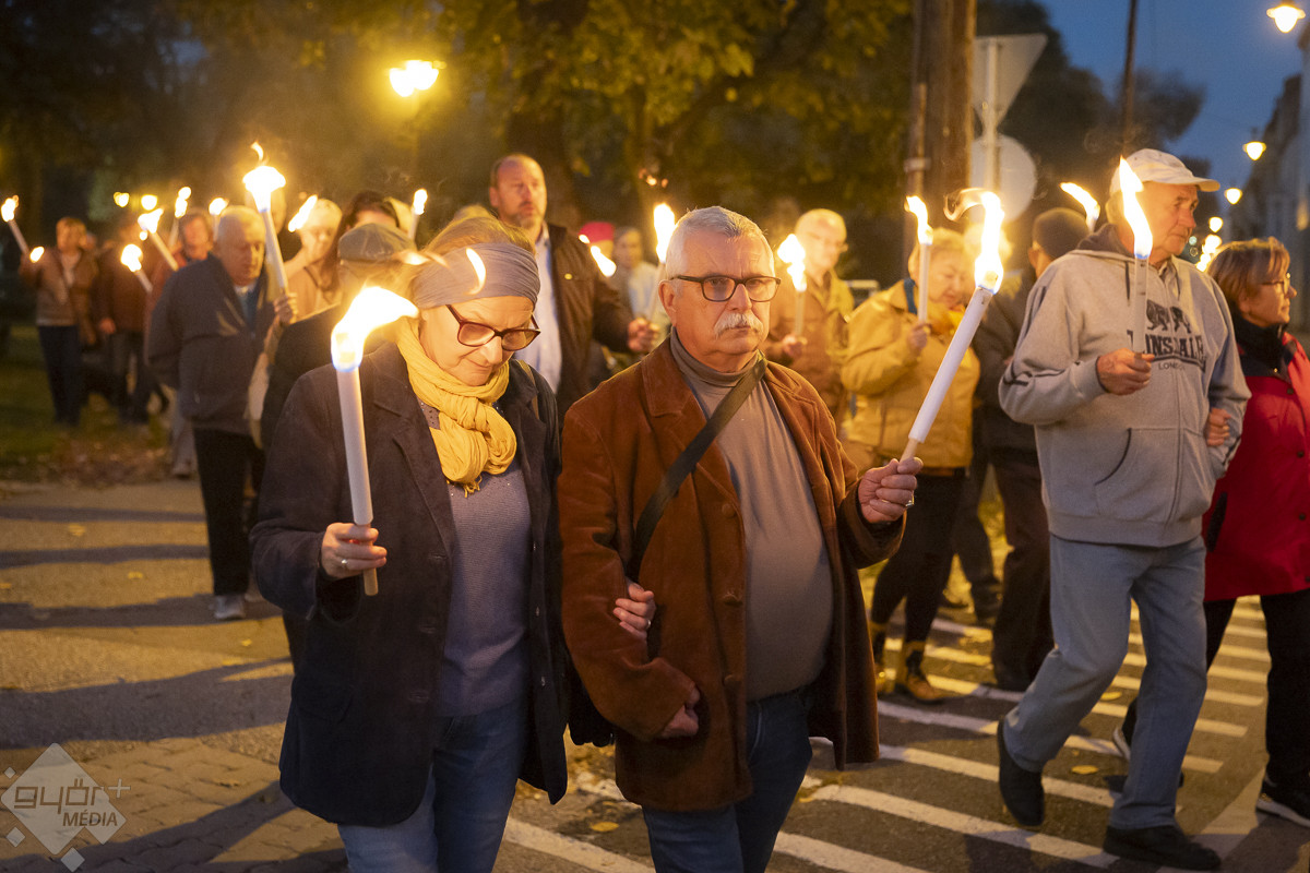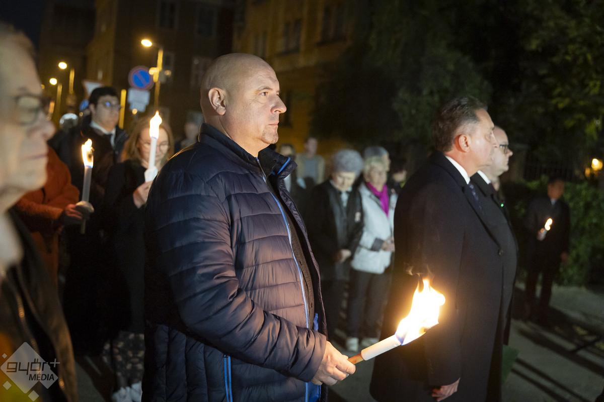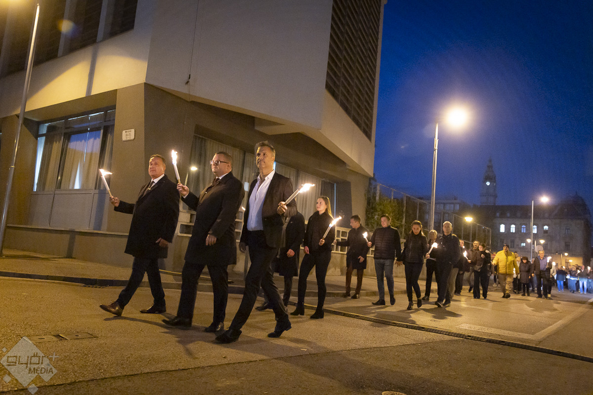 A sötétedő őszi estén, a séta kezdetén fáklyák meleg fénye lobbant fel, így a börtönig tartó út során vörös lángcsóva és halovány füst kísérte a menetet, a Városházát megkerülve, át a Honvéd ligeten, egészen a börtön bejáratáig, ahol elsőként dr. Fekete Dávid köszöntötte a megjelenteket.