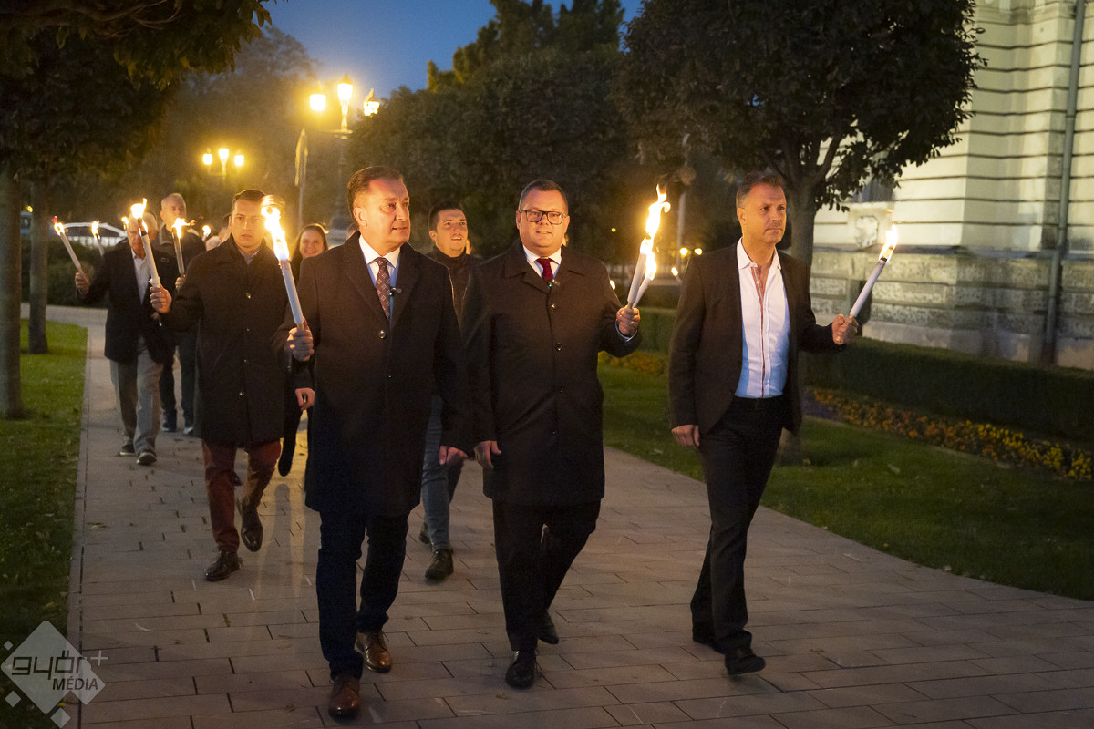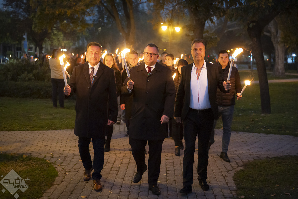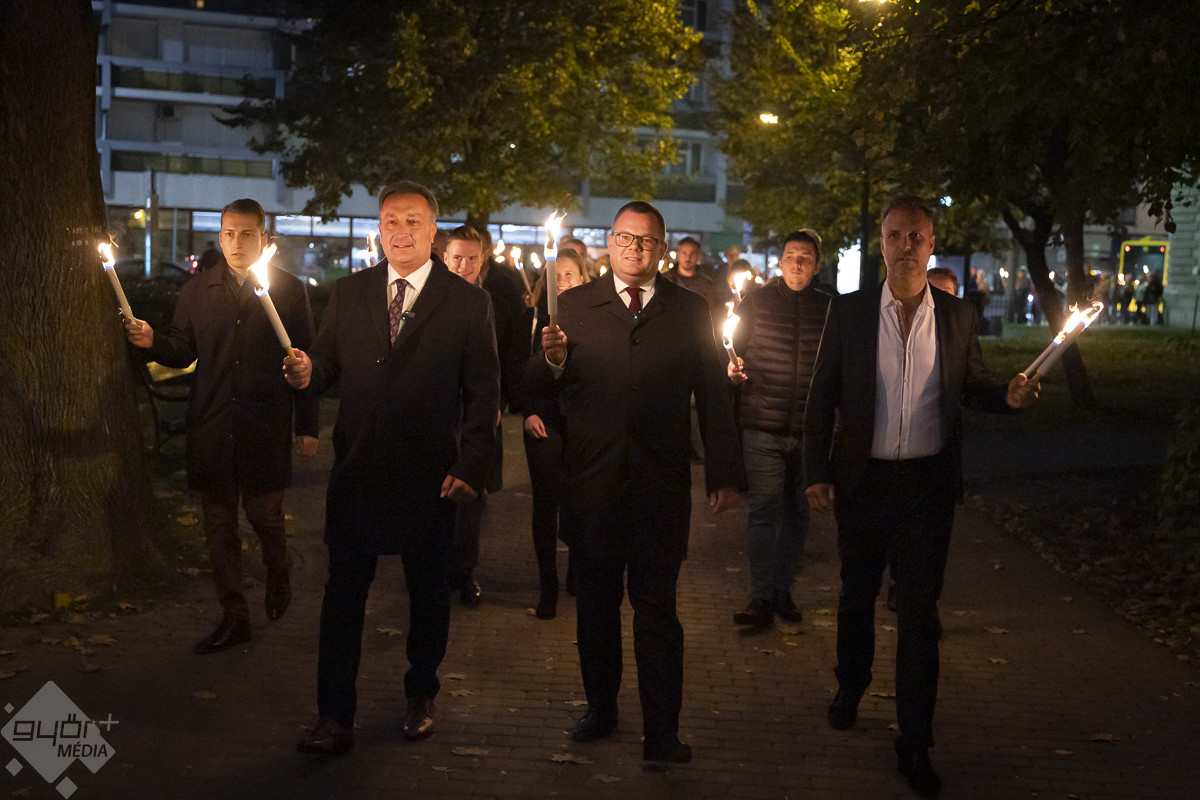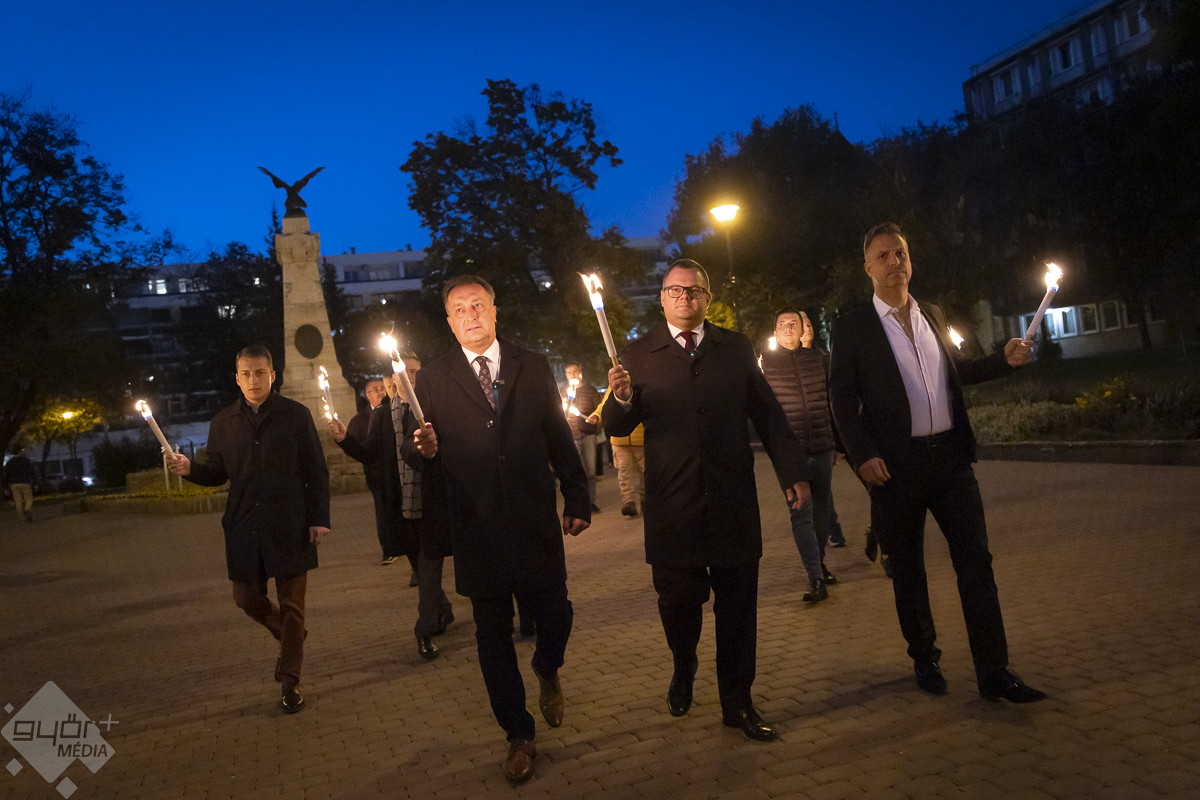 Rég volt ilyen különleges és felemelő hangulata a főhajtó megemlékezéseknek Győrben, mint amilyet átélhettek azok, akik kedd este a Fidesz győri szervezetének eseményén adóztak az 1956-os forradalom történelmi eseményei, tragédiái és áldozatai előtt. Több százan gyűltek össze a Golgota emlékműnél, képviselők, ismerősök, régi barátok ragadtak fáklyát, hogy a lobogó fényforrás tüzével adózzanak az ország mártírjai, a győri szabadságharcosok előtt. A különleges eseményen dr. Fekete Dávid és Simon Róbert Balázs mondott beszédet.