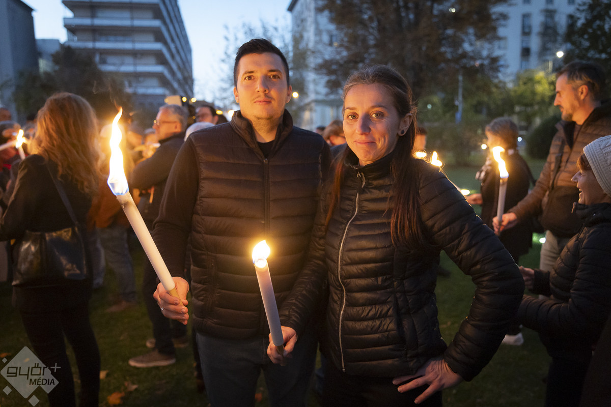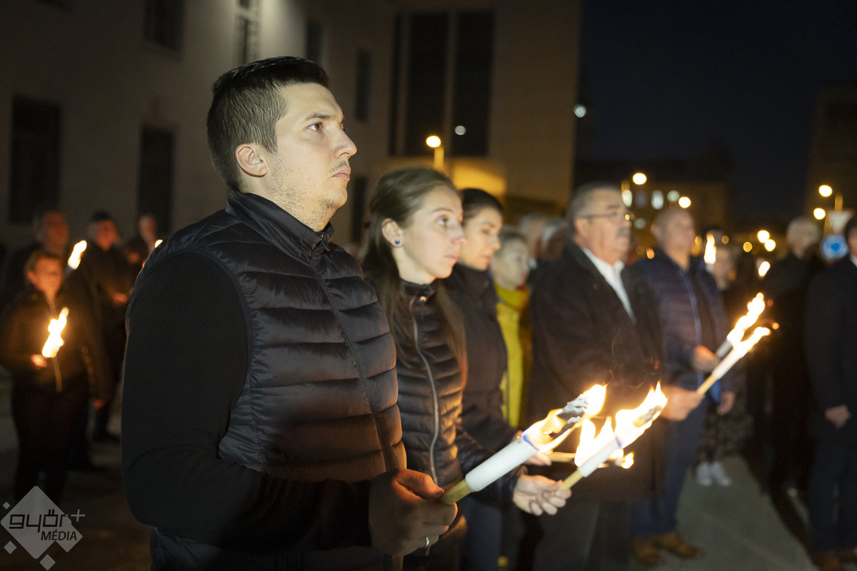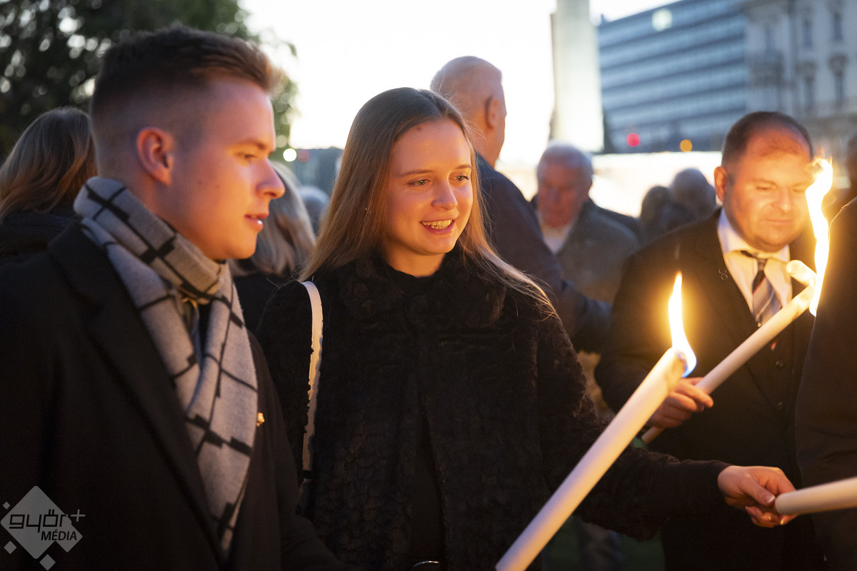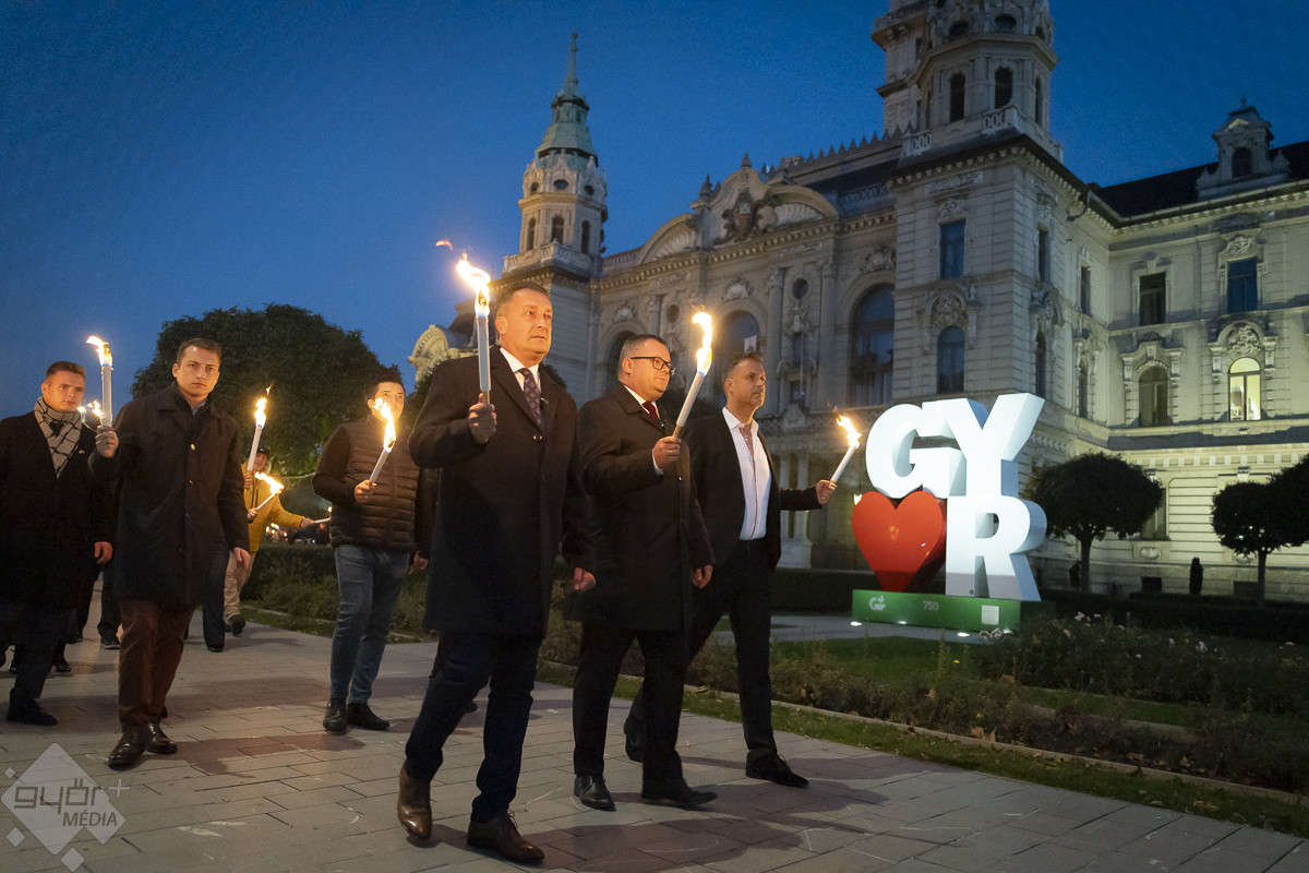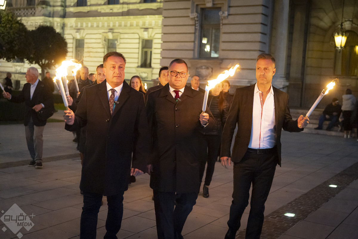 Rég volt ilyen különleges és felemelő hangulata a főhajtó megemlékezéseknek Győrben, mint amilyet átélhettek azok, akik kedd este a Fidesz győri szervezetének eseményén adóztak az 1956-os forradalom történelmi eseményei, tragédiái és áldozatai előtt. Több százan gyűltek össze a Golgota emlékműnél, képviselők, ismerősök, régi barátok ragadtak fáklyát, hogy a lobogó fényforrás tüzével adózzanak az ország mártírjai, a győri szabadságharcosok előtt. A különleges eseményen dr. Fekete Dávid és Simon Róbert Balázs mondott beszédet.