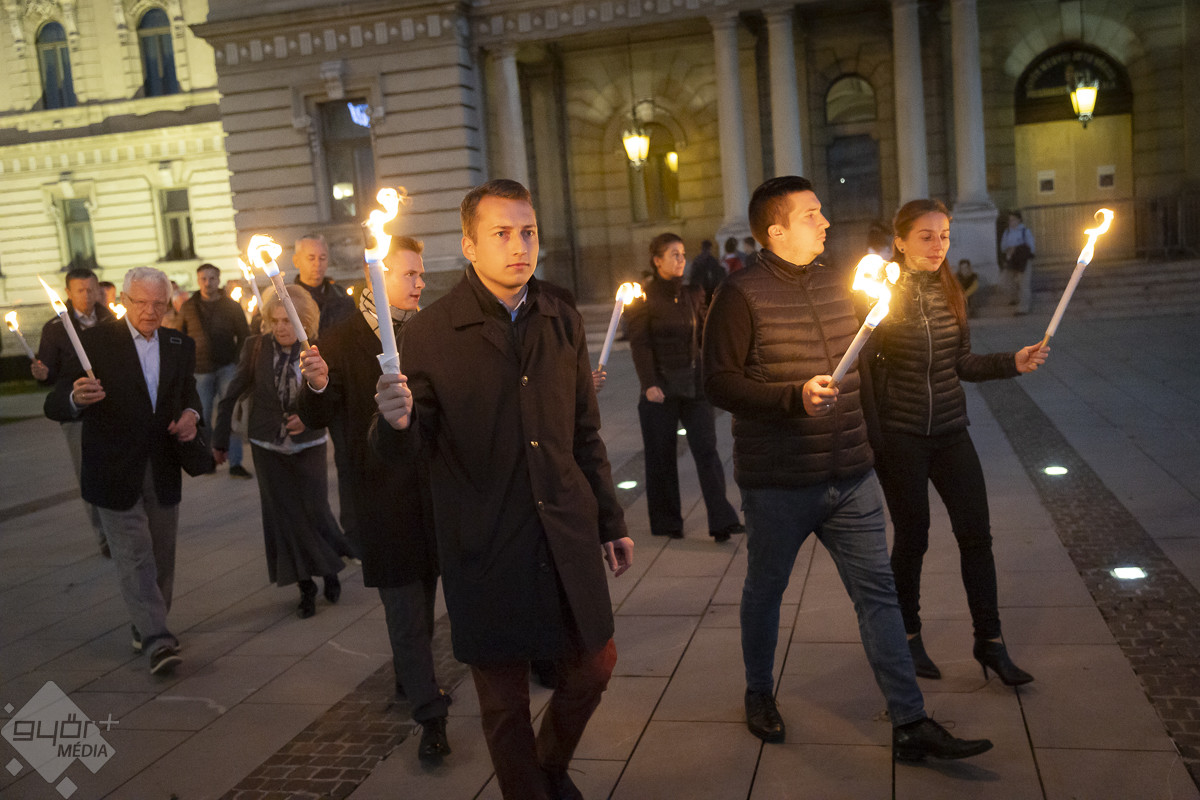 Csendben gyülekeztek a Bisinger sétánynál az emlékezők, a Fidesz győri szervezete hangulatos, közös sétára invitálta az érdeklődőket, egy nappal a véres évforduló előtt, mikor is Magyarország népe fellázadt a sztálinista terror, a szovjet megszállás ellen.