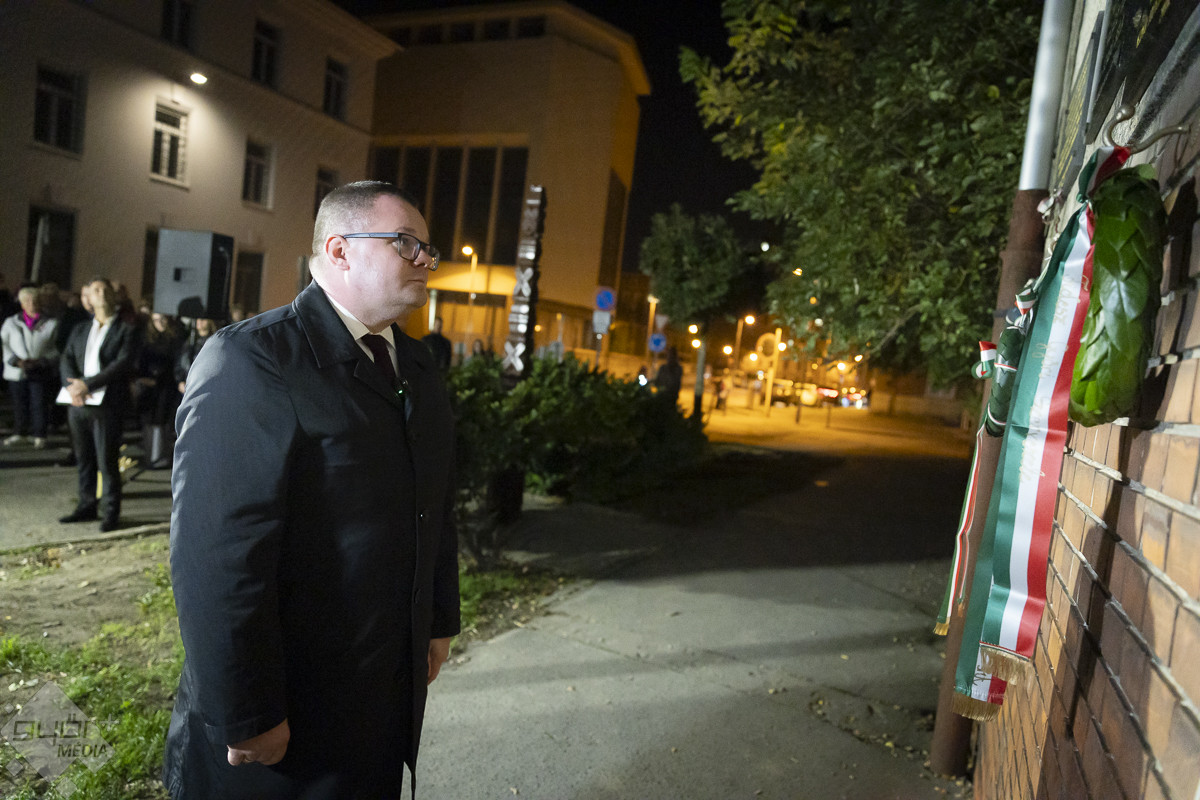 „A mi politikai közösségünknek meggyőződése, hogy nem szabad hagynunk, hogy ismét különböző hatalmi központokból mondják meg, mit gondoljunk a minket érintő sorskérdésekről” – tette hozzá a frakcióvezető. Egyúttal felidézte az ünnepi helyszín, a győri börtön szerepét a közel 70 évvel ezelőtti események vonatkozásában, ahol három győri fiatal lelte halálát, Máté Mária, Szabó Béla és Halász Ödön.