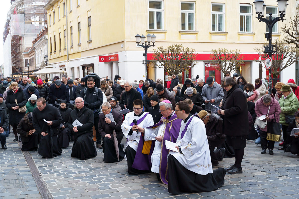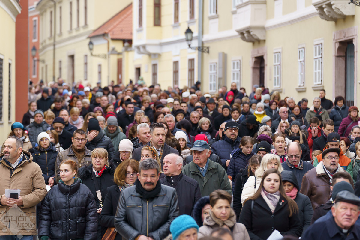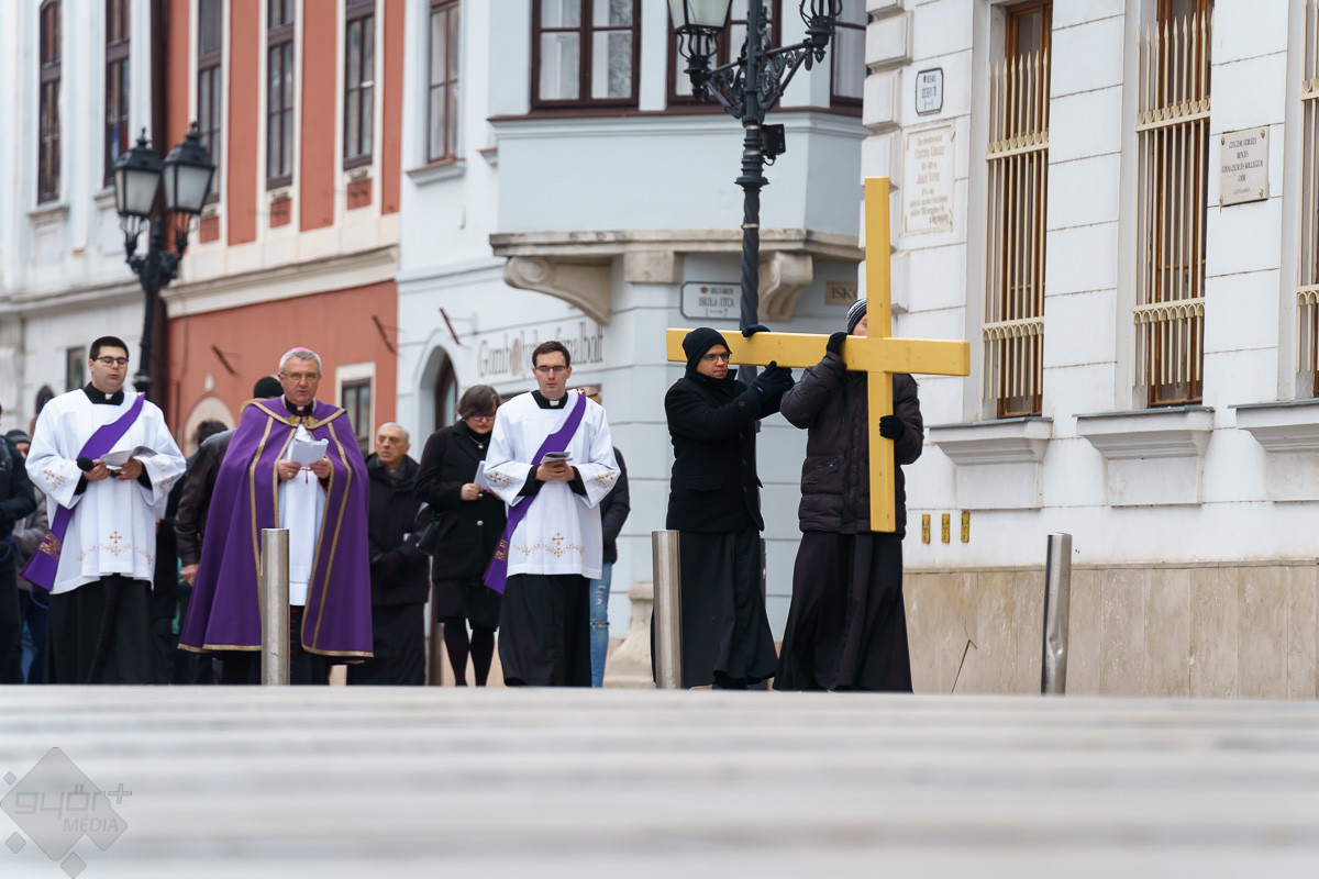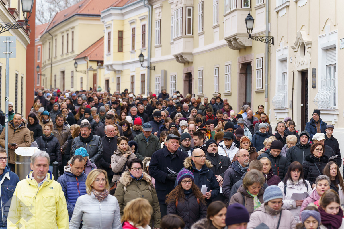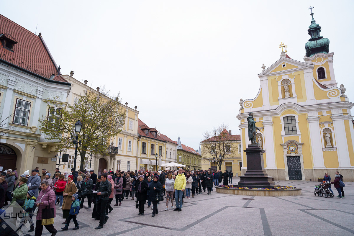 A nagypénteki szertartást ezúttal is dr. Veres András megyéspüspök vezette. Idén is rengetegen emlékeztek és imádkoztak együtt a belváros szívében, így szegődve a keresztet hordozó Jézus nyomába.