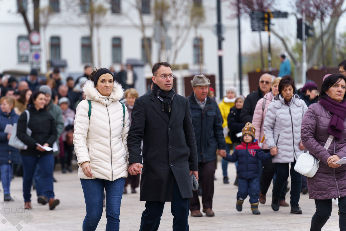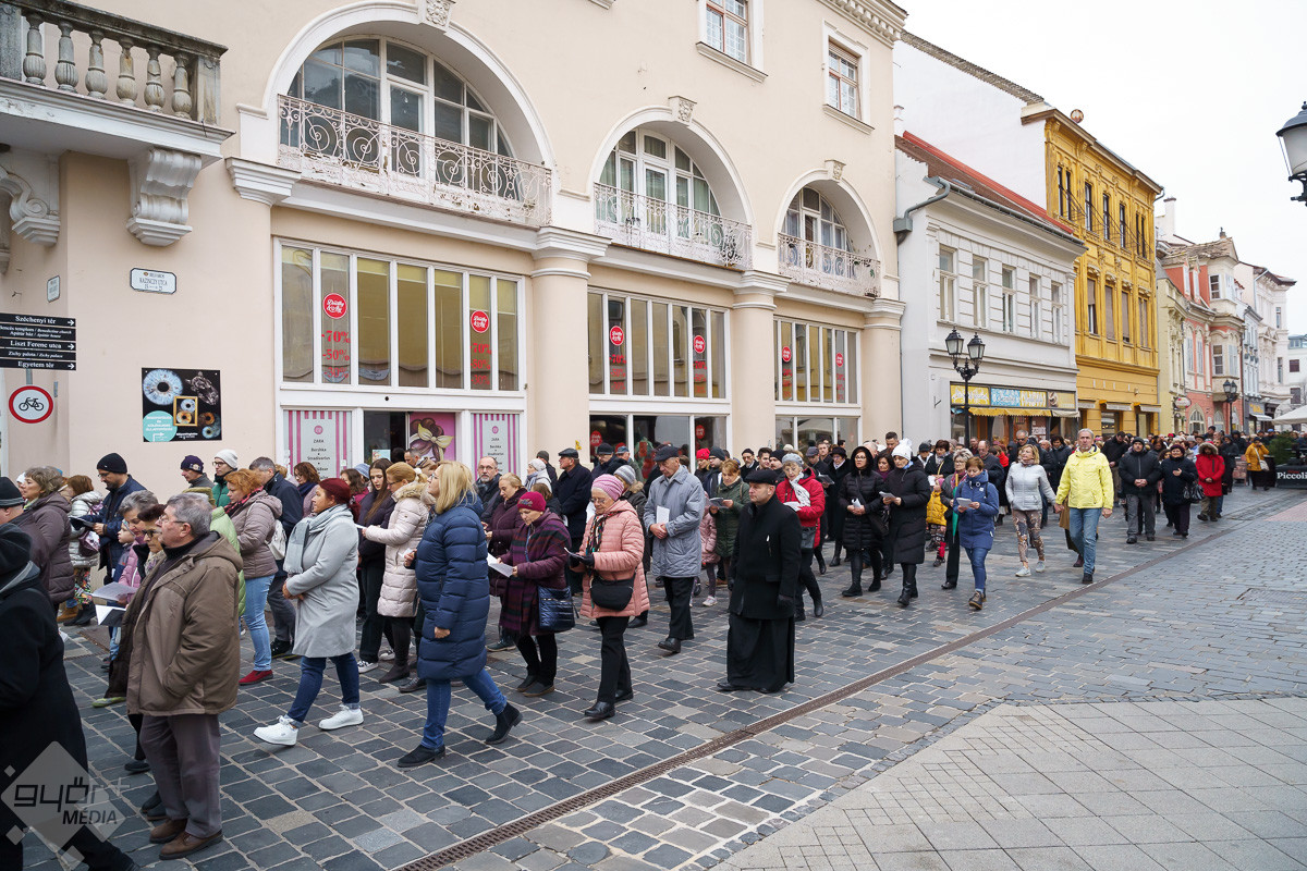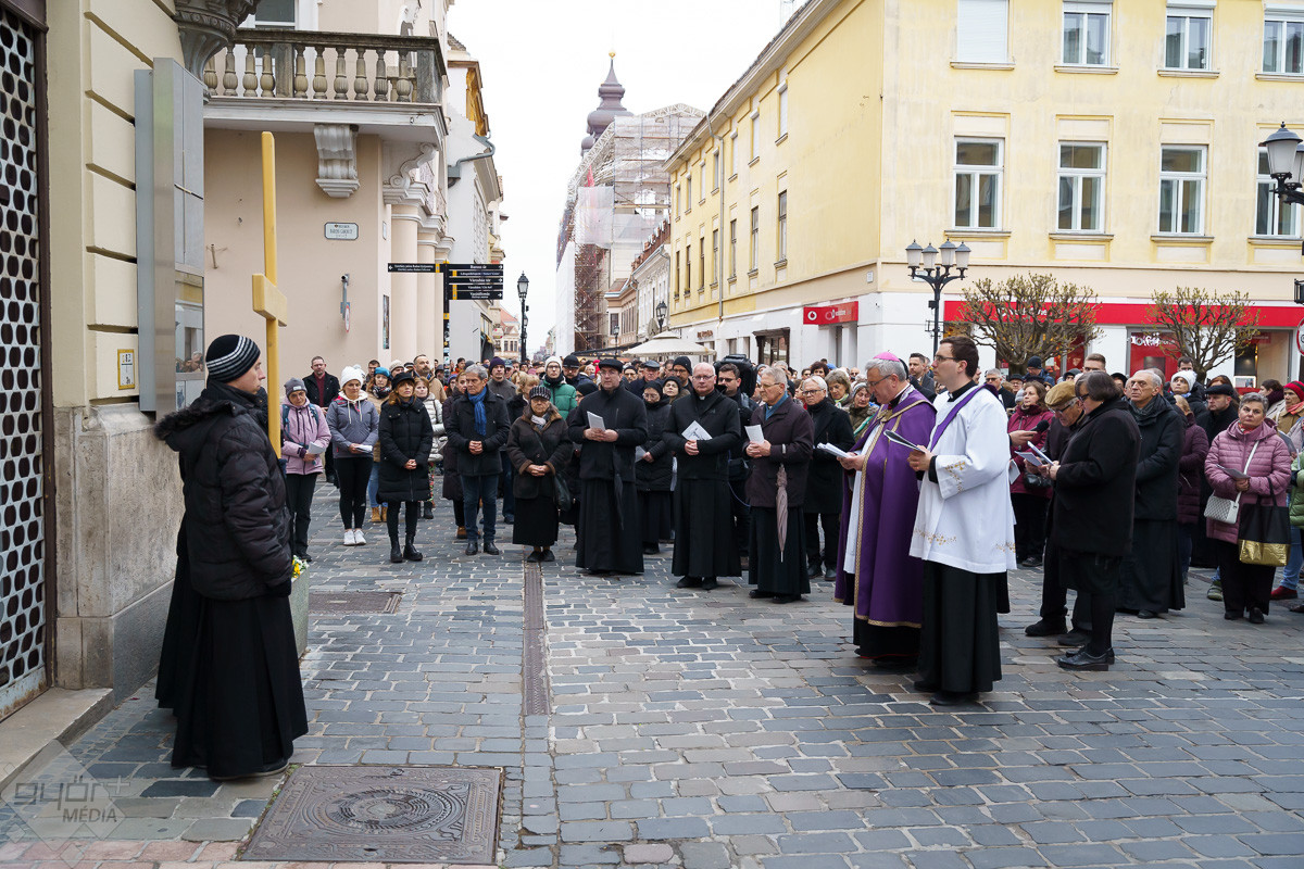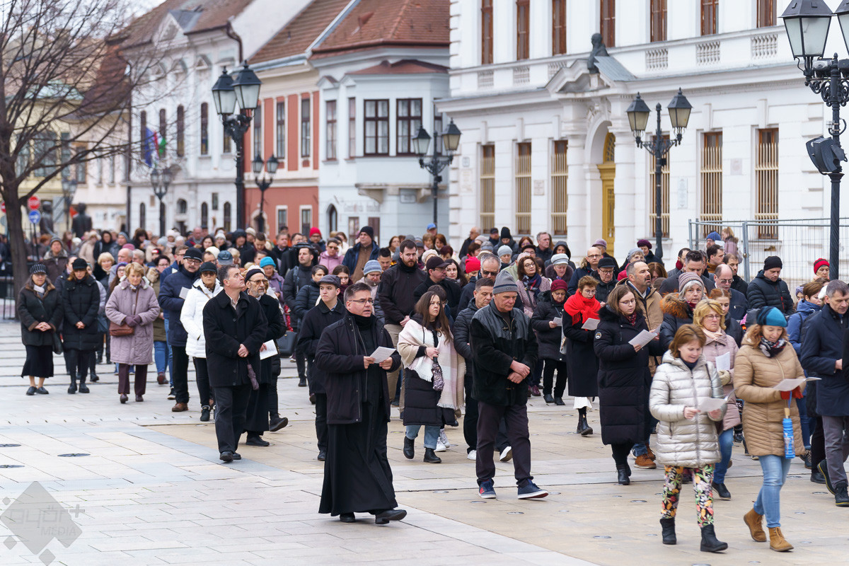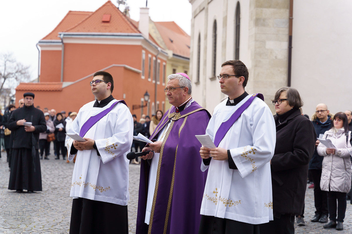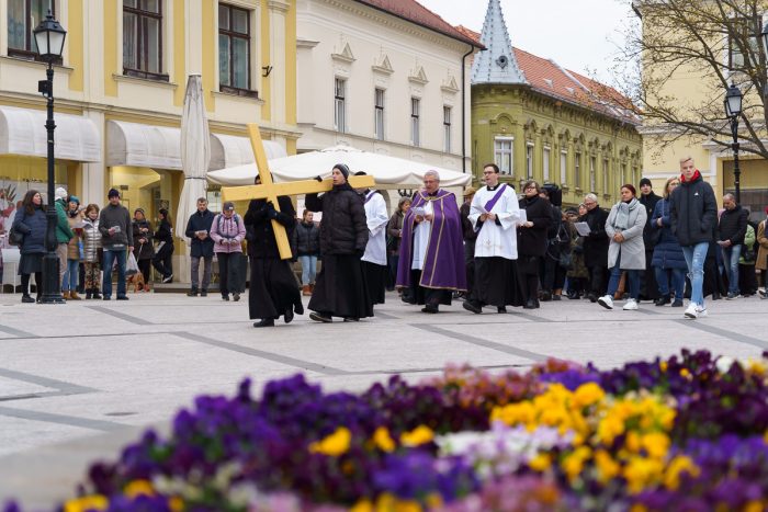 A nagypénteki szertartást ezúttal is dr. Veres András megyéspüspök vezette. Idén is rengetegen emlékeztek és imádkoztak együtt a belváros szívében, így szegődve a keresztet hordozó Jézus nyomába.