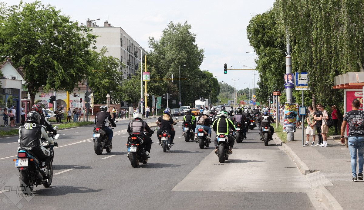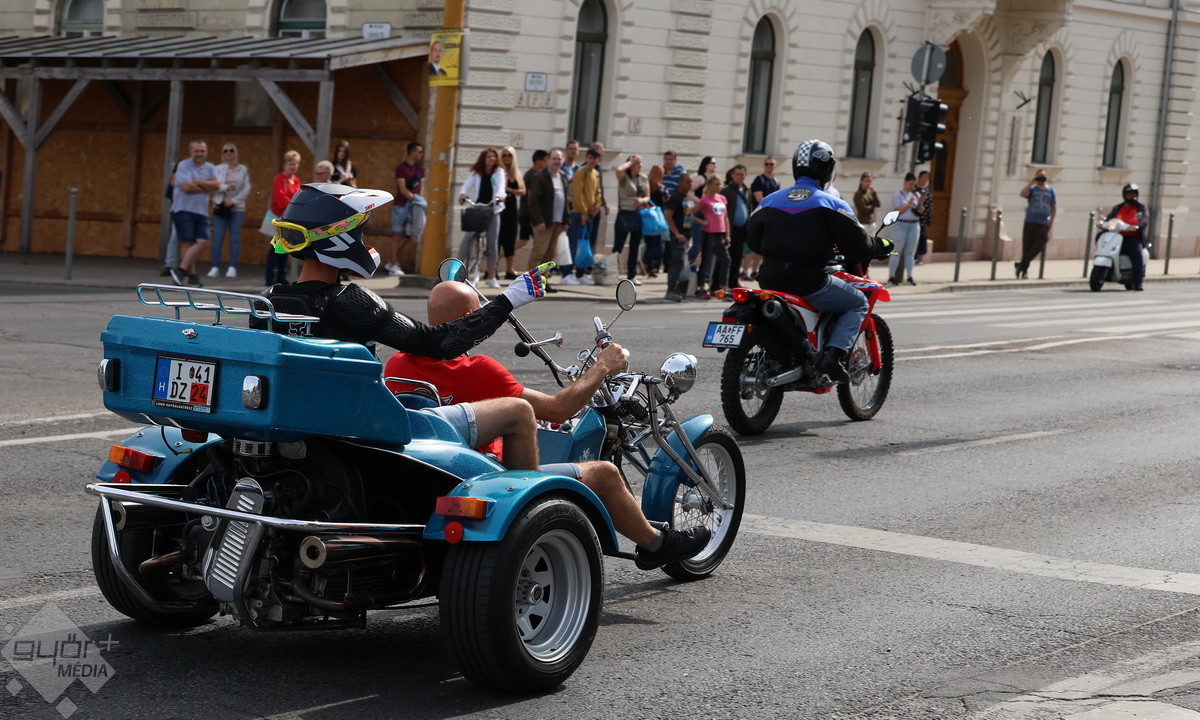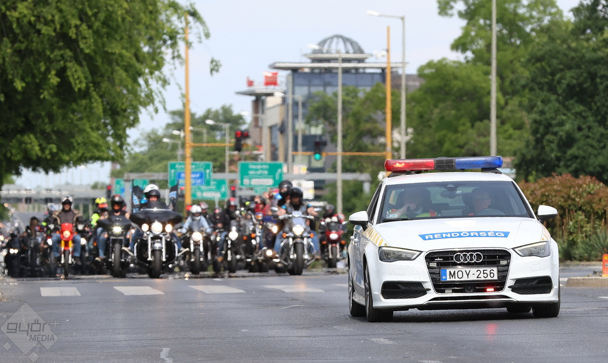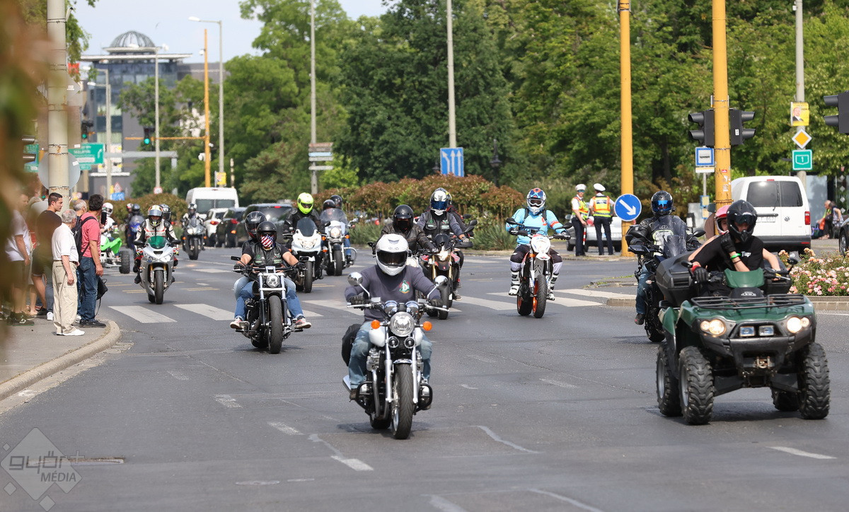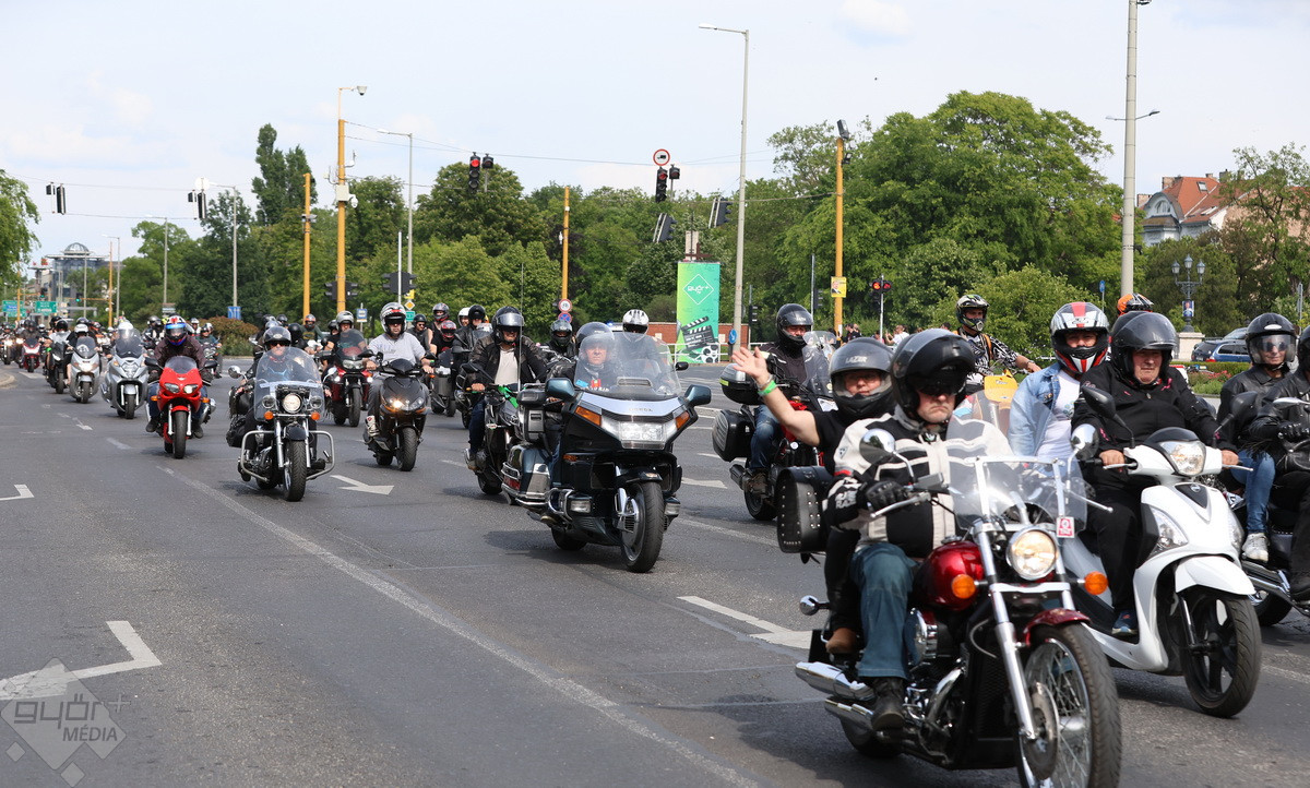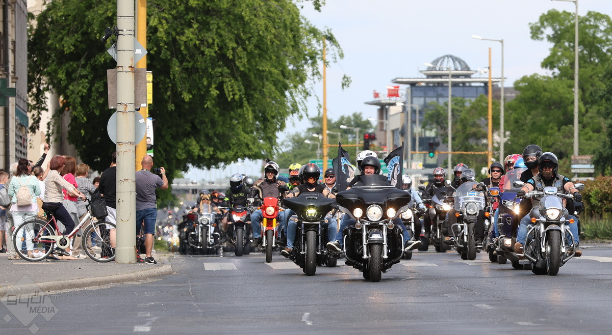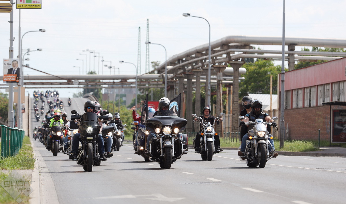 A szombati programnapon több száz kettő- és négykerekű járgánnyal vonultak az ETO Parkhoz a motorosok, ahol Simon Róbert Balázs országgyűlési képviselő köszöntötte őket. Az Arrabona Eagles M.C. Hungary részéről Széles Zoltán indította útjára a bandát, a vezetésével a túramotorosok, vespások, endurosok mellett különleges gépek kígyóztak végig a 83-as út felé, hogy Ménfőcsanakon át visszatérjenek a táborhelyre.