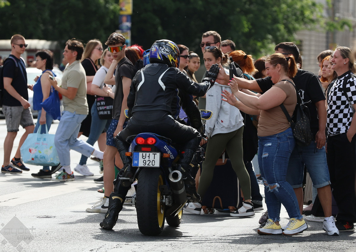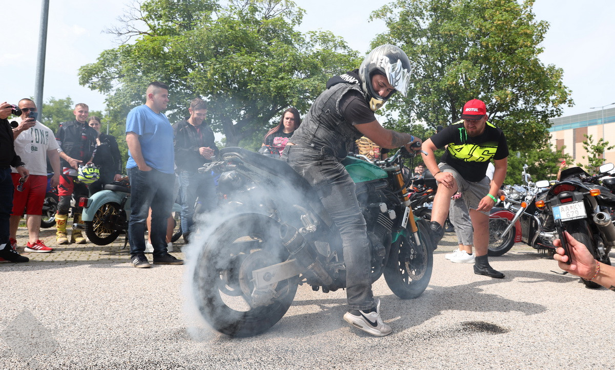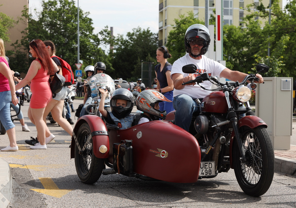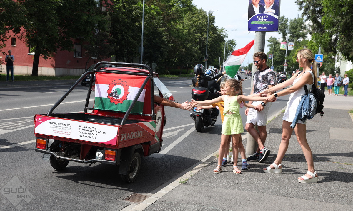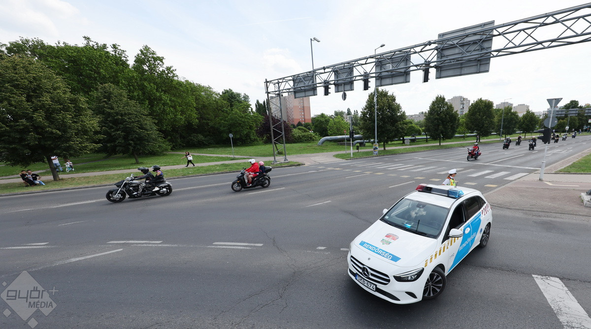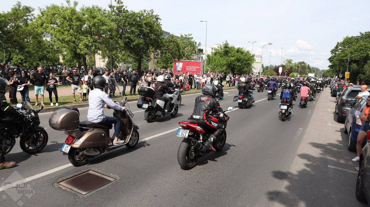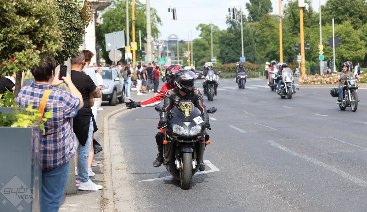 A szombati programnapon több száz kettő- és négykerekű járgánnyal vonultak az ETO Parkhoz a motorosok, ahol Simon Róbert Balázs országgyűlési képviselő köszöntötte őket. Az Arrabona Eagles M.C. Hungary részéről Széles Zoltán indította útjára a bandát, a vezetésével a túramotorosok, vespások, endurosok mellett különleges gépek kígyóztak végig a 83-as út felé, hogy Ménfőcsanakon át visszatérjenek a táborhelyre.