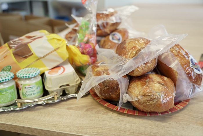 A dobozokba porciózott adományokat csütörtökön osztották ki a karitász munkatársai, rengeteg finomság lapult a csomagokban, köztük a Húsvét jellegzetes ételei is, így például kalács, tojás és sonka is a rászorulók ünnepi asztalára kerülhet.