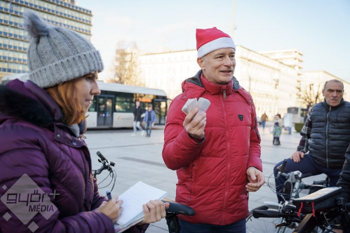 Ehhez járult hozzá a Jankovich Élménypark is, akik 200 darab ingyenes belépőt ajánlottak fel a Dunakapu téren található óriáskerékre. Ezeket is szétosztjuk majd az emberek között!” – a Mikulás-bringások ugyanis nem csapatban kerekezik körbe a várost, hanem mindenki arra indulhatott, amerre szeretett volna. Tamás annyit kért tőlünk, hogy lehetőleg Győr minden városrészét járják be, hogy tényleg mindenhol esély legyen a velük való találkozásra. Az esemény zárásaként pedig 17 óra után közös forrócsokizásra várnak minden Mikulás-kerékpárost!