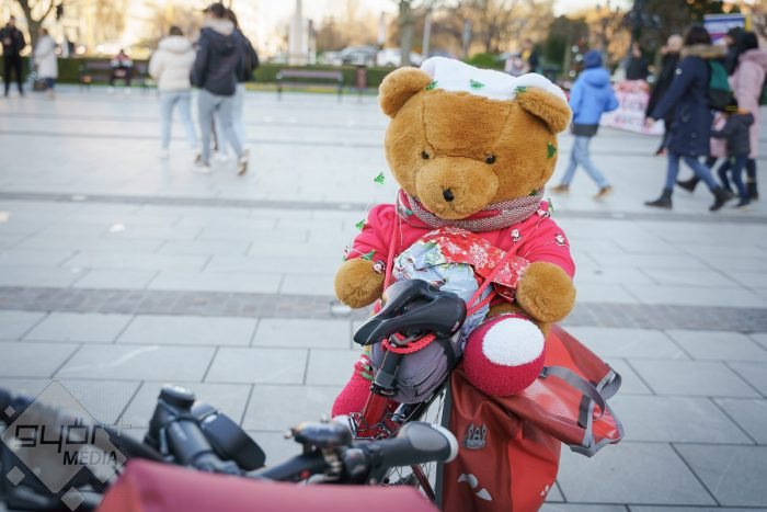 A feldíszített bringás, macikkal, manókkal és Mikulás-ruhákkal, sapkákkal felszerelkezett kerékpárosok pedig széles mosollyal az arcukon érkeztek. Mindenki várta már a találkozást a gyermekekkel: mert a cél többek között ez is volt a rendezvénnyel.