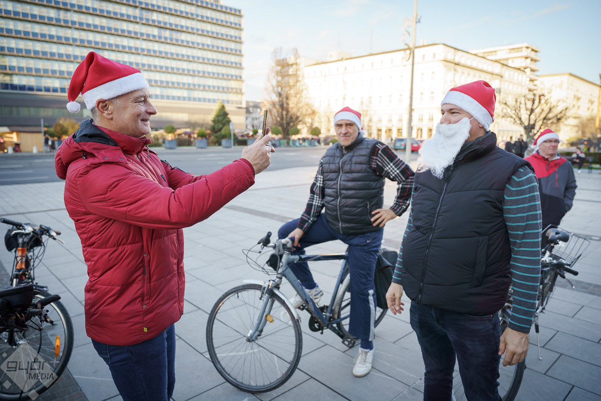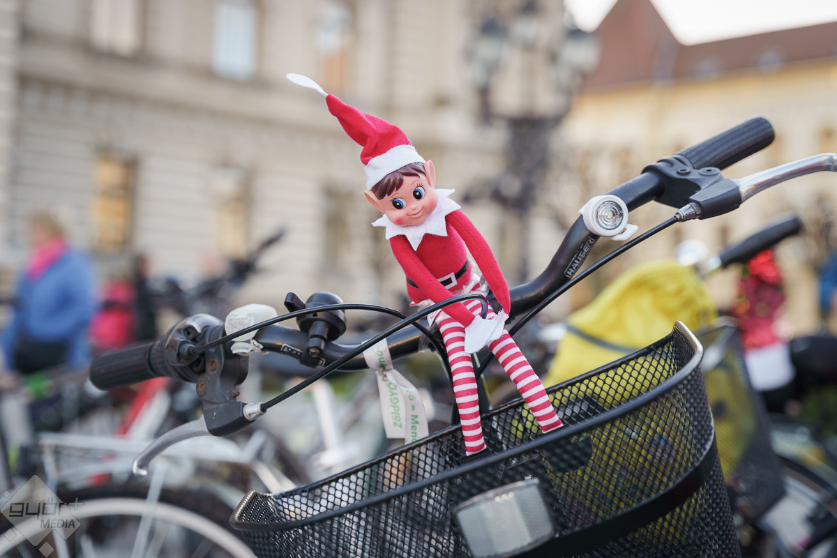 „Szerencsére az időjárás is kegyes hozzánk, tegnaphoz képest ma már szépen süt a nap, igazi bringás idő van!” – kezdte Tömböly Tamás, aki azt is elmondta, hogy erre a rendezvényre most elsősorban felnőttek jelentkezését várták, hiszen a Mikulás-jelmezben való kerekezés nem is annyira egyszerű, mint elsőre gondolnánk. Kellett tehát a megfelelő bringás ismeret, és az is, hogy mindenkinek legyen valamilyen jelmeze.
