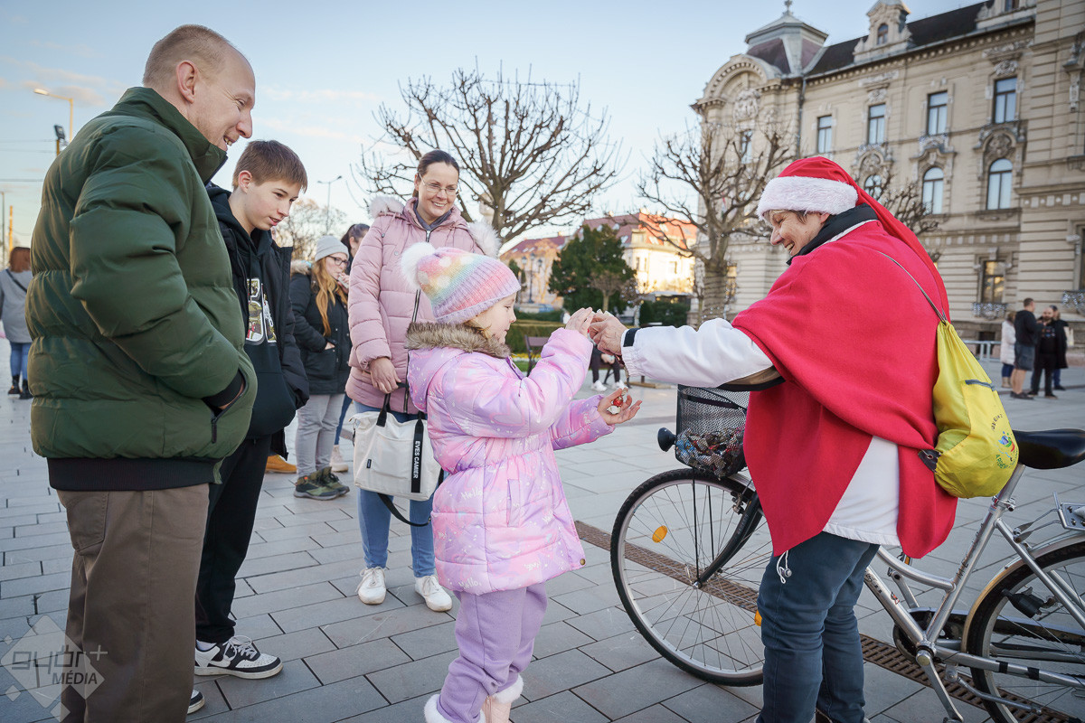 „Több mint 20 kilogramm szaloncukorral, Mikulás-csokikkal és egyéb édességekkel is készültünk bárkinek, aki megszólít bennünket, vagy akivel találkozunk. Persze a Mikulás fő célközönsége a gyermekek, de mi mindenkinek szeretnénk örömet okozni.