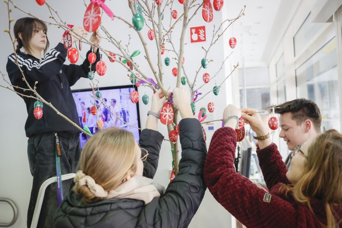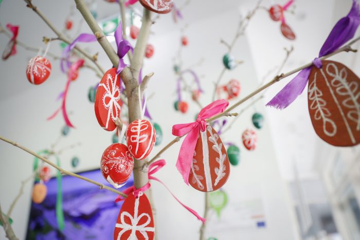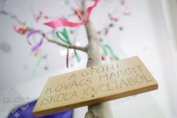A közelgő húsvét jeleként mától tojásfa díszíti a győri Látogatóközpontot. A színpompás dekoráció a Kovács Margit Iskola diákjainak munkája, akik több mint száz tojást festettek csapatmunkában. Az alsó-, a felső tagozatosok és a gimnazisták egyaránt nagy örömmel vállalták a feladatot, sőt még a tanáraik is besegítettek. A színes tojásokon kívül szalagokkal ékesítették a fát.