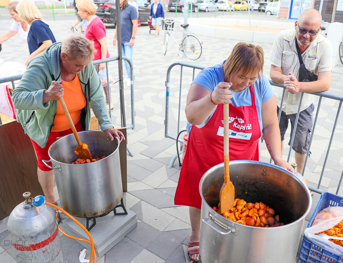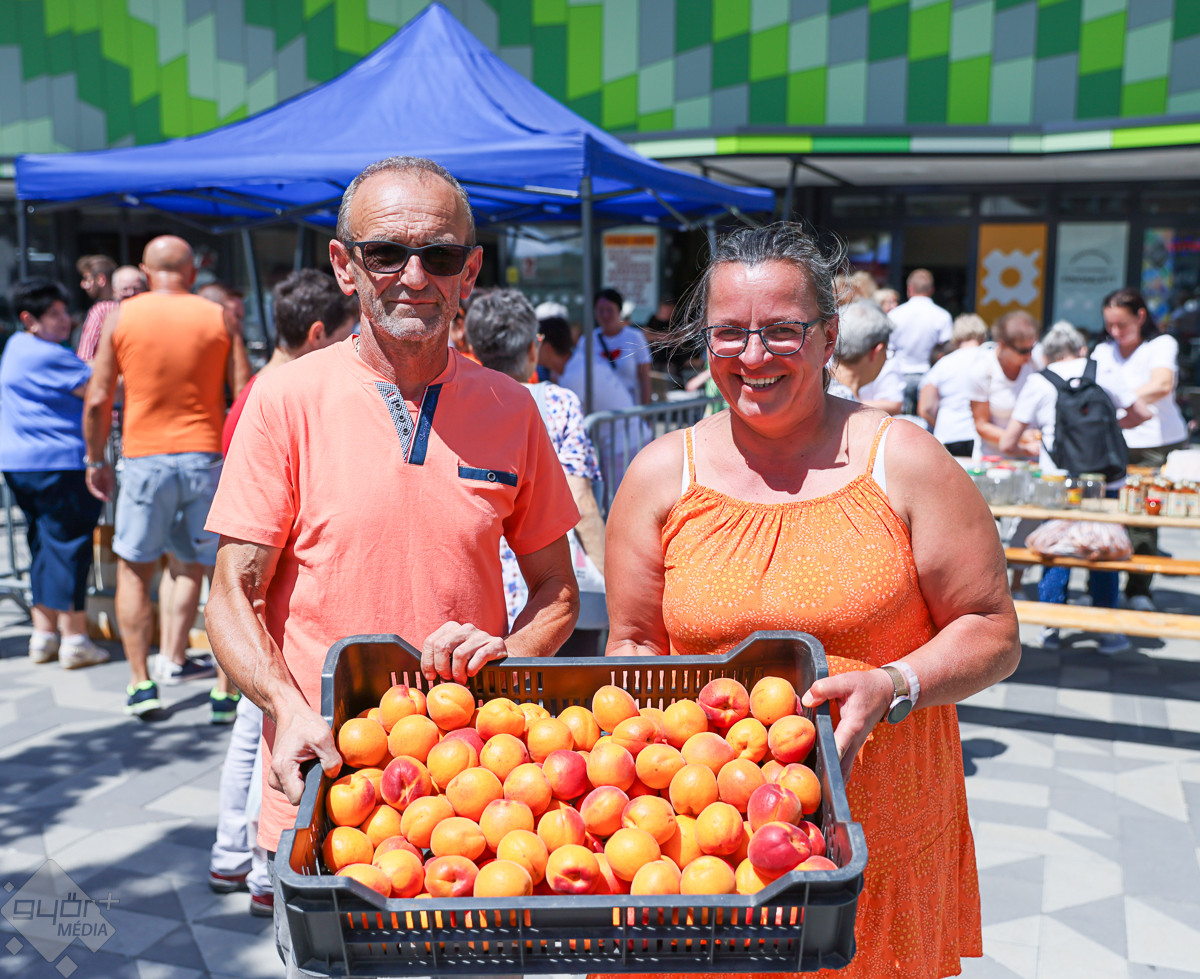 „Kilenc óra körül elkezdtük a barackvásárt, ami egybe van kötve a Jótékonysági Baracknappal. Nagyon sokan jöttek el, mert nagyon kedvező áron, 600 Ft/kg áron adjuk a barackot. A termelők is mellénk álltak, tehát akiktől hozzuk, ők is olcsóbban adták nekünk, hogy tudjunk egy kis akciót csinálni. A lekvár főzés most kezdődött, erre ajánlottuk fel a barackot, nemsokára elkészül az első adag, lehet jönni üvegekkel és bárki egy tetszőleges összegért vihet. A befolyt pénzt pedig a kórház Lurkó Alapítványának ajánlottuk fel.” – erről számolt be a Győr+ Médiának Markó Vendel, aki Szakács Zsoltné Orsival közösen ajánlotta fel a gyümölcsöt a lekvárfőzéshez.