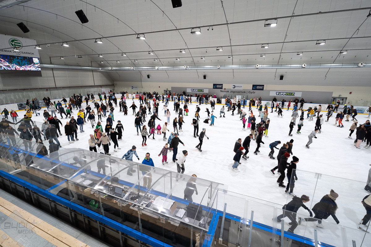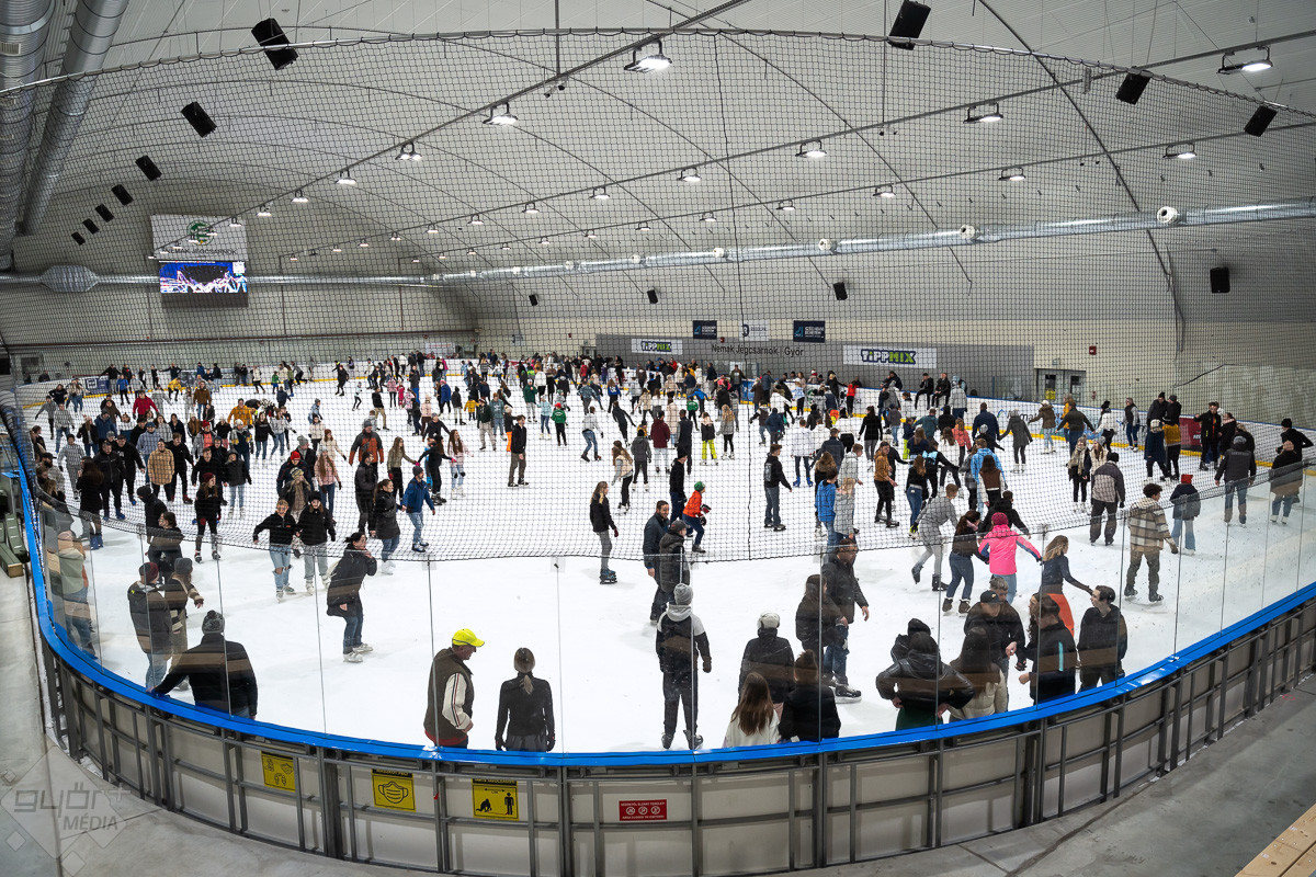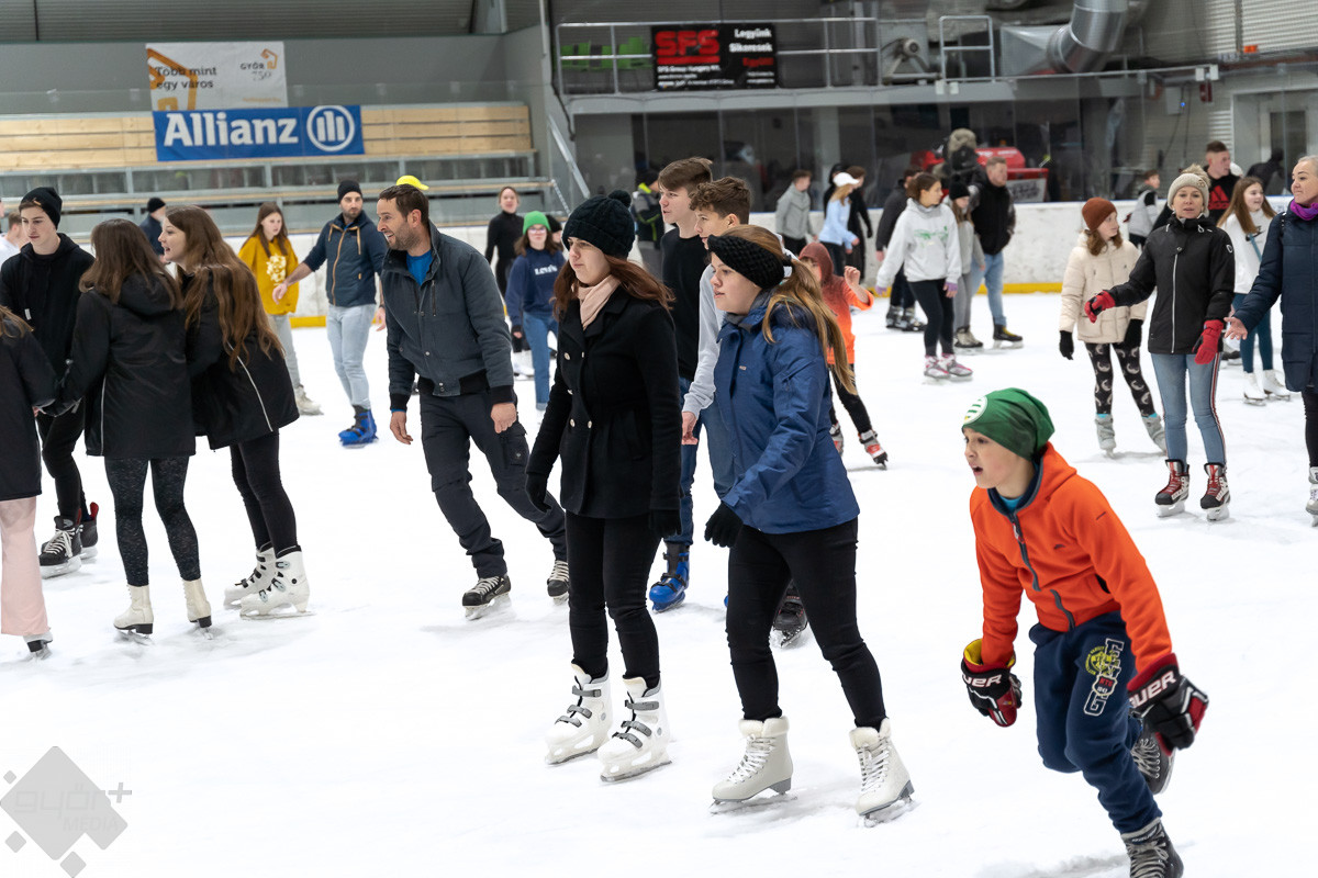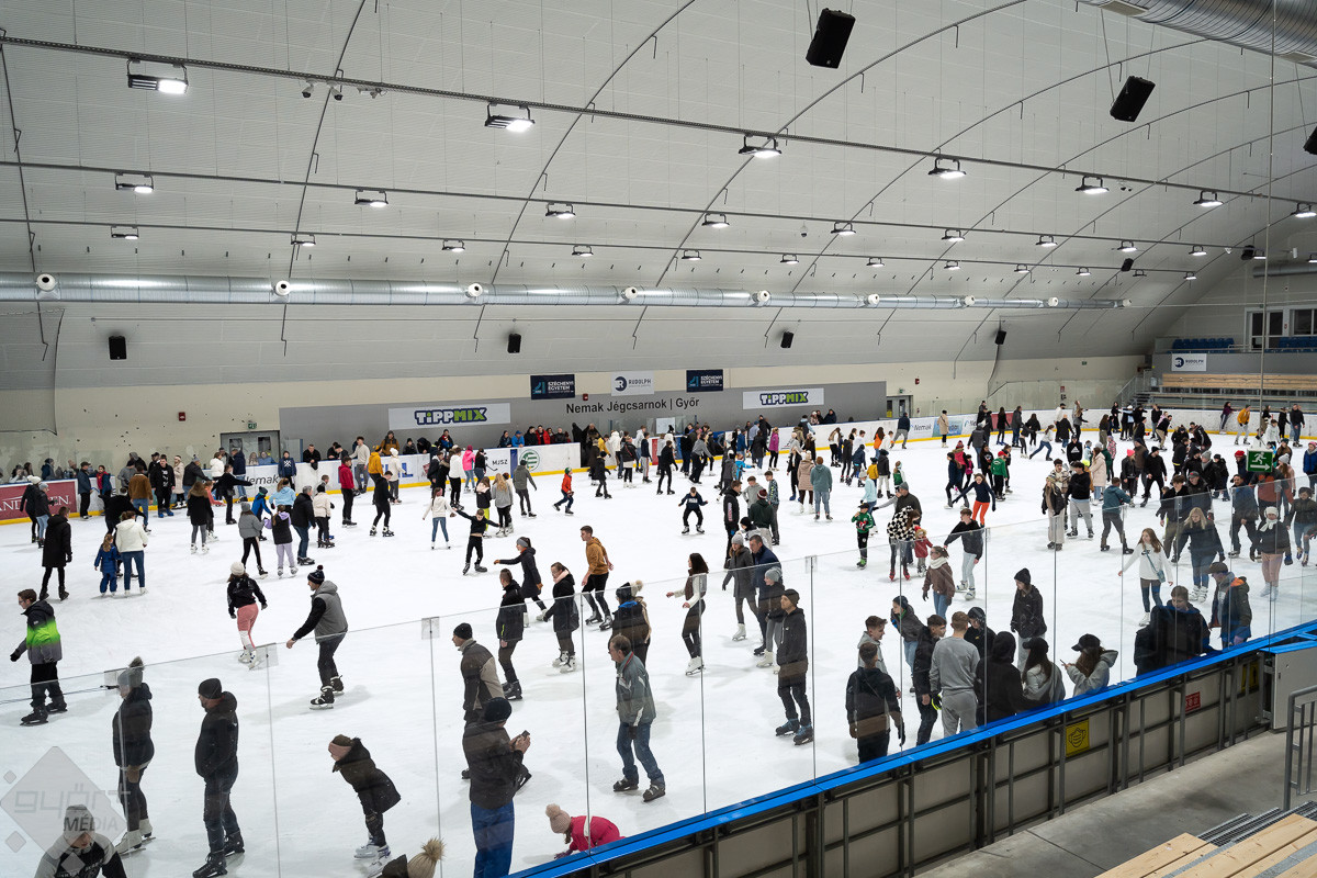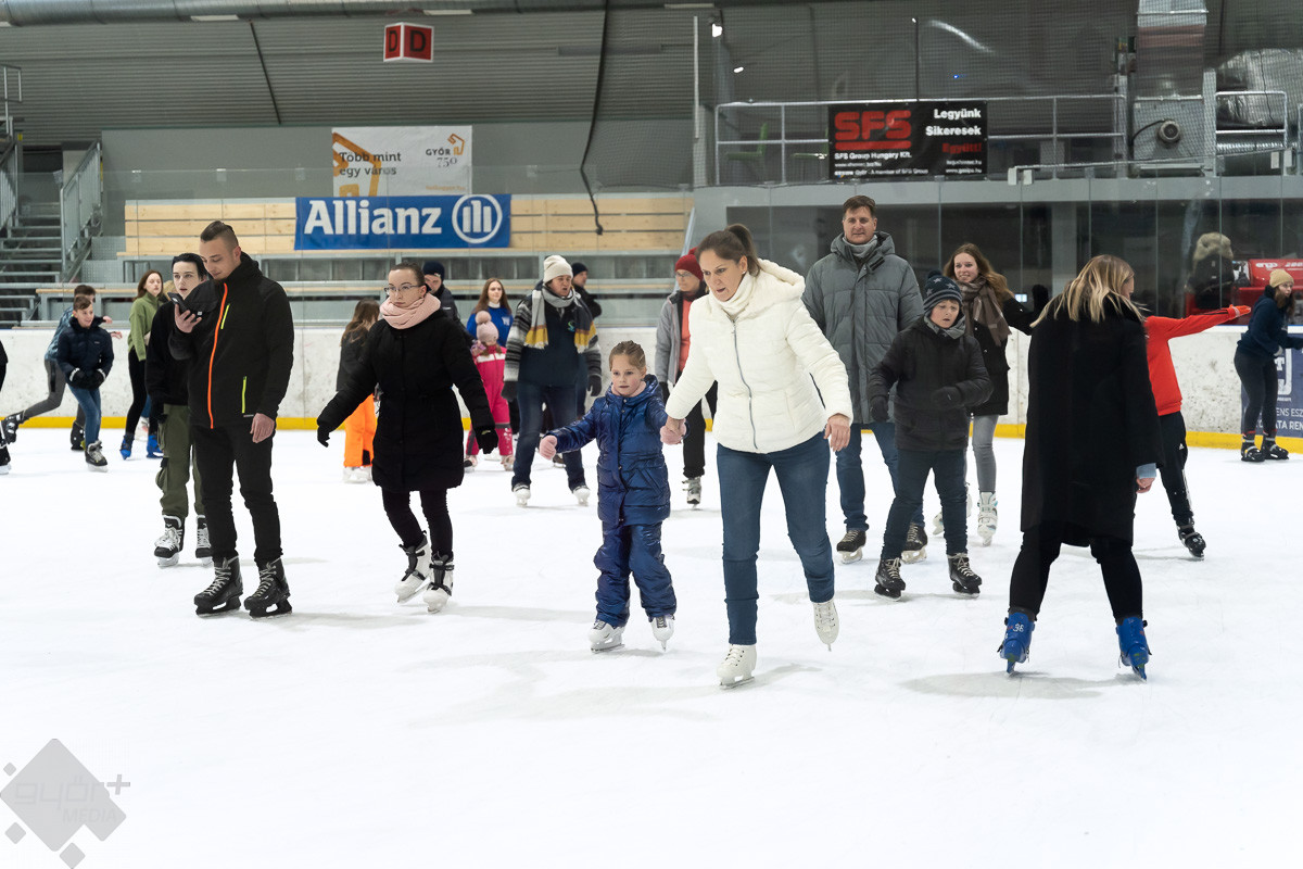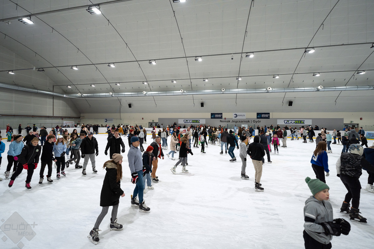 Győrben is kígyózó sorok sorok álltak a jegypénztárnál és a jégre lépés előtt is voltak olyan időszakok, amikor néhány percet várni kellett a sok érdeklődő miatt. Mosolygós, rózsás arcú gyerekek és felnőttek húzták fel korcsolyáikat a belépést követően, többek a hamisíthatatlan “koris melegszendviccsel” és gofrival kezdtek, az erőgyűjtés után pedig jöhetett a csúszás.
