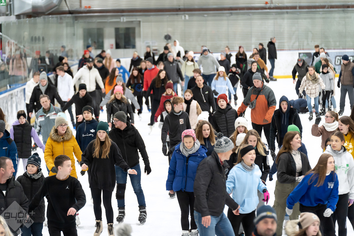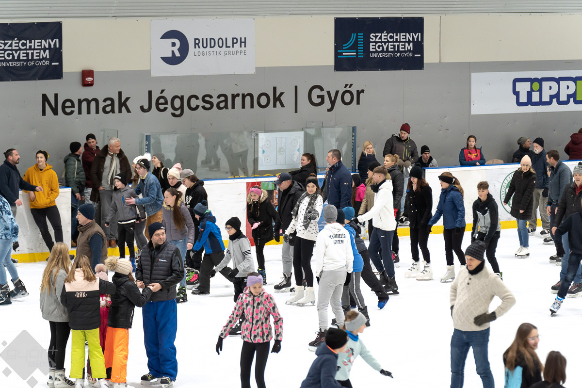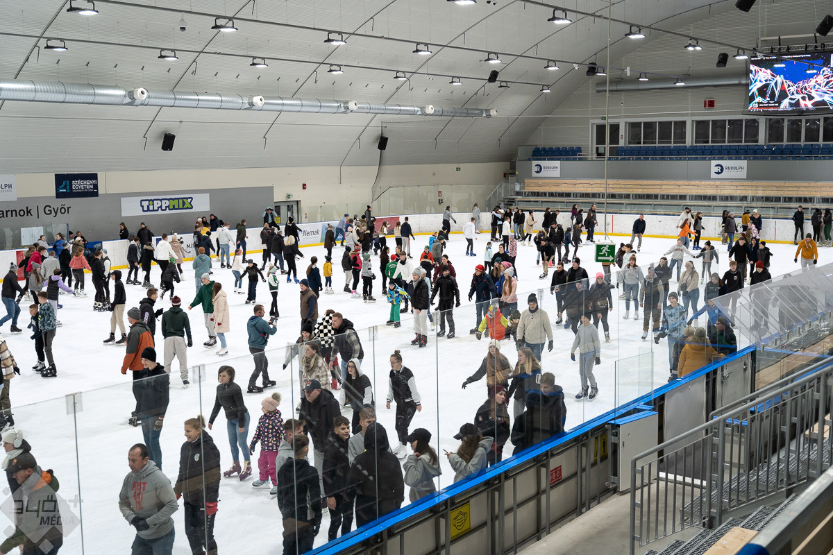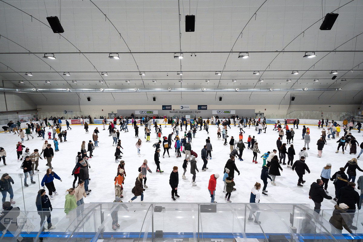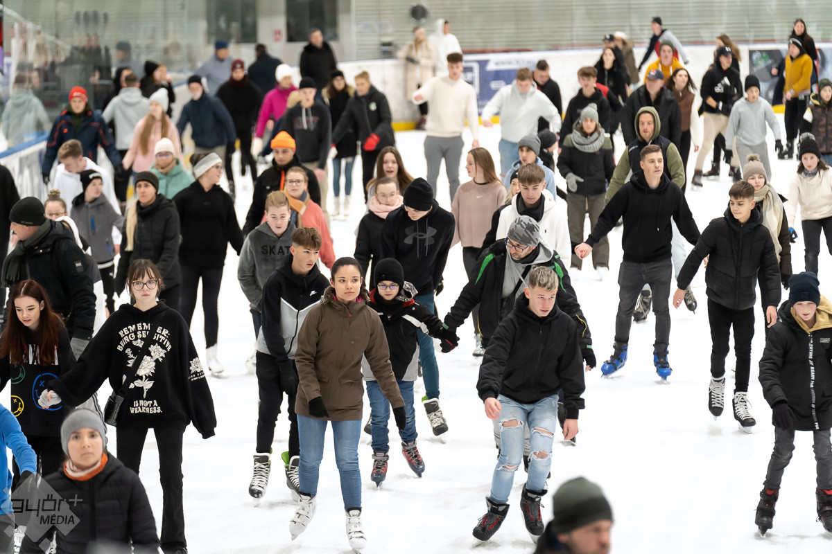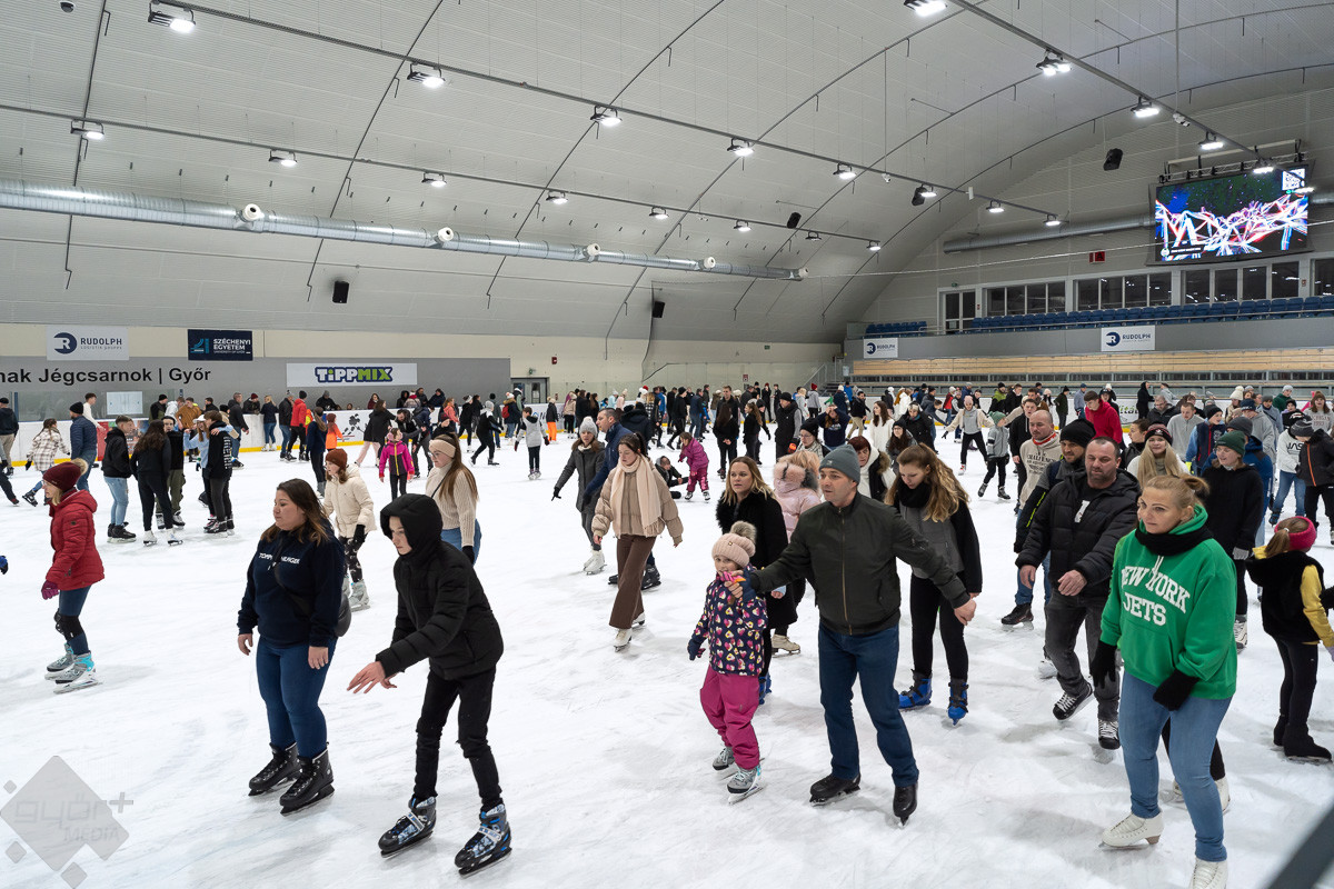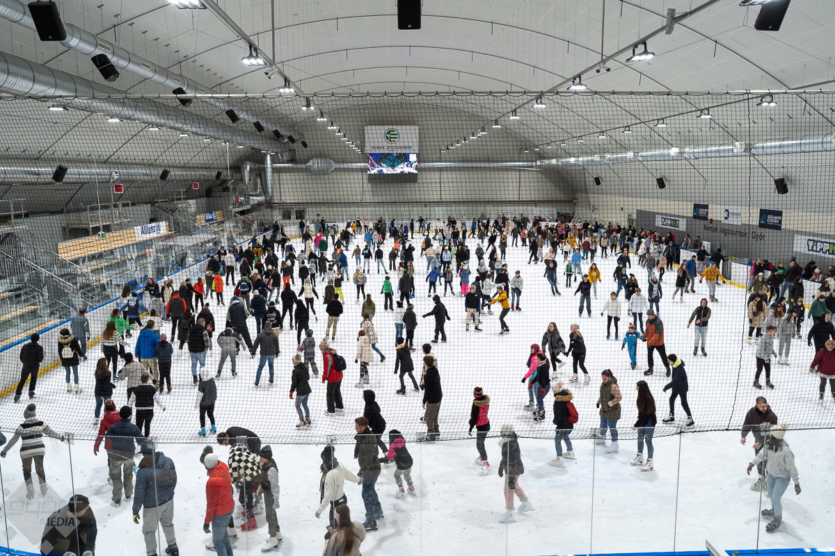Győrben is kígyózó sorok sorok álltak a jegypénztárnál és a jégre lépés előtt is voltak olyan időszakok, amikor néhány percet várni kellett a sok érdeklődő miatt. Mosolygós, rózsás arcú gyerekek és felnőttek húzták fel korcsolyáikat a belépést követően, többek a hamisíthatatlan “koris melegszendviccsel” és gofrival kezdtek, az erőgyűjtés után pedig jöhetett a csúszás.