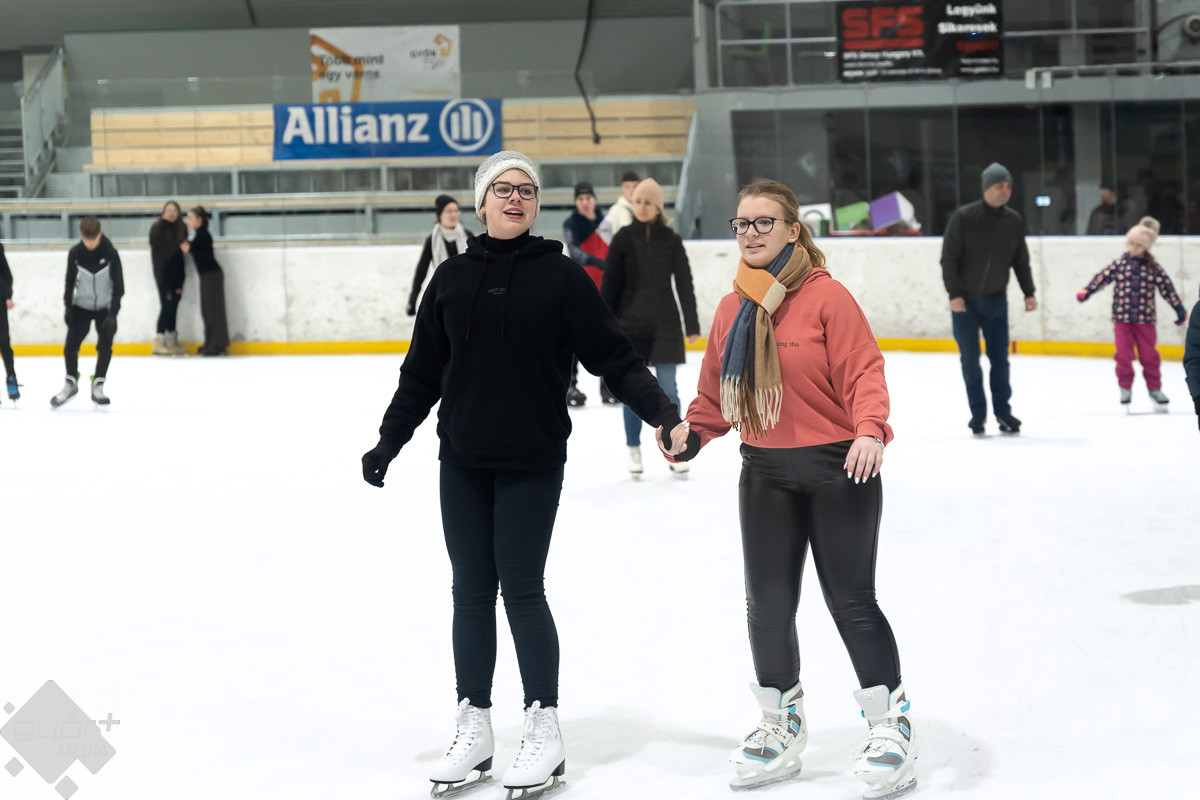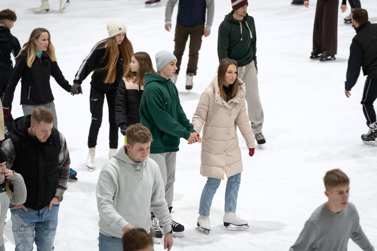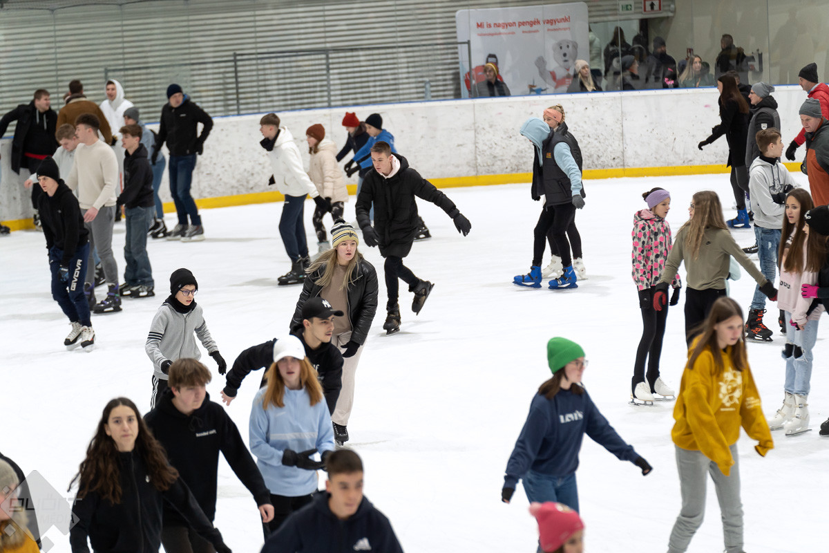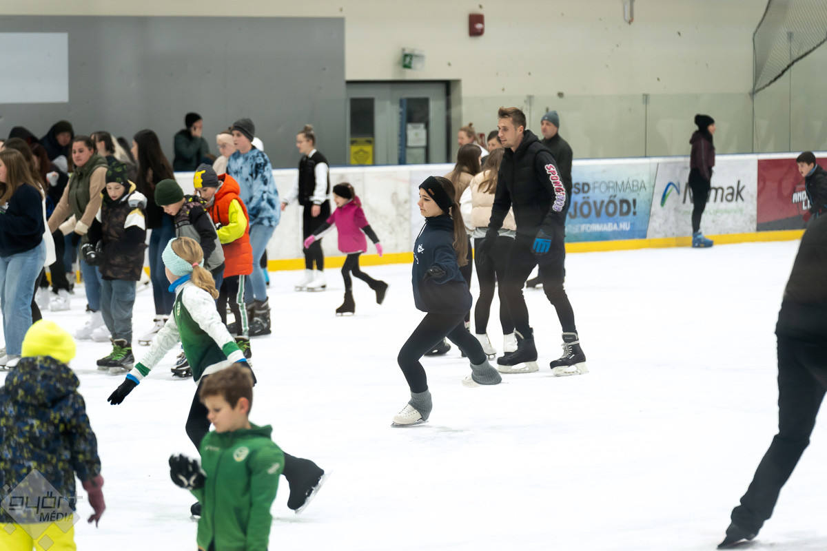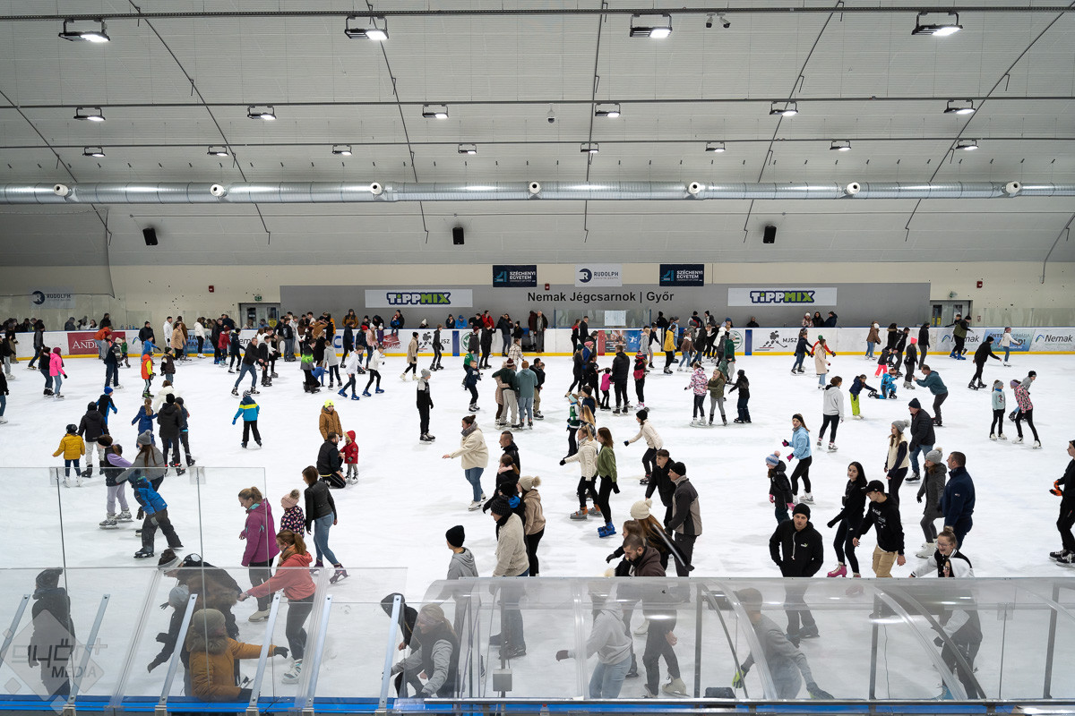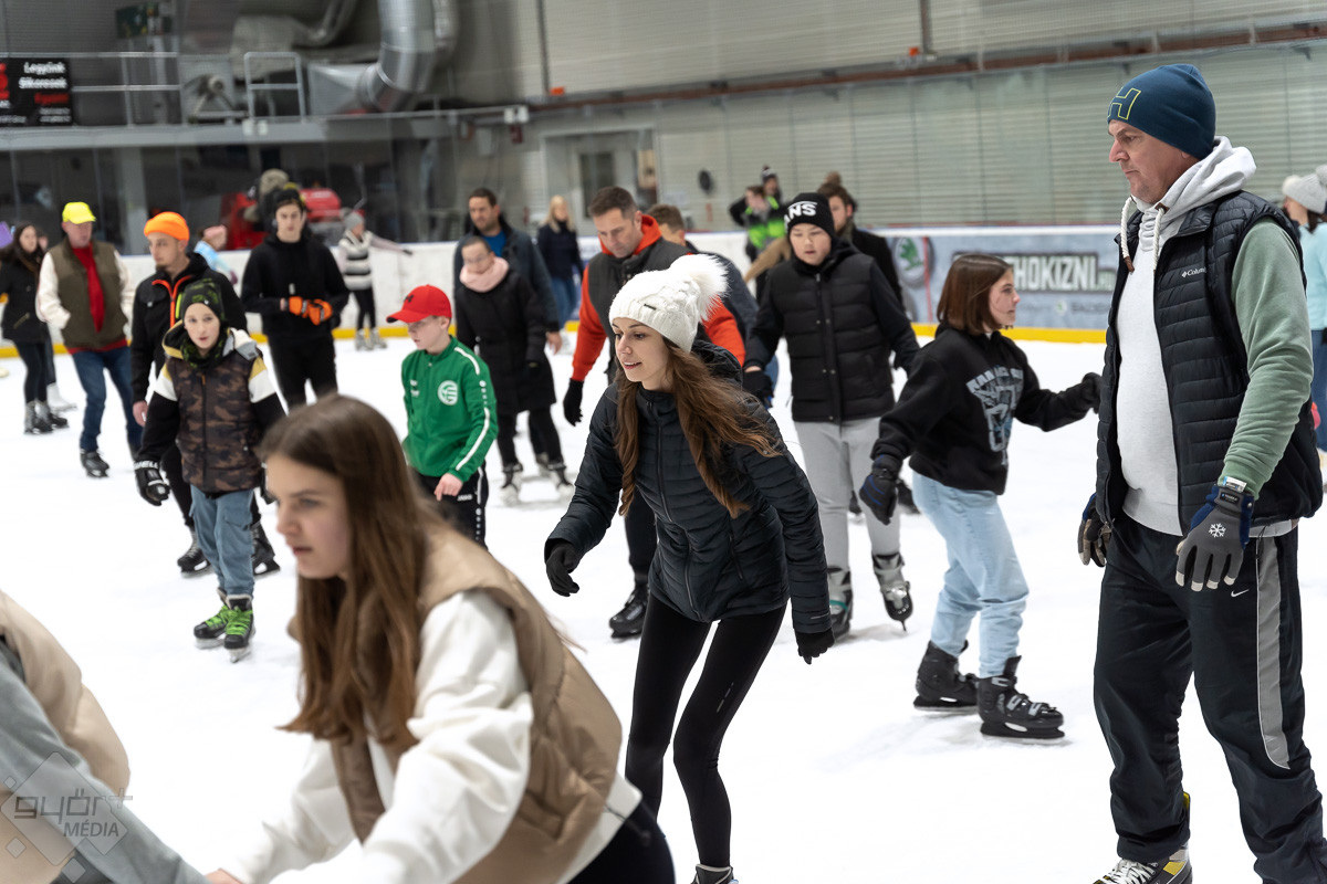 Győrben is kígyózó sorok sorok álltak a jegypénztárnál és a jégre lépés előtt is voltak olyan időszakok, amikor néhány percet várni kellett a sok érdeklődő miatt. Mosolygós, rózsás arcú gyerekek és felnőttek húzták fel korcsolyáikat a belépést követően, többek a hamisíthatatlan “koris melegszendviccsel” és gofrival kezdtek, az erőgyűjtés után pedig jöhetett a csúszás.