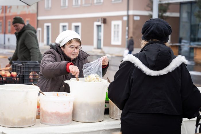 Kisebb sorok álltak a savanyúságokért. Vadászné Ilikének már az édesanyja is híres volt finoman savanyított káposztájáról, lánya a jól bevált családi receptúrák alapján dolgozik. Így készül az édeskés káposzta-sárgarépa saláta is, ami a gyerekek kedvence. Mellette a legkapósabbnak az enyhén csípős csalamádé bizonyult, a későn érkezők már csak üres vödröket találtak.