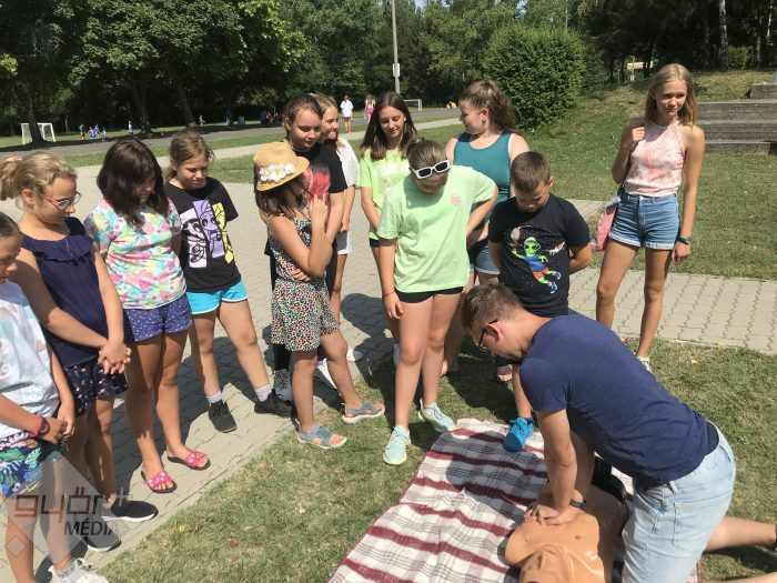 Ezúttal is néhány óra alatt elfogytak a helyek, így 65 gyerkőc és nevelőik pihenhetnek a győri gyermektáborban, Győrújbaráton. A fiatalok a tábor alap programjain kívül rengeteg más élményt is kipróbálhatnak. Kedden például újraélesztést és az árvíz elleni gátépítést tanulták meg. A tábor különlegessége, hogy a rendvédelmi szervek: katonák, rendőrök, tűzoltók, búvárok, polgárőrök és mentők is bemutatót tartanak a gyerekeknek a hét minden napján.