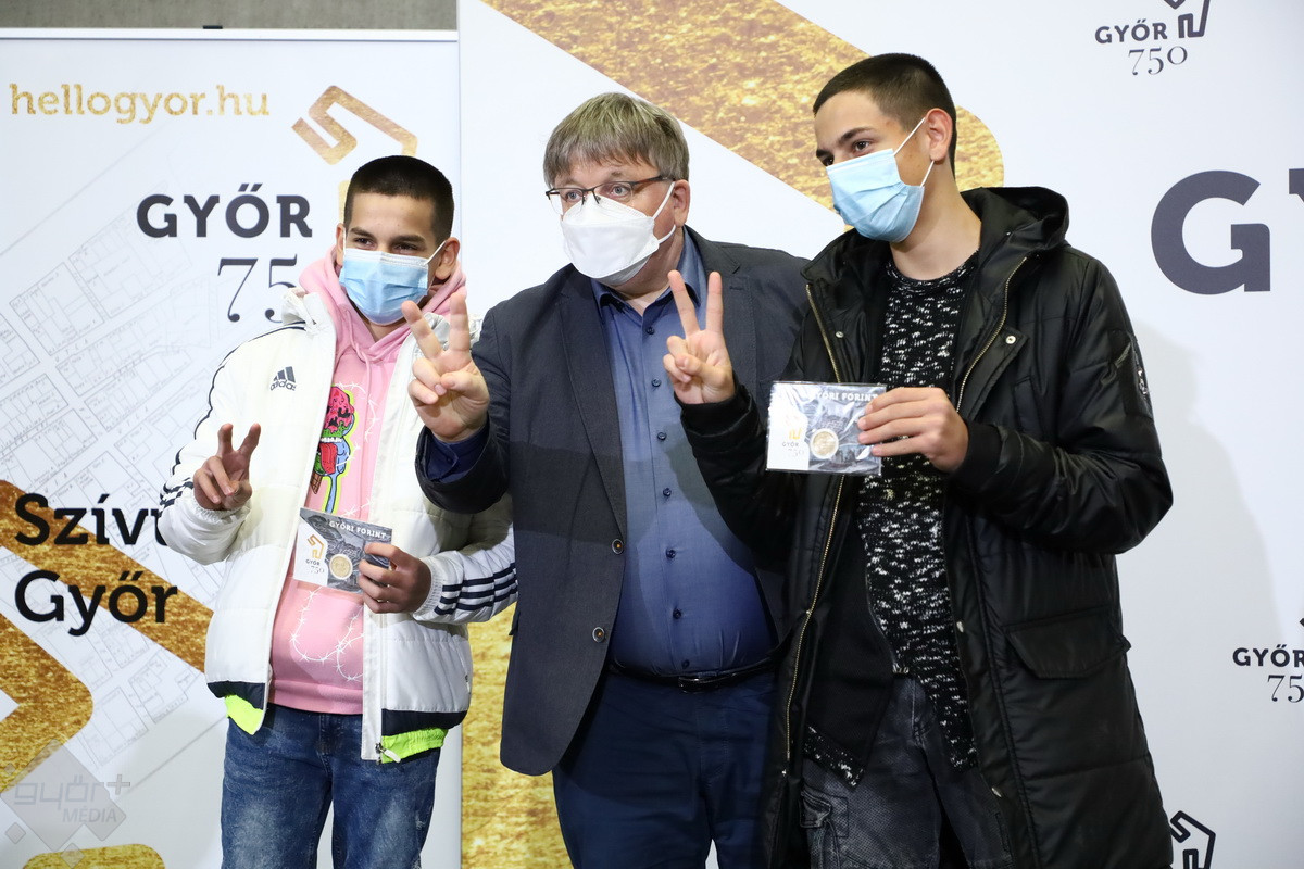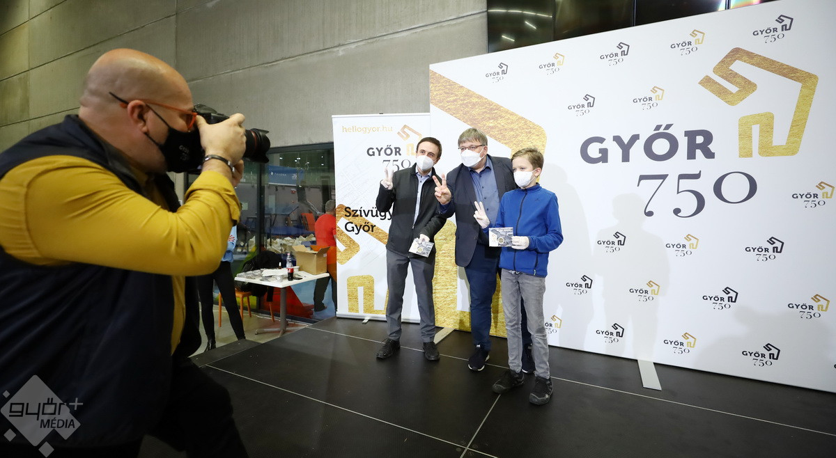 A jubileumi győri forint népszerűsége töretlen: örömmel fogadták a város ajándékát az eseményre érkezők. Készültek a közös fotók és szelfik a város vezetőivel, érme nélkül senki nem tért haza.