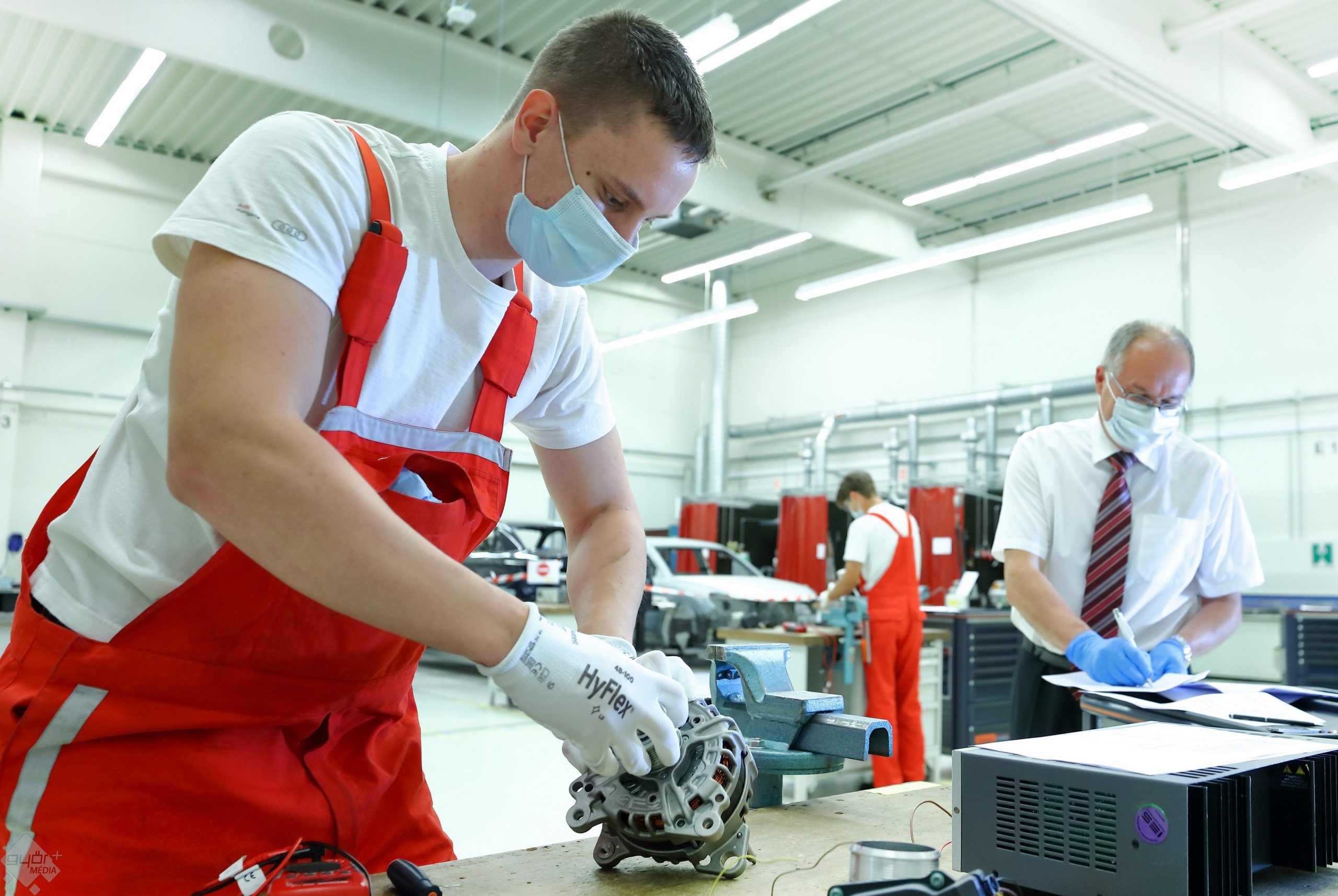 Gyakorlati záróvizsgán adott számot tudásáról az Audi Hungaria és partneriskolái duális szakképzésében tanuló 137 diák a vállalat Tréning- és Oktatóközpontjában.