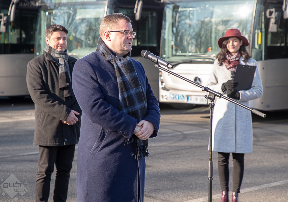 Hozzáfűzte, Győrben a Volánbusz révén egy olyan országos szolgáltató látja el ezt a feladatot, amely képes a felmerülő szükségletek mentén arra is, hogy akár megyéken átívelően is átcsoportosítást végezzen mind jármű, mind munkaerő tekintetében. A képviselő hangsúlyozta, a mostani járműbővítés az első lépés a győri tömegközlekedés megújításának útján.