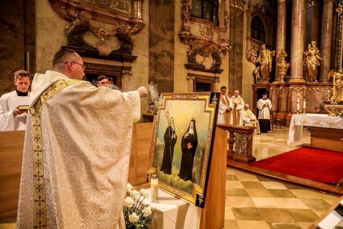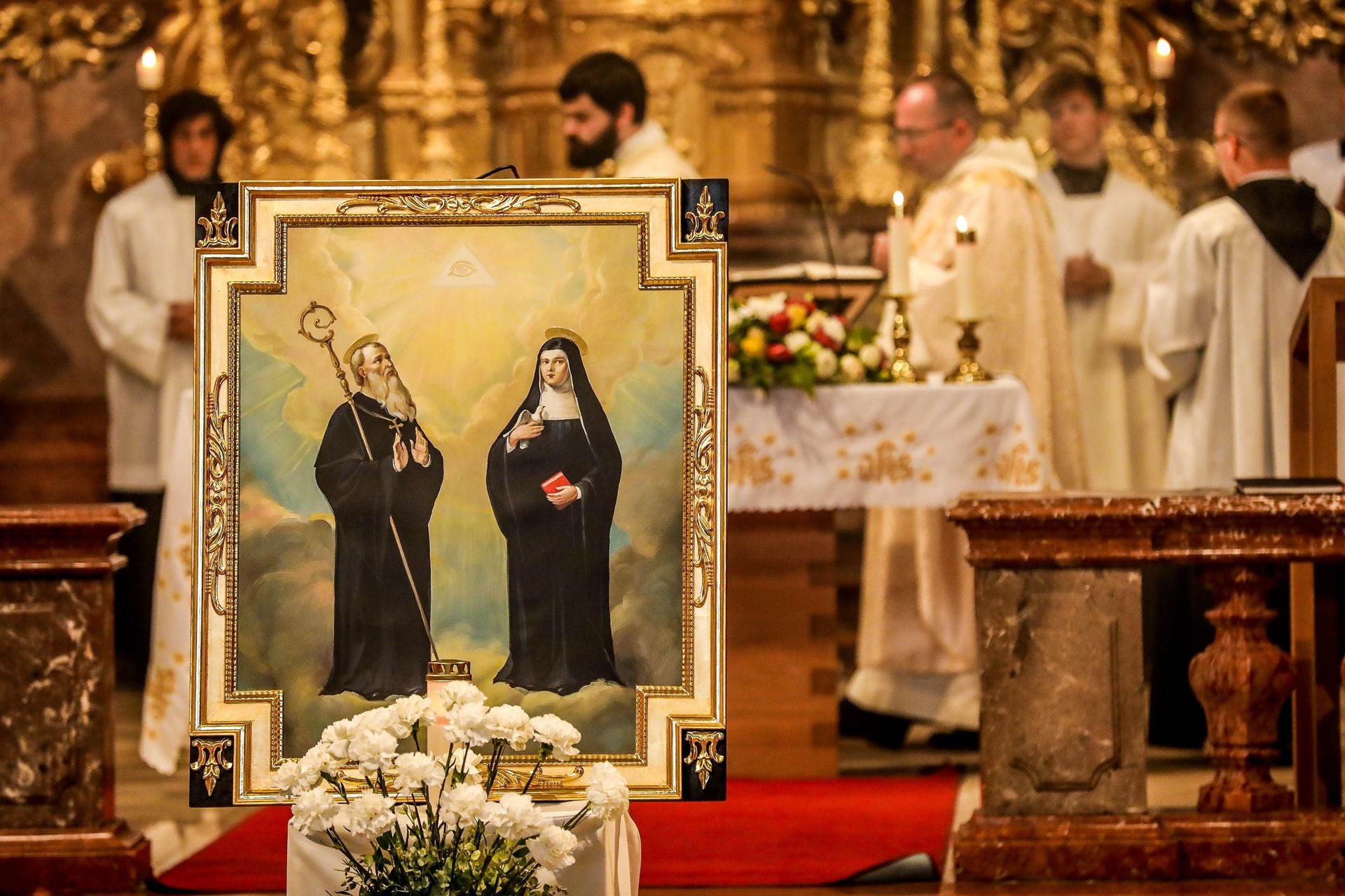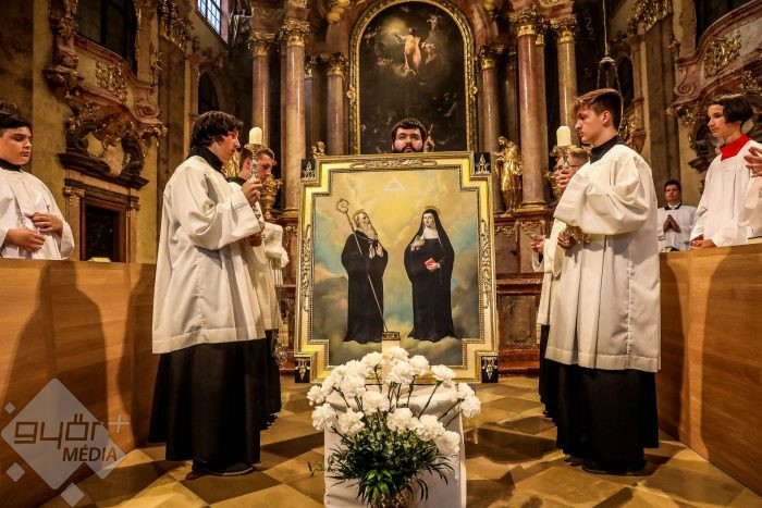 Szent Benedek, Európa fővédőszentjének, a bencések rendalapítójának ünnepén, július 11-én, a megújuló Széchenyi téri templomban egy Szent Benedeket és testvérét, Szent Skolasztikát ábrázoló képet áldott meg Sárai-Szabó Kelemen atya szentmise keretében.
