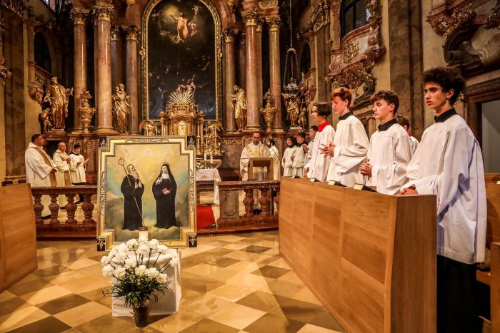 A most megáldott kép a II. világháborúban elpusztult kép helyére kerül. A jezsuita rend által épített templom és rendház, bár 1802 óta bencés tulajdonban és használatban van, de ez az első bencés témájú ábrázolás. A teljes oltár augusztus elejére fog elkészülni.