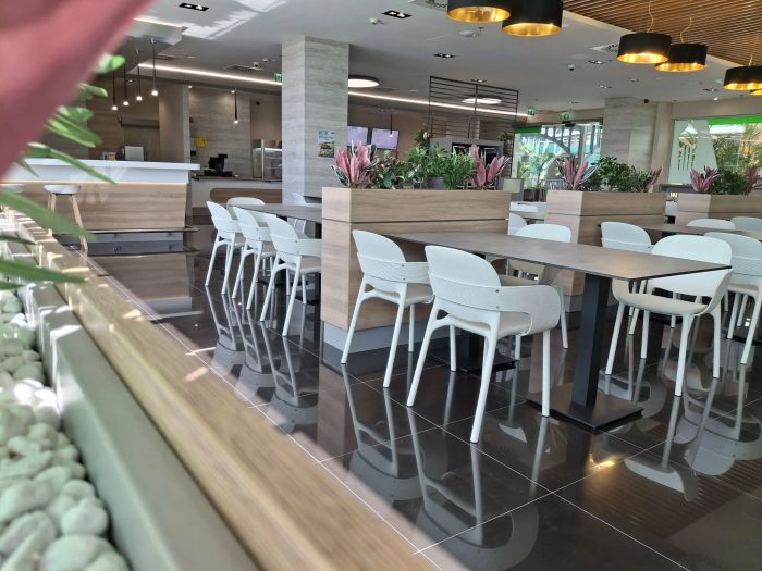 Mindennap újdonságok és klasszikus kedvencek várják az érkezőket, egy frissítő üdítővel kiegészítve. Rengeteg hely áll rendelkezésre kisebb és nagyobb asztaloknál, pultoknál és szigeteken, így akár egyedül, akár társasággal is kényelmesen lehet ebédelni.
