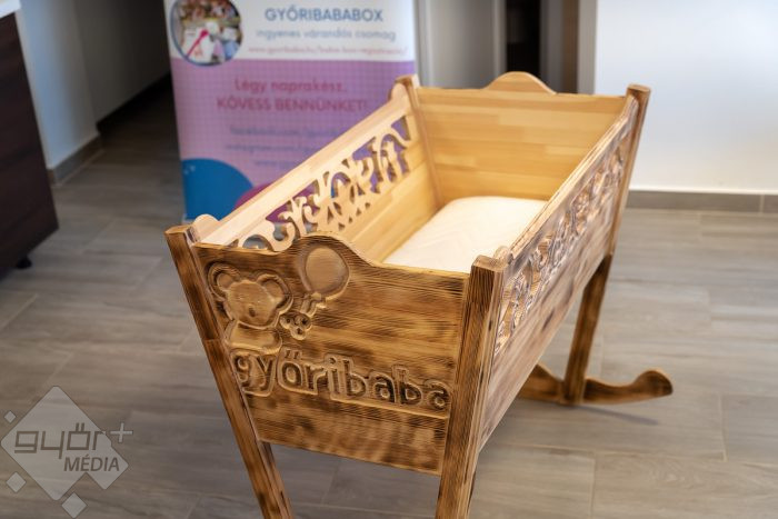 “Ezt a bölcsőt egy gönyűi ,17 éves fiú készítette még tavaly áprilisban. Ez egy ingyenesen igényelhető bölcső, az előző lakója nagyon szépeket mondott róla, nagyon vastagon be van hintve álomporral, szóval jókat lehet benne szundizni” – hangsúlyozta Hidvégi-Vas Éva, a Győribaba Portál főszerkesztője.