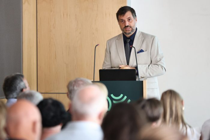 Több mint tízmillió tulajdoni lap, évi 1,5 millió eljárás – ismertette a magyar ingatlan-nyilvántartás legfőbb számait előadásában dr. Tóth Balázs, a Közigazgatási és Területfejlesztési Minisztérium ingatlan-nyilvántartási és térképészeti főosztályvezetője. Mint mondta, az ingatlanok az emberek legfontosabb vagyontárgyai, így kulcsfontosságú, hogy naprakész és megbízható adatokat tartson róluk nyilván az állam, ezért a korábbi, több mint húszéves rendszert egy a jelen kor elvárásainak megfelelő új, digitális nyilvántartás váltja fel.