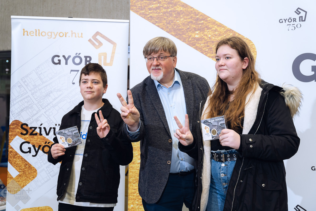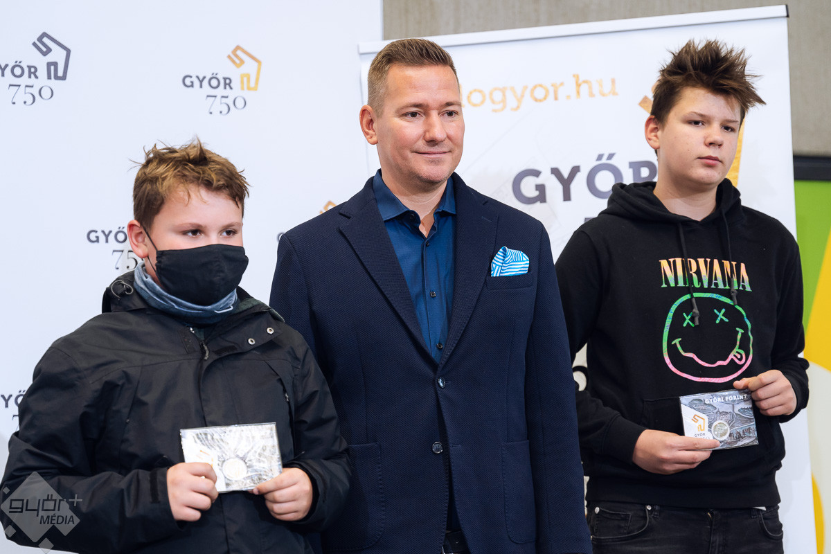 Dr. Dézsi Csaba András, Győr polgármestere, valamint Radnóti Ákos alpolgármester adta át az érméket a mai napon. Mint ismeretes: minden 20 év alatti győri fiatalnak jár az ajándék, aki regisztrál az érmeosztásra.