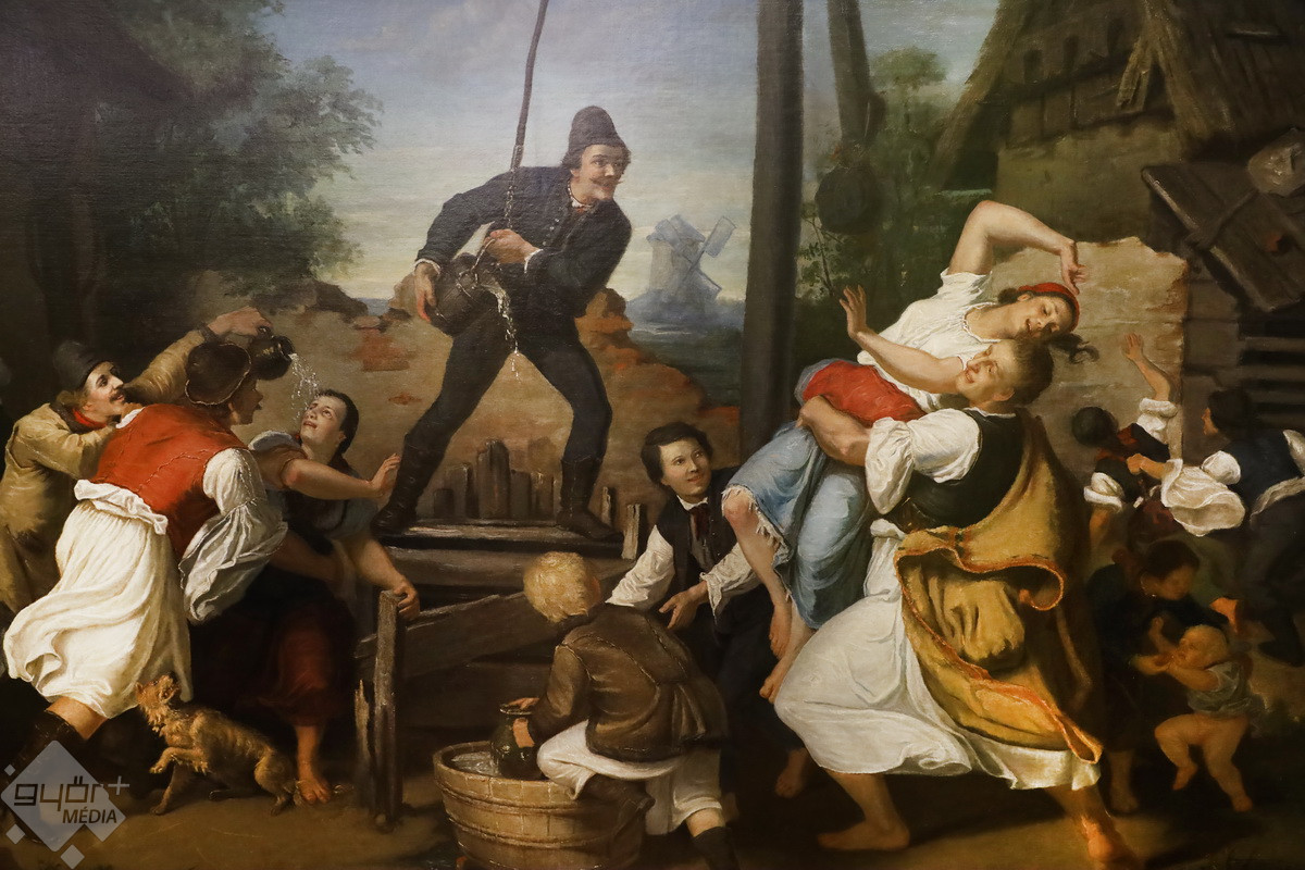 A festmény egy gémeskút körül játszódó, mozgalmas jelenetet ábrázol. Az ifjú művész e festményén az erőteljes, drámai kompozícióval már túllépett a biedermeier népéletképek szokásos színes, kedélyes hangvételén. Munkácsy a maga brutalitásában, nyers valóságában eleveníti meg a húsvéti népszokást, amikor a legények, ha kell, erőszakkal cibálják magukkal a lányokat a kúthoz és öntik őket nyakon hideg vízzel. Ez szokatlan volt a magyar népéletfestészetben.
