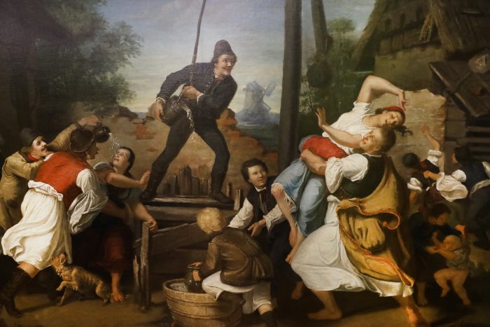 A korabeli kritika is azt rótta fel Munkácsynak, hogy túlzottan heves, brutális a kép. Ezekre a kritikákra a festő azt válaszolta, hogy „ez nem brutalitás, hanem igazság”. Falusi gyerekként Munkácsy átélhette, megtapasztalhatta a falusi mindennapokat, az ünnepeket, és ő a maga igazságában ábrázolta a jelenetet” – hangsúlyozta a festményt bemutatva Székely Zoltán, a Rómer Flóris Művészeti és Történeti Múzeum igazgatója.