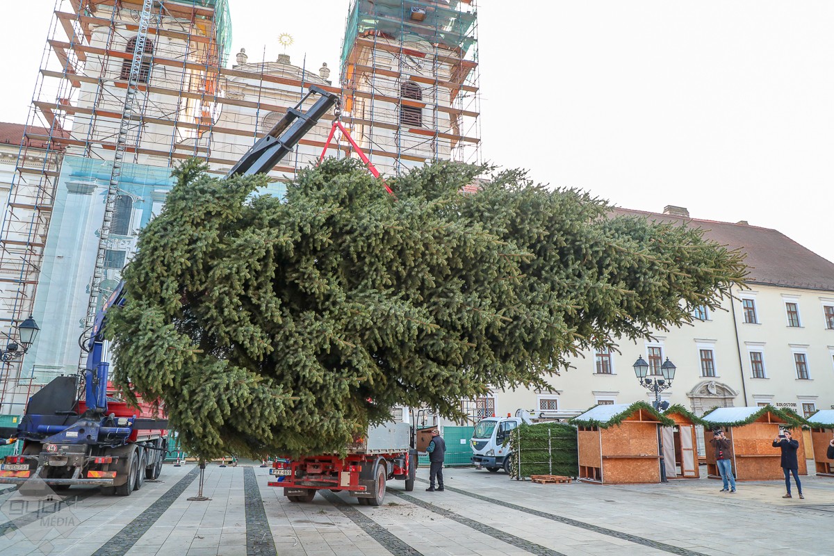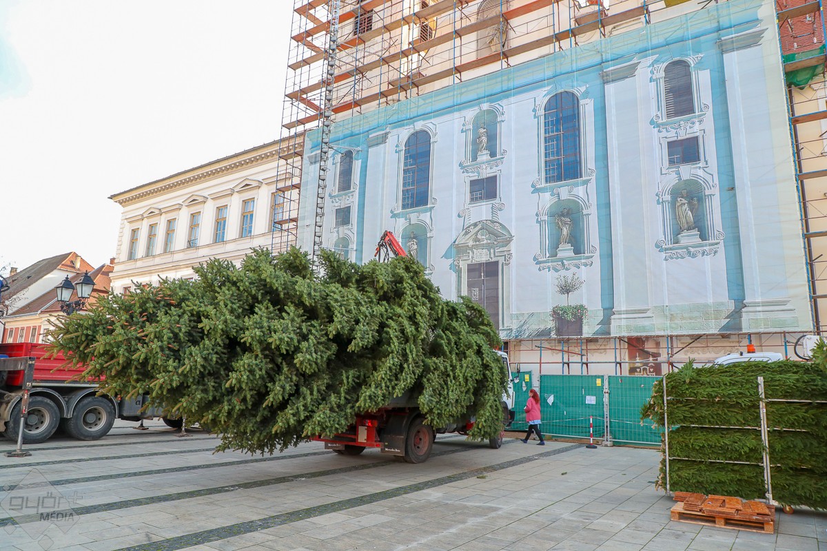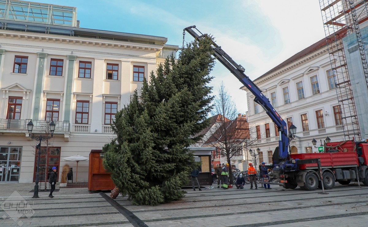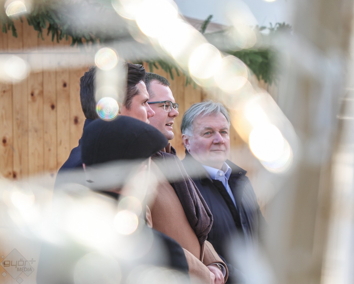„Közép-Európa egyik leghangulatosabb karácsonyi vására a győri, a színes adventi programok mellett többek között az ünnepi fények miatt is” – fogalmazott dr. Fekete Dávid alpolgármester a Széchenyi téren hétfőn, ahová közben a 11 méter magas „város karácsonyfája ” is megérkezett.
