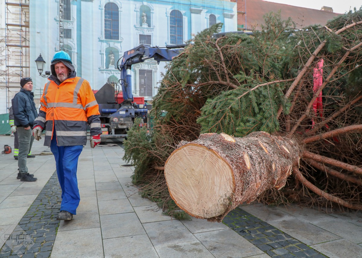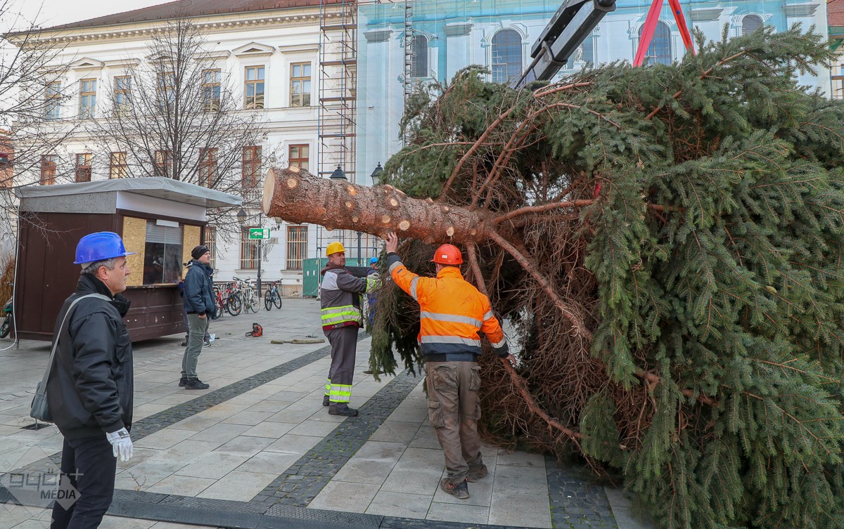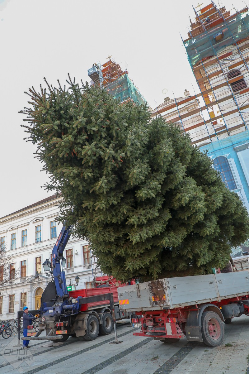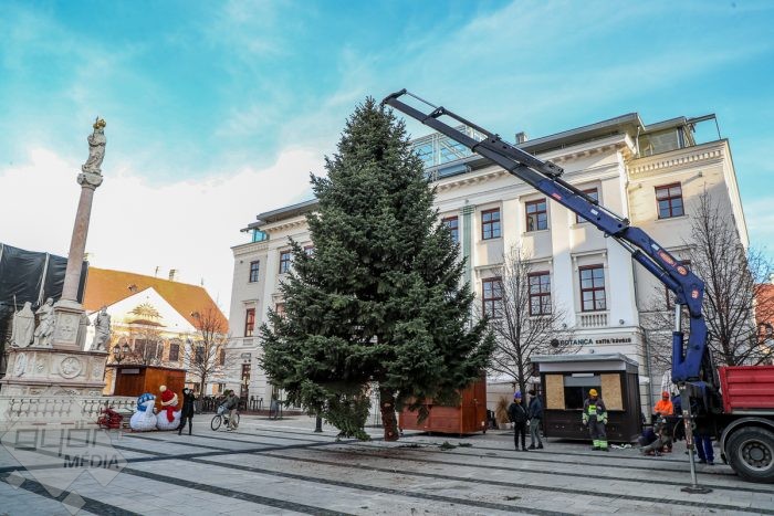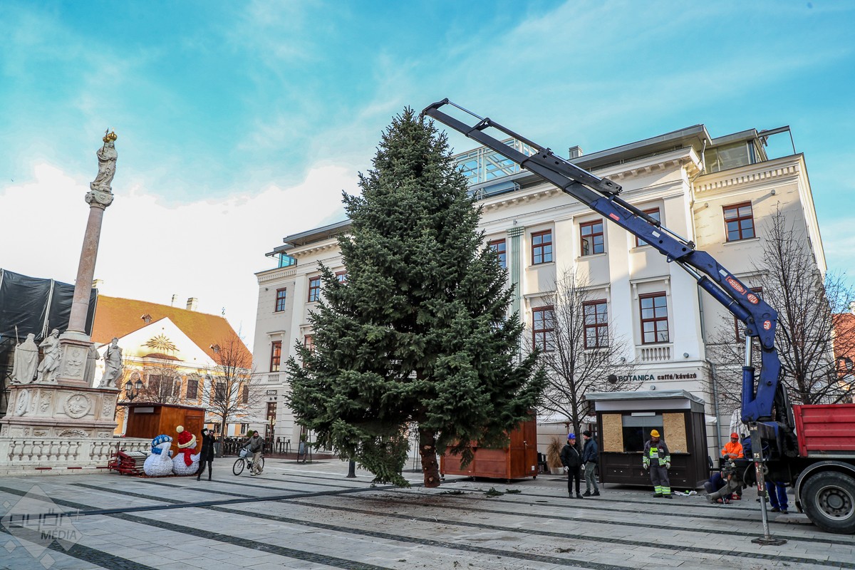 „Közép-Európa egyik leghangulatosabb karácsonyi vására a győri, a színes adventi programok mellett többek között az ünnepi fények miatt is” – fogalmazott dr. Fekete Dávid alpolgármester a Széchenyi téren hétfőn, ahová közben a 11 méter magas „város karácsonyfája ” is megérkezett.