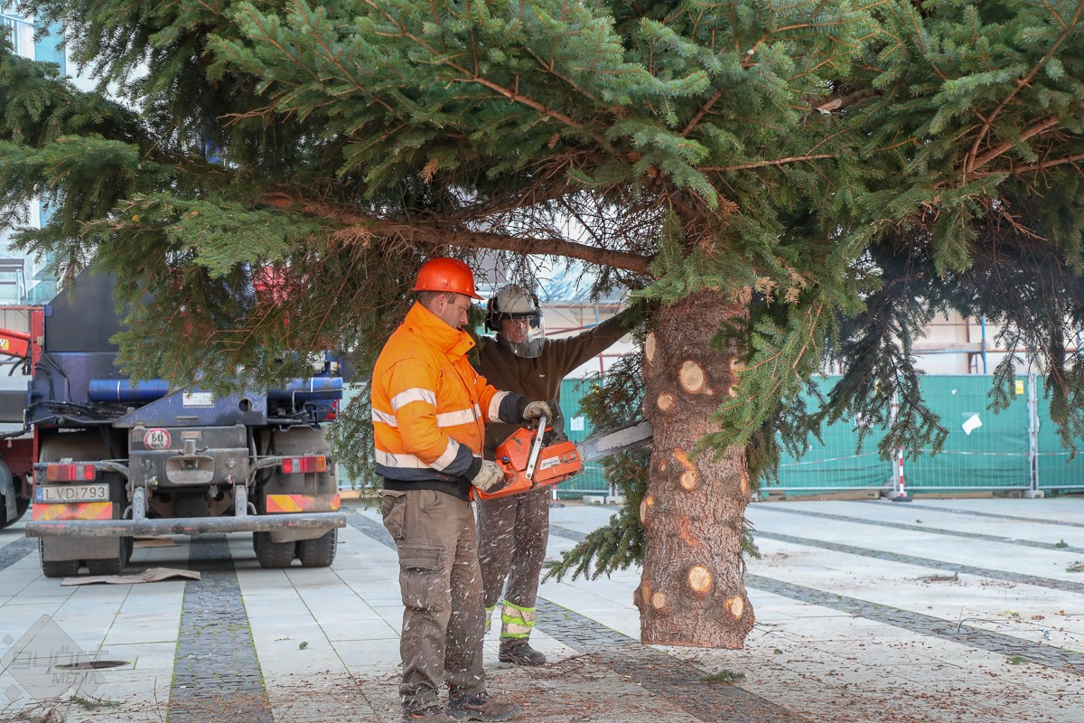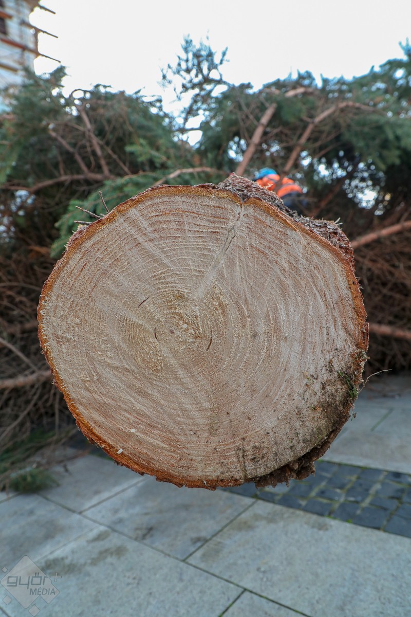 Nagy Csaba a cég kommunikációs munkatársa elmondta, felhívásukra nagyon sok győri és város környéki felajánlás érkezett, így mind a 22 állított fa a lakosság ajándéka az ünnepekre. Ez igaz a város karácsonyfájára is, amely Sokorópátkáról érkezett, 11 méter magas ezüstfenyő, és körülbelül 2,5-3 tonna súlyú. A fa épp a sajtótájékoztató idején érkezett meg a Széchenyi térre, felállítása után már díszítik is, hogy a pénteki nyitányra minden készen álljon.