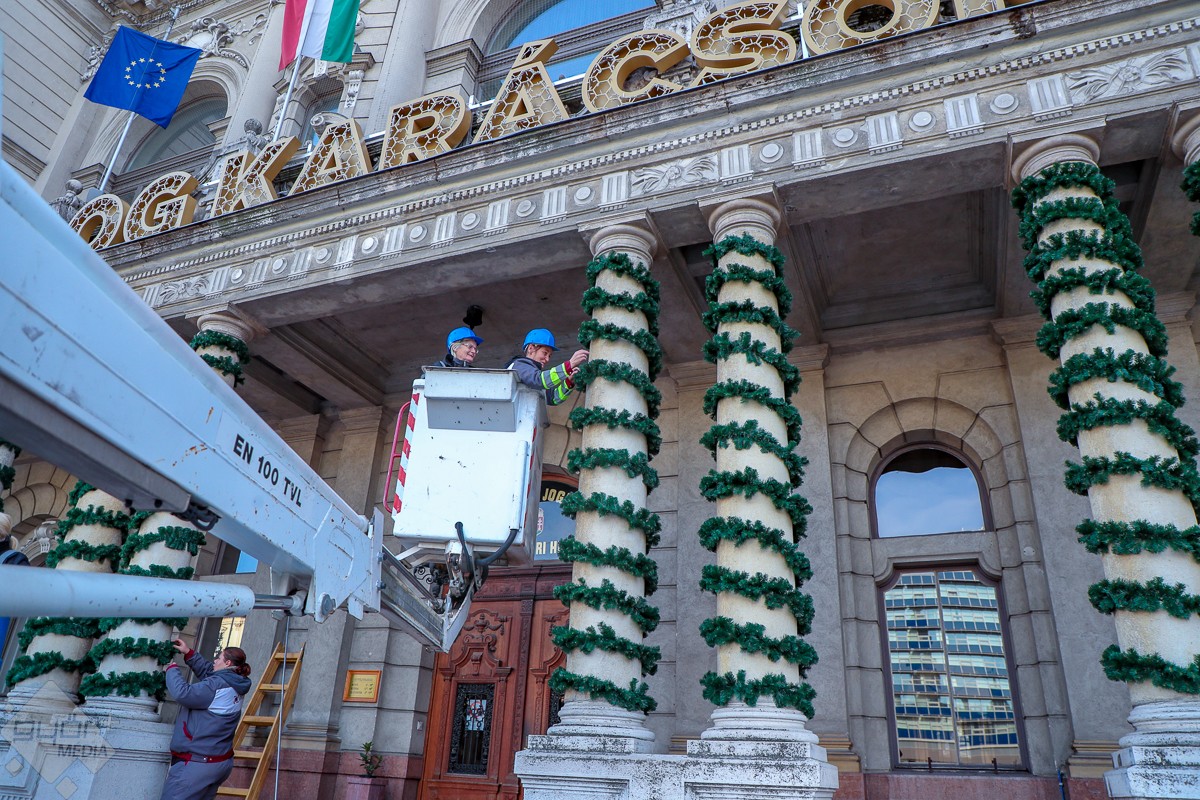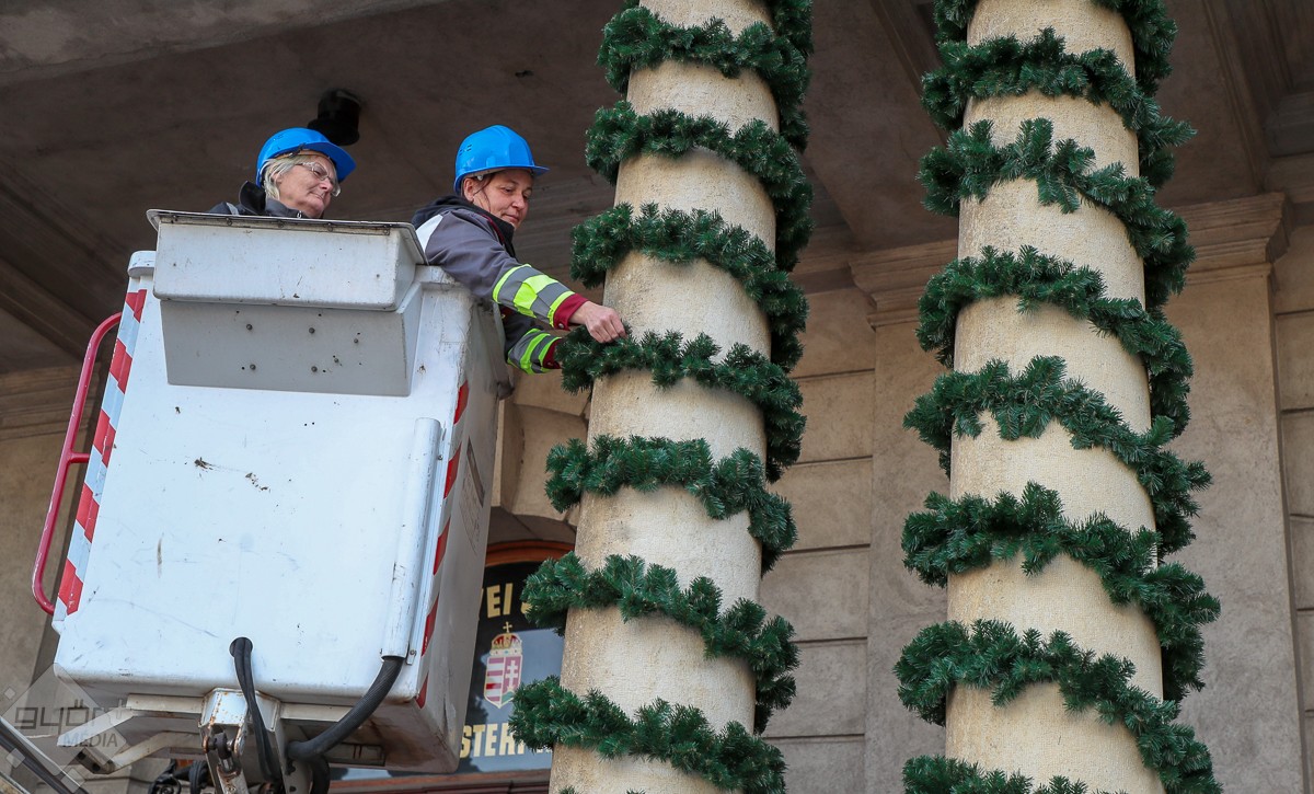 Hetek óta tart az ünnepi díszvilágítás kiépítése 14 kilométer fényfüzérrel, 4000 LED-es izzósorral és 42 karácsonyfa feldíszítésével.