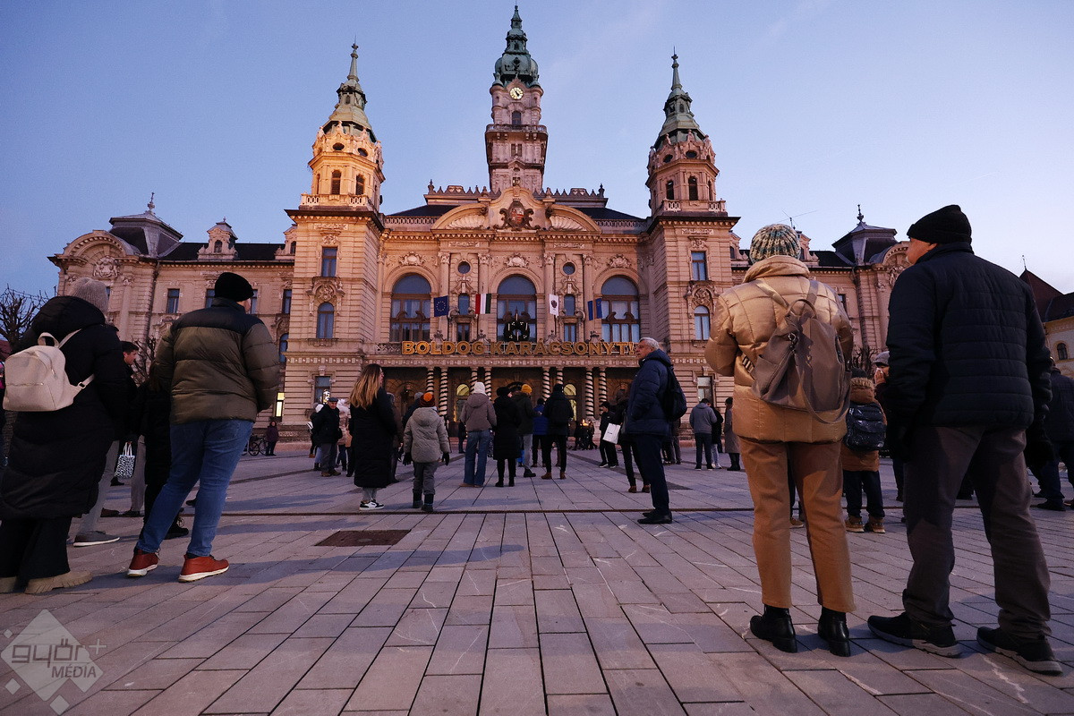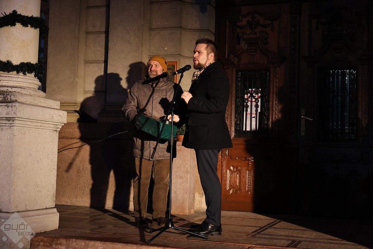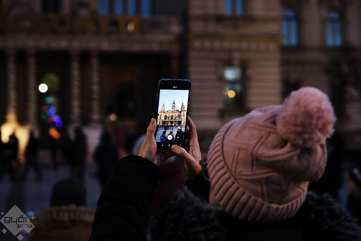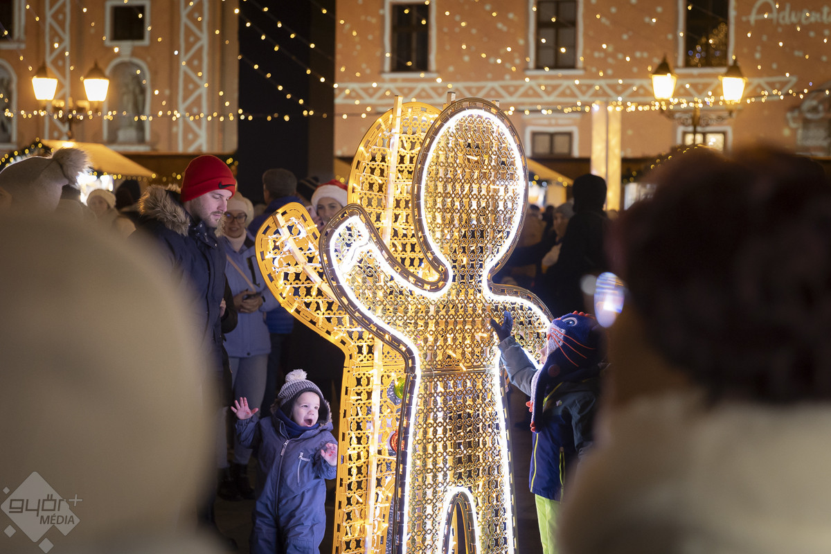 Sokan eljöttek a Széchenyi térre, a városi önkormányzat és a Győr Projekt Kft. közös szervezésében megvalósuló adventi programsorozat hivatalos megnyitójára. Pintér Bence köszöntő beszédében kiemelte: „Az advent üzenete, hogy lassan, de végül mindenhová elérkezik a világosság. Városunk ehhez illően ismét fényárba öltözik. Az év végi forgatag ellenére engedjük meg magunknak, hogy elcsöndesedjünk, időt szenteljünk szűkebb és tágabb közösségeinkre. Vegyük észre a kiszolgáltatottságot, segítsünk azoknak, akik a terheket egyedül kénytelenek vinni. Mutassuk meg, hogy erős közösség vagyunk és számíthatunk egymásra.” – fogalmazott a polgármester.