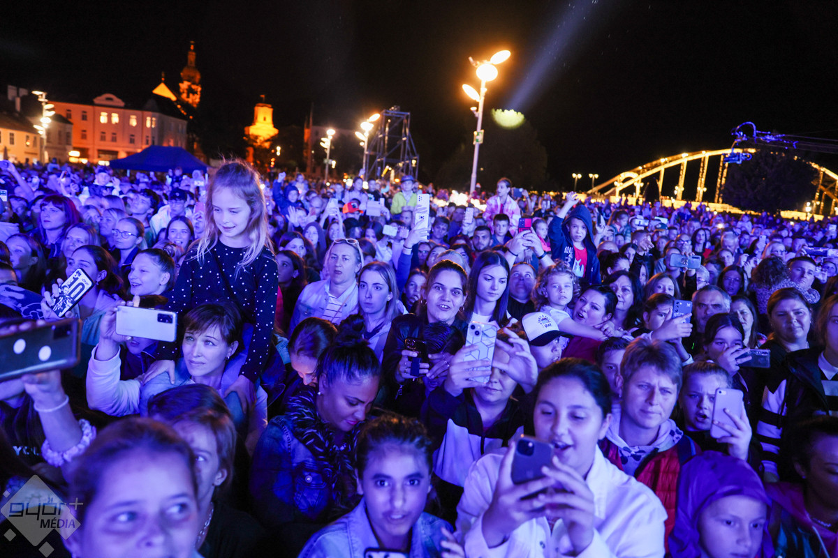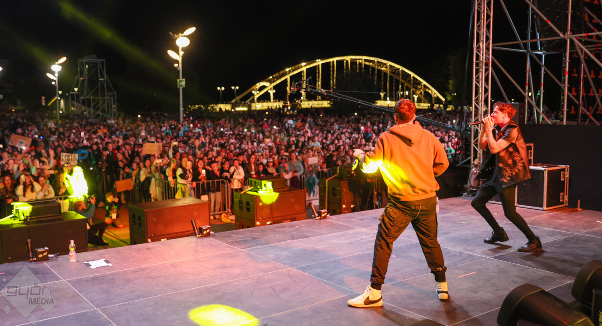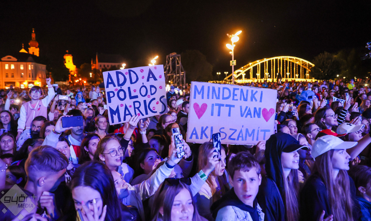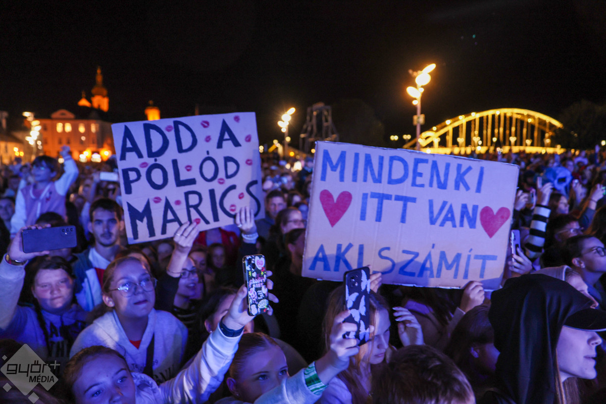 Sikoltozó lányok a nézőtéren, profi előadás a színpadon, rengeteg kiosztott autogram és közös fotó: Győr szombaton este Marics Peti és Valkusz Milán lábai előtt hevert.